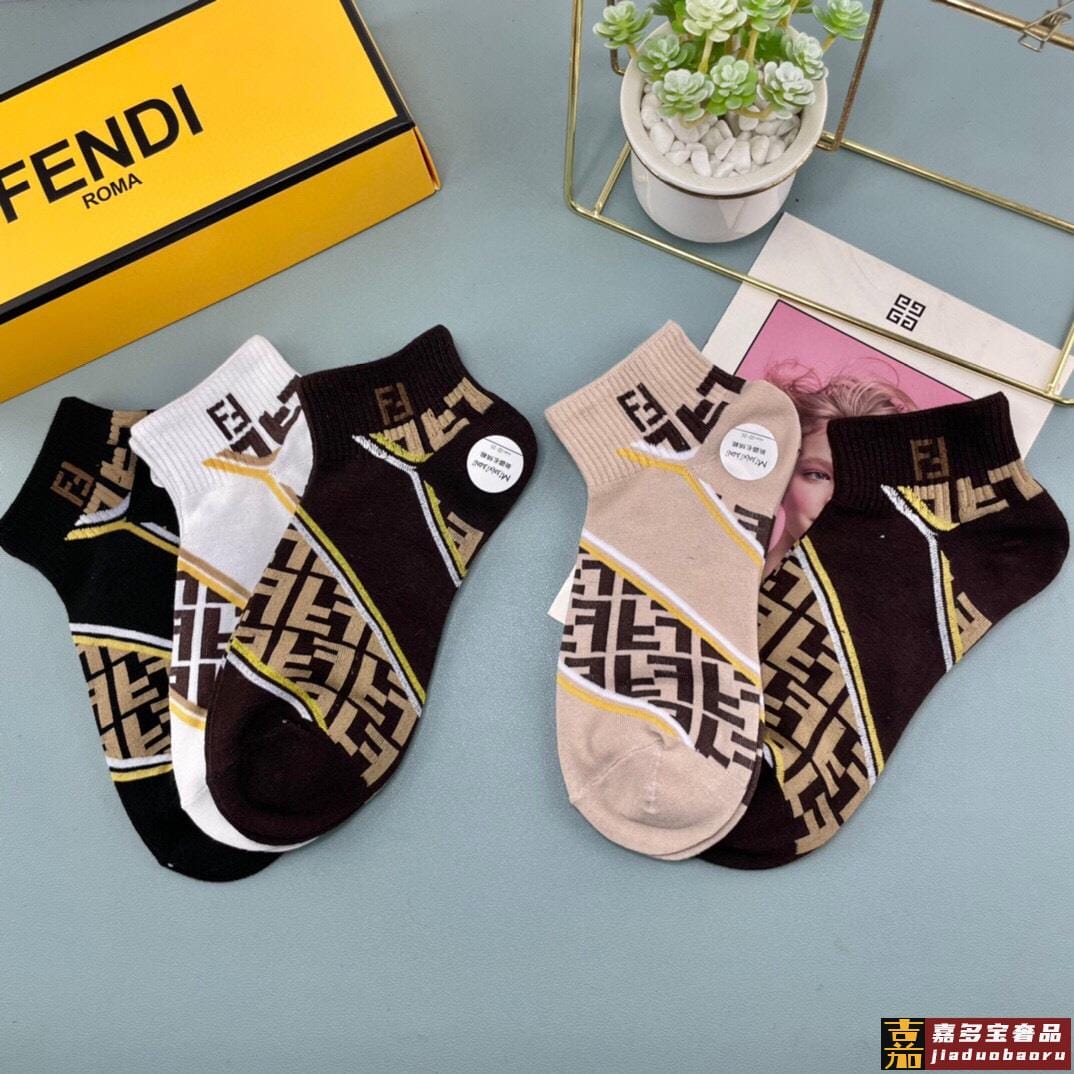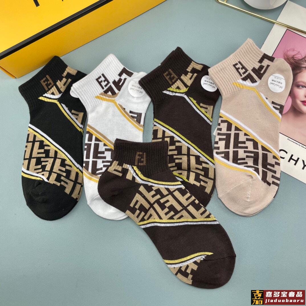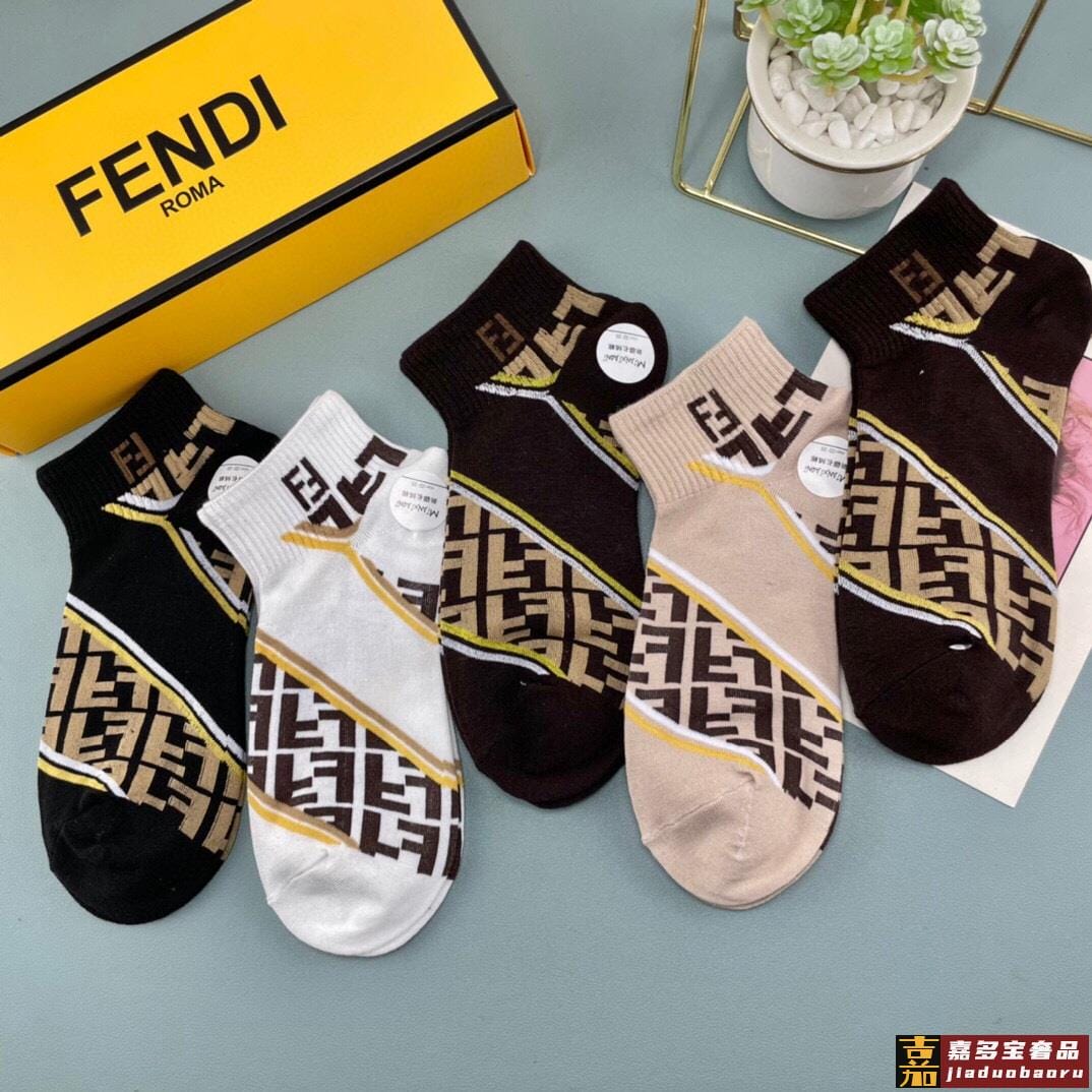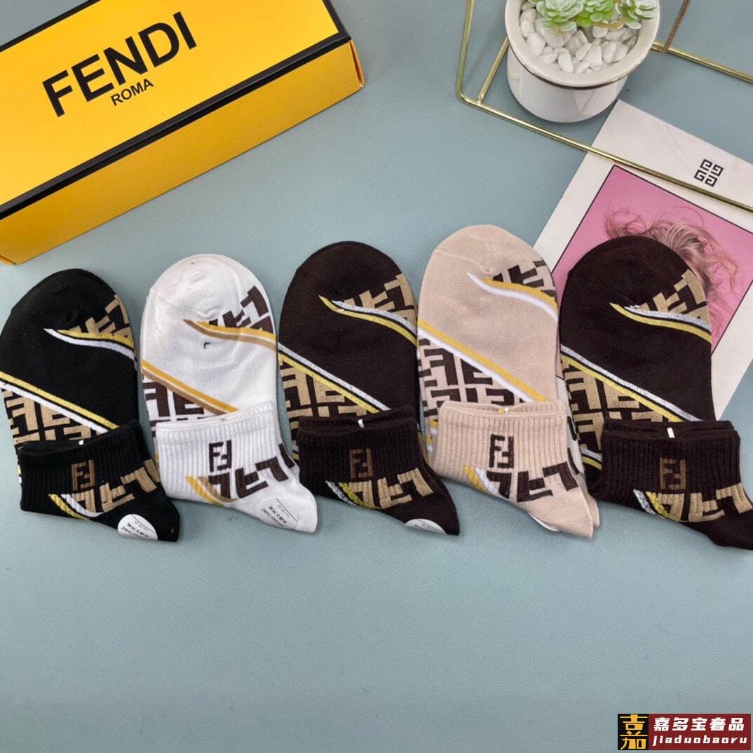 配包装一盒五双芬迪随机色大新品女款春夏款中筒袜子超级经典的双