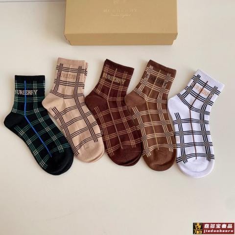 特配专柜包装巴宝莉新款中长款堆堆袜袜子一盒五双专柜同步筒袜袜