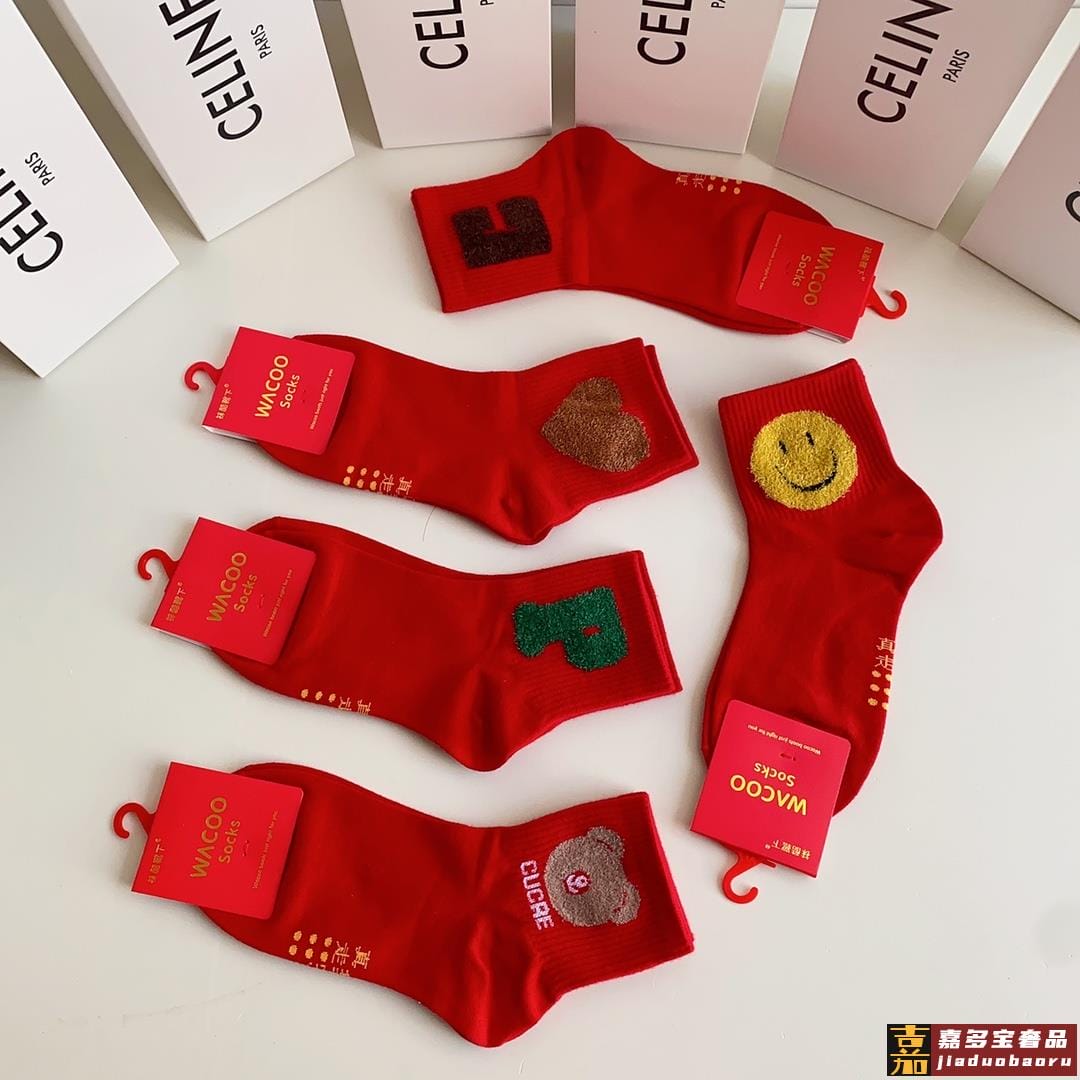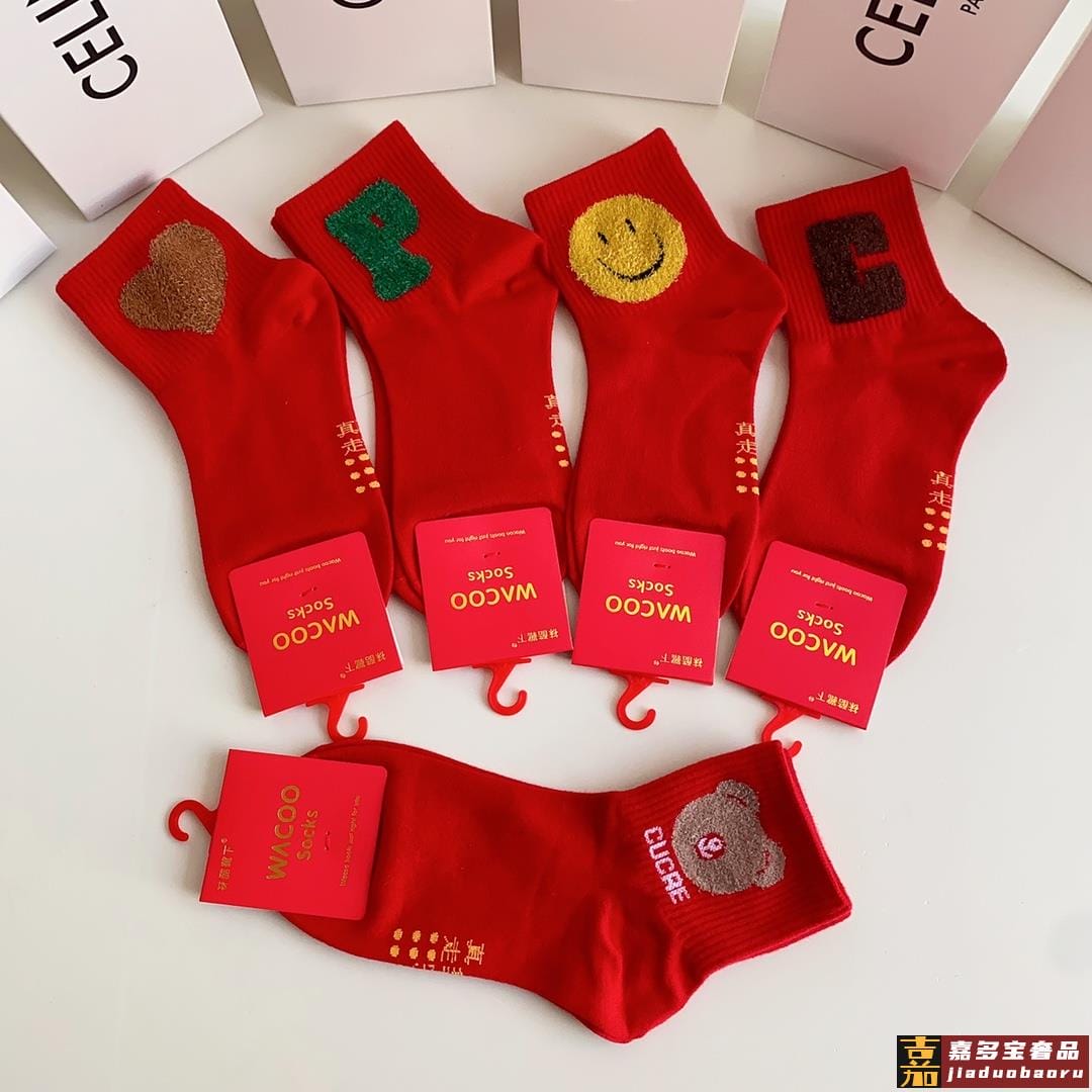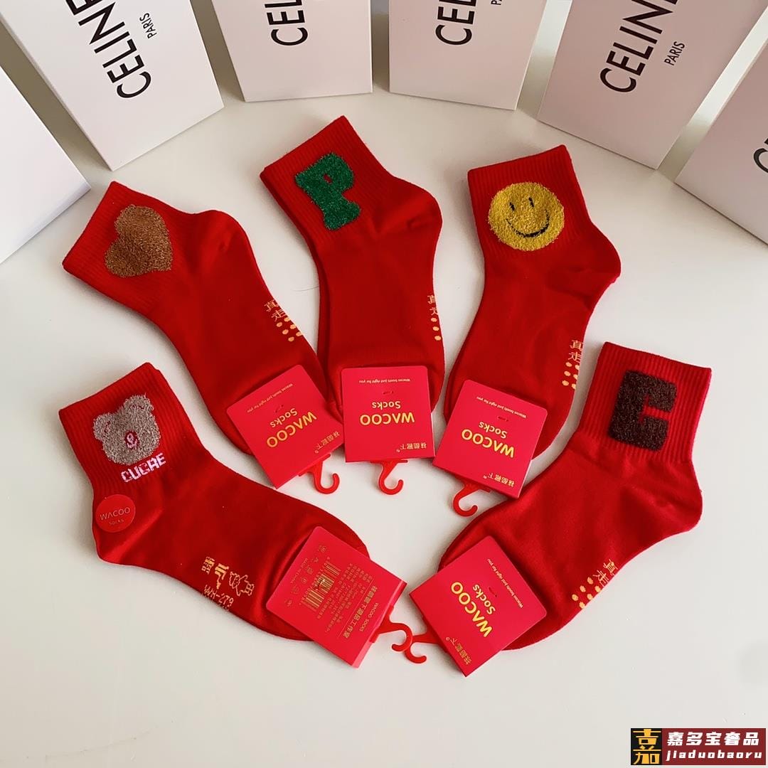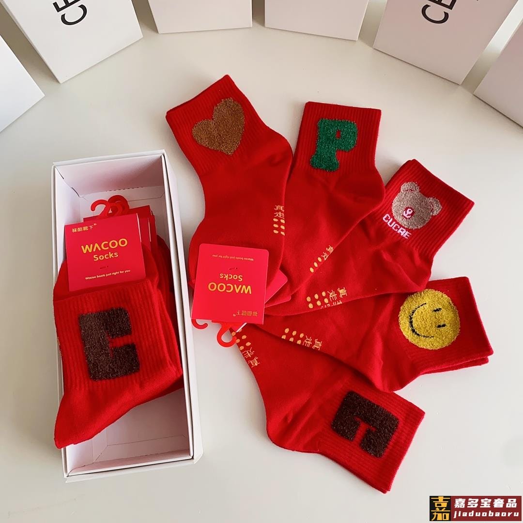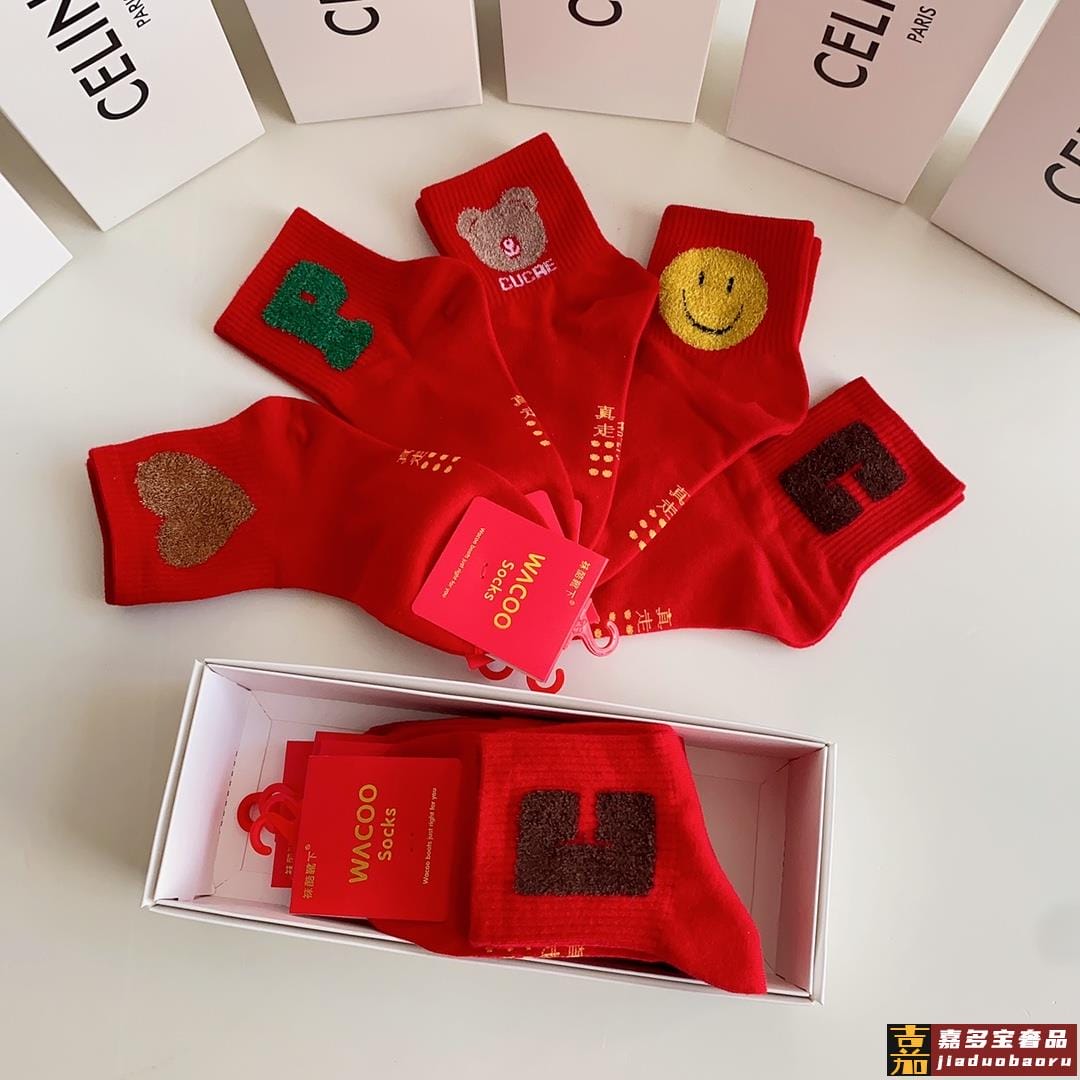 特配包装红红火火大红袜赛琳新款羽毛纱经典中长款堆堆袜袜子一盒
