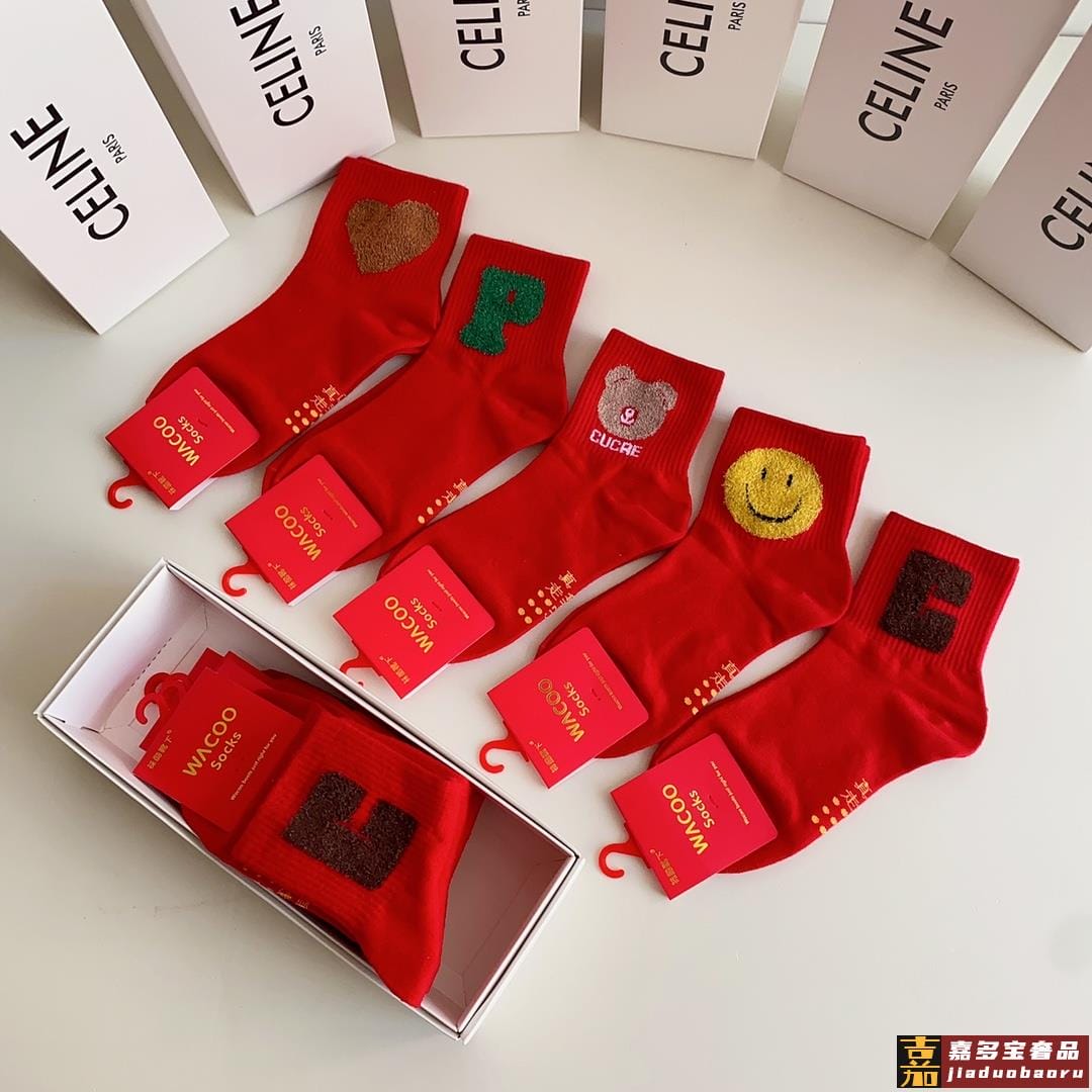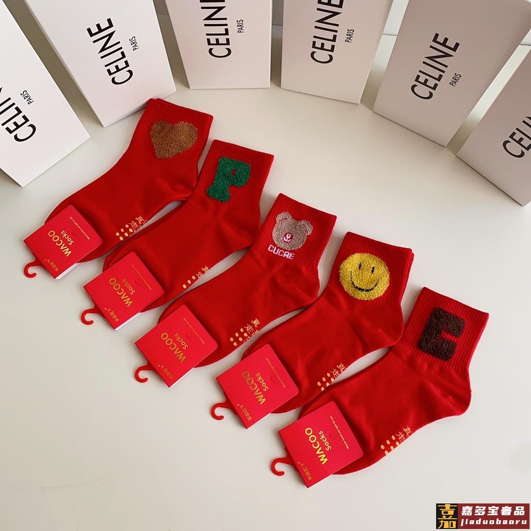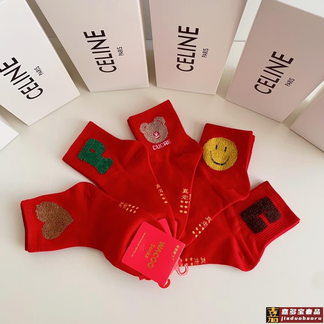 赛琳新款经典中长款堆堆袜袜子一盒五双专柜同步筒袜袜子大牌出街