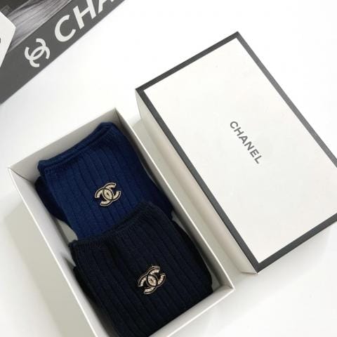 配包装一盒双香奈儿经典字母双针针织纯棉中筒袜重工装饰个性时尚