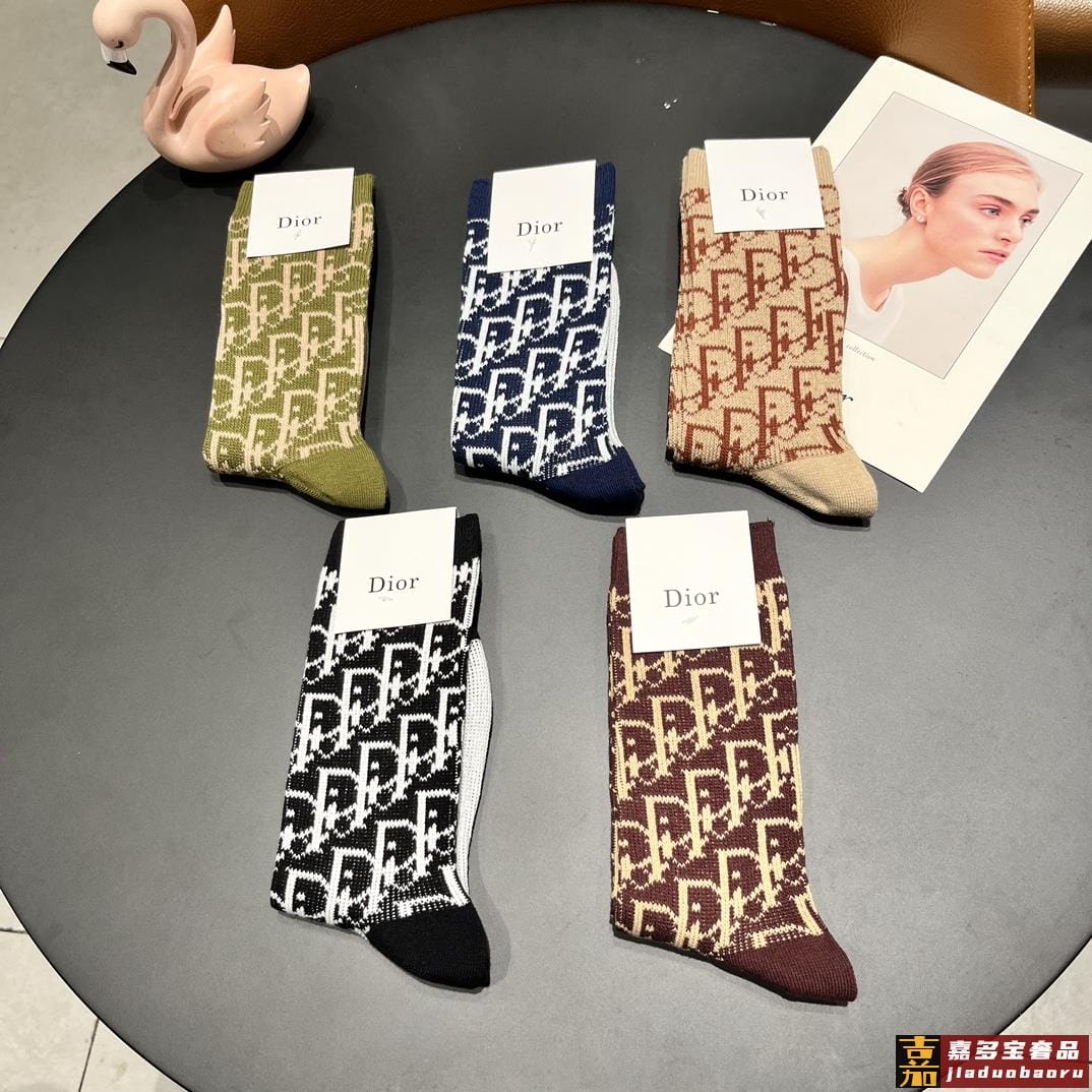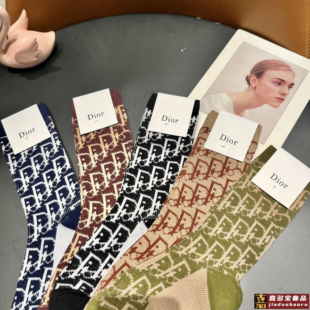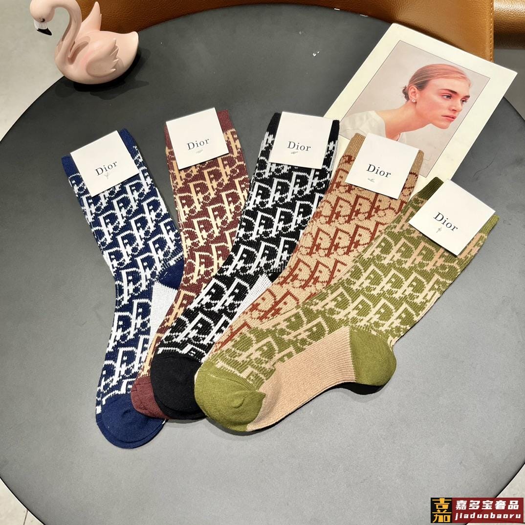 迪奥家新品女款短筒袜子一盒五双纯棉材质上脚柔软舒适经典的家字