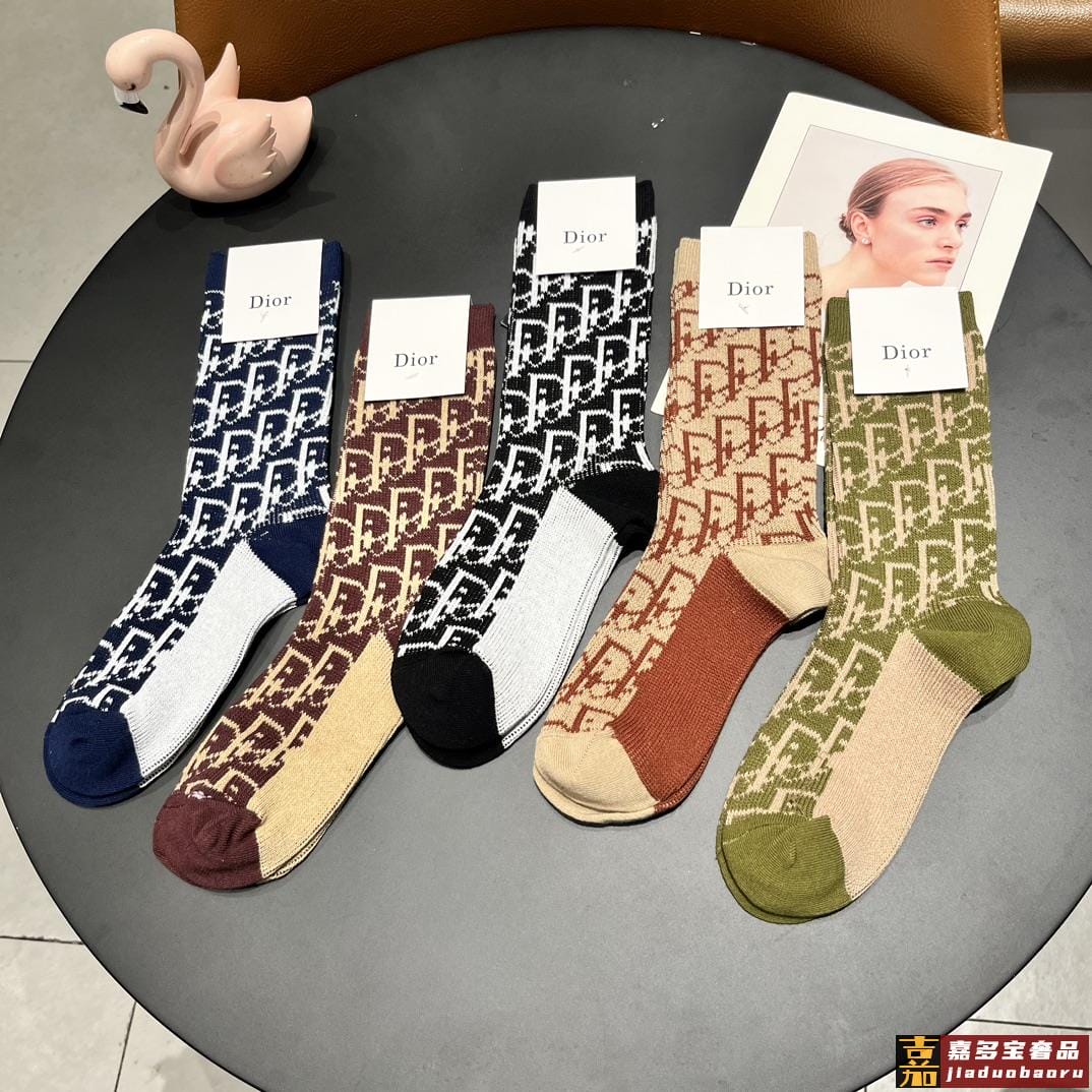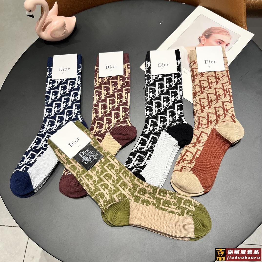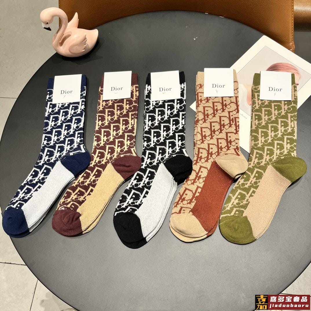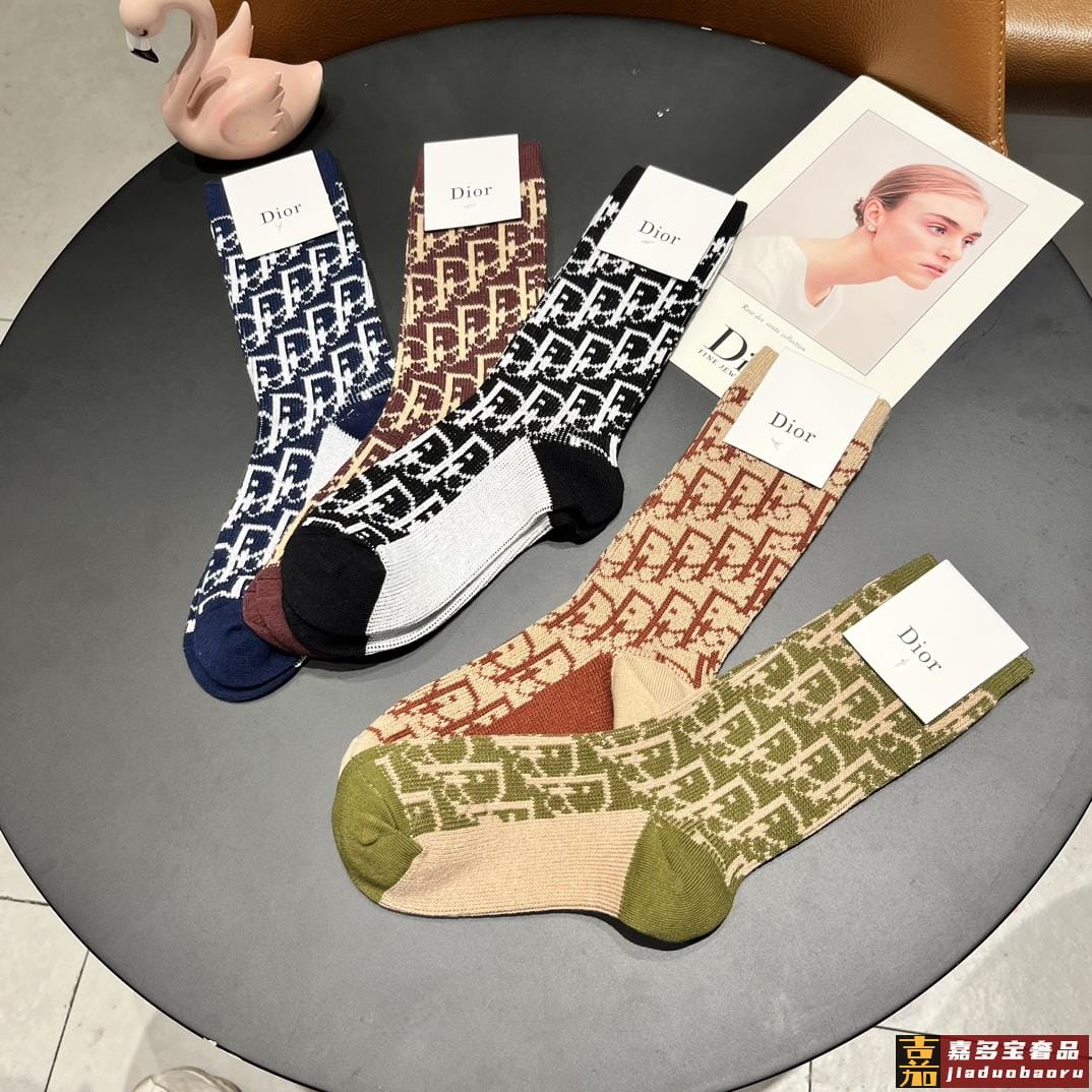 迪奥家新品女款短筒袜子一盒五双纯棉材质上脚柔软舒适经典的家字
