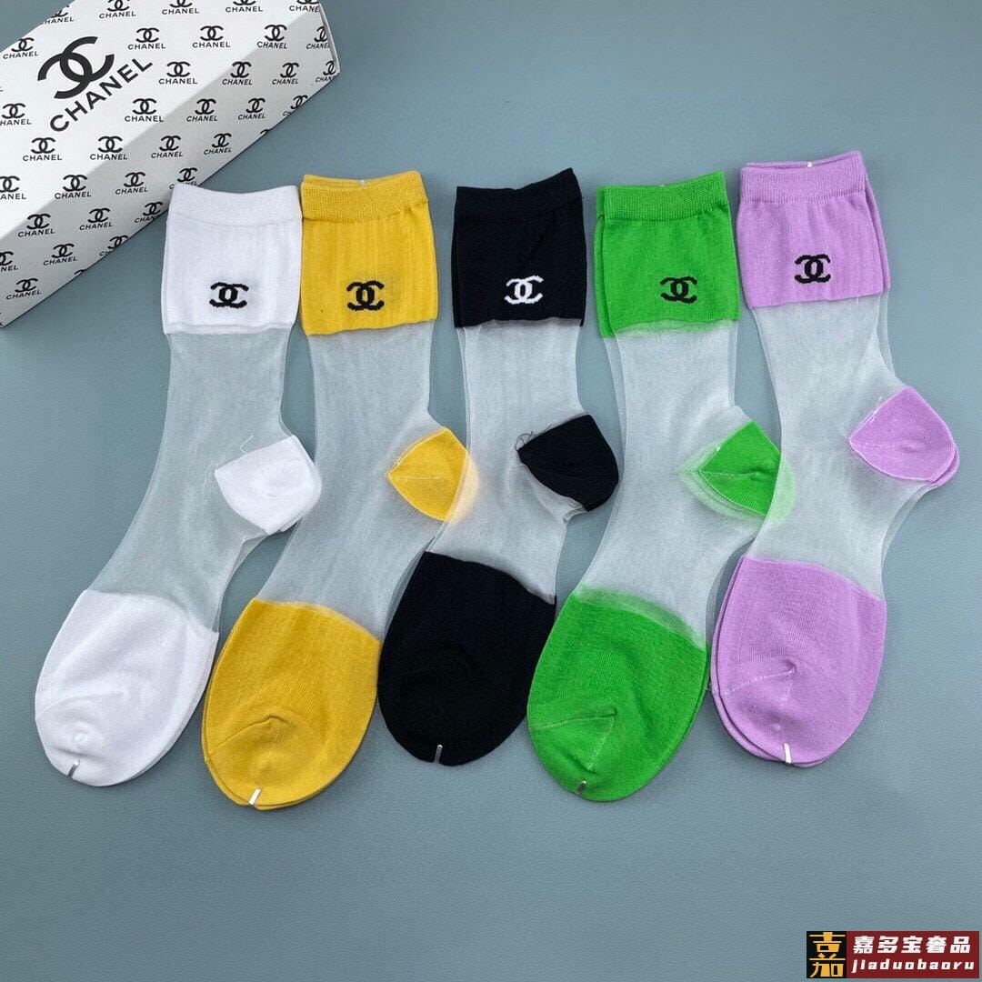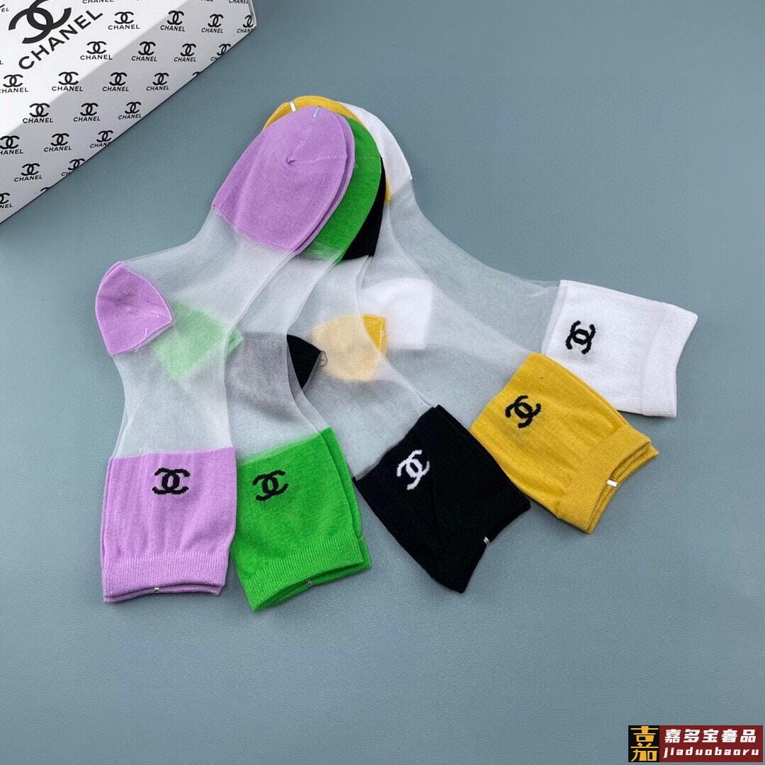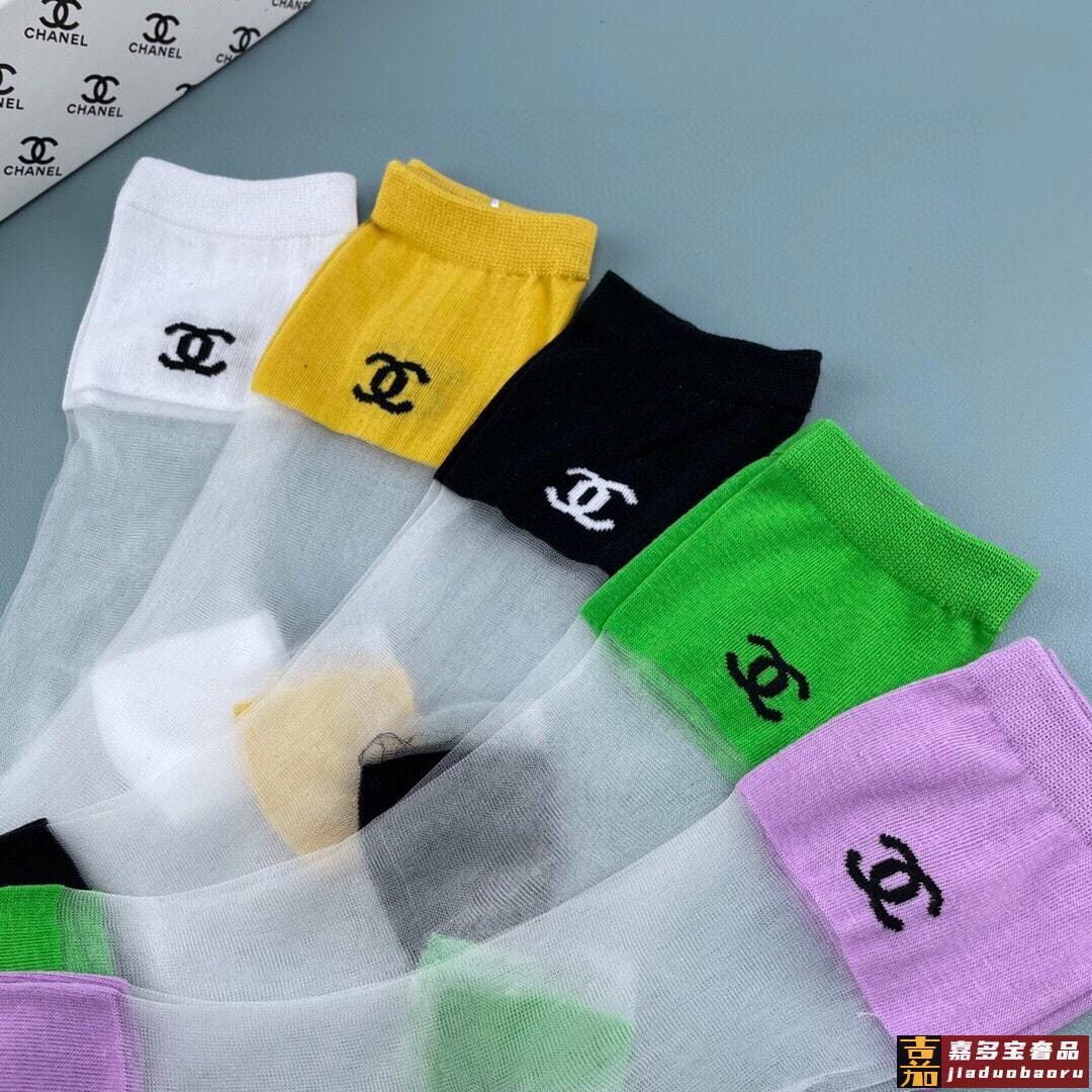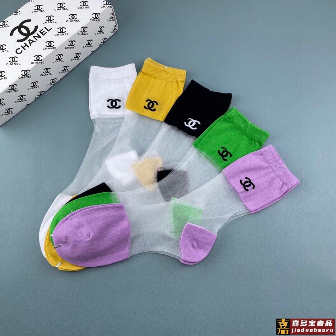 香奈儿香奶奶家新品女款冰丝袜子一盒五双冰丝纯棉糖果色材质非常