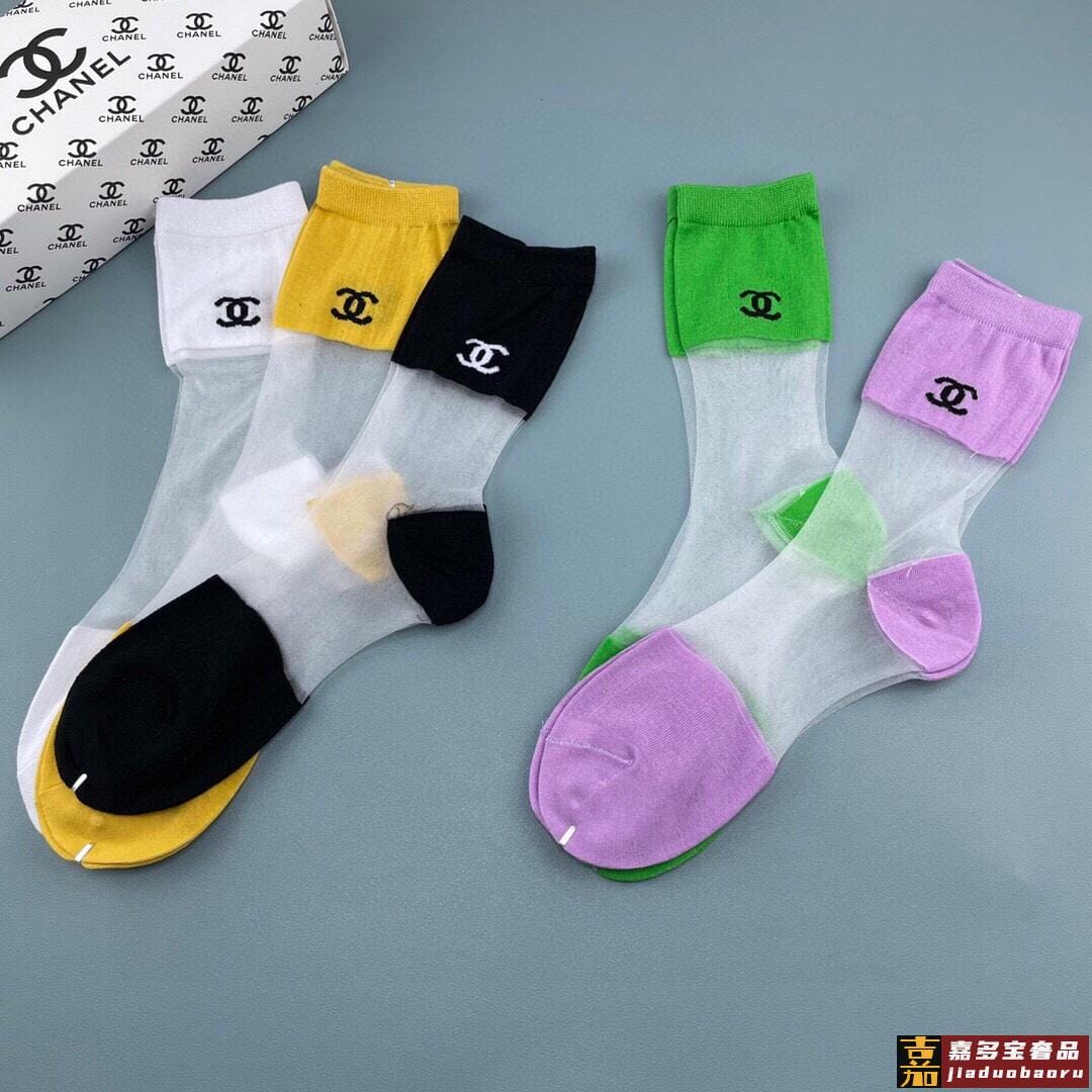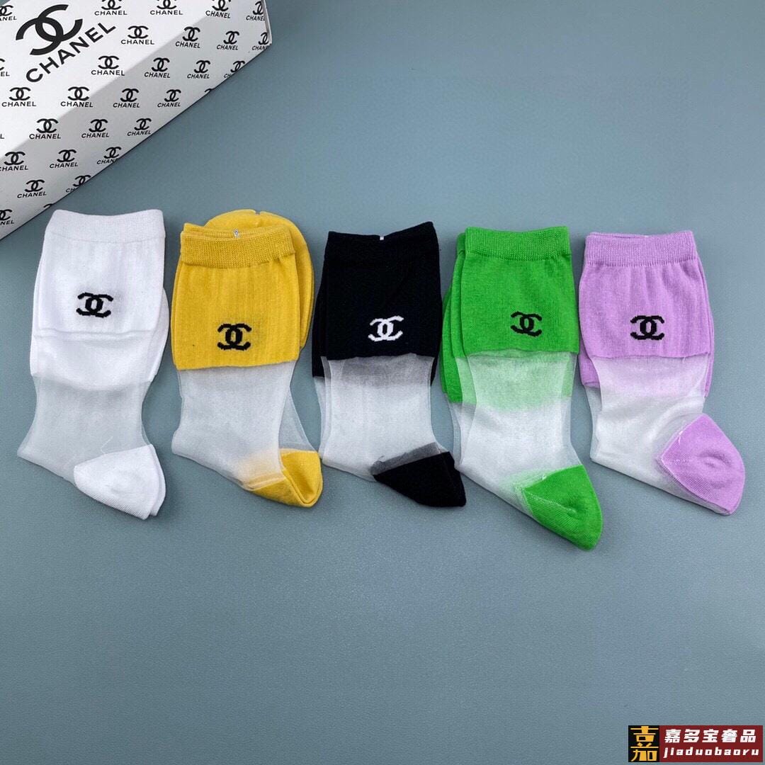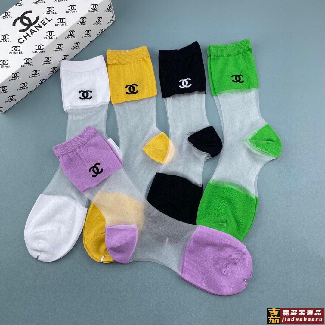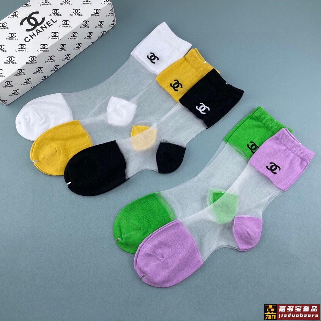 香奈儿香奶奶家新品女款冰丝袜子一盒五双冰丝纯棉糖果色材质非常