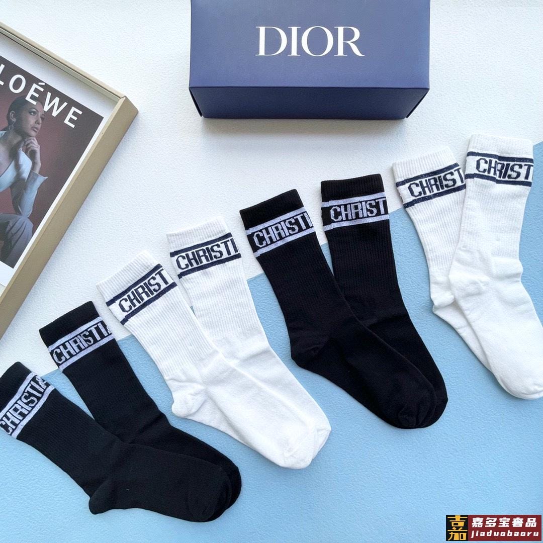 迪奥家新品女款短筒袜子一盒五双纯棉材质上脚柔软舒适经典的家字