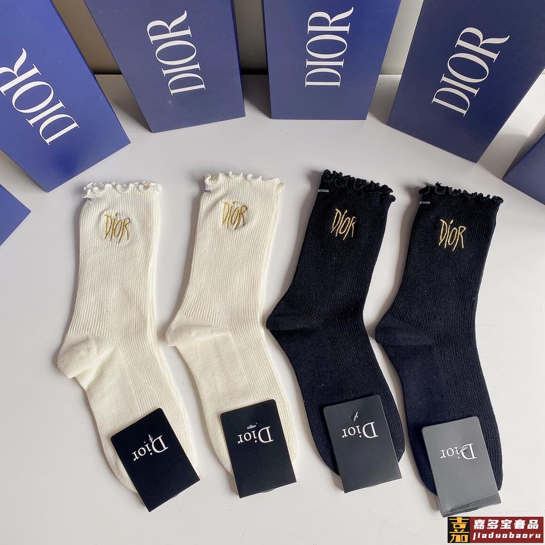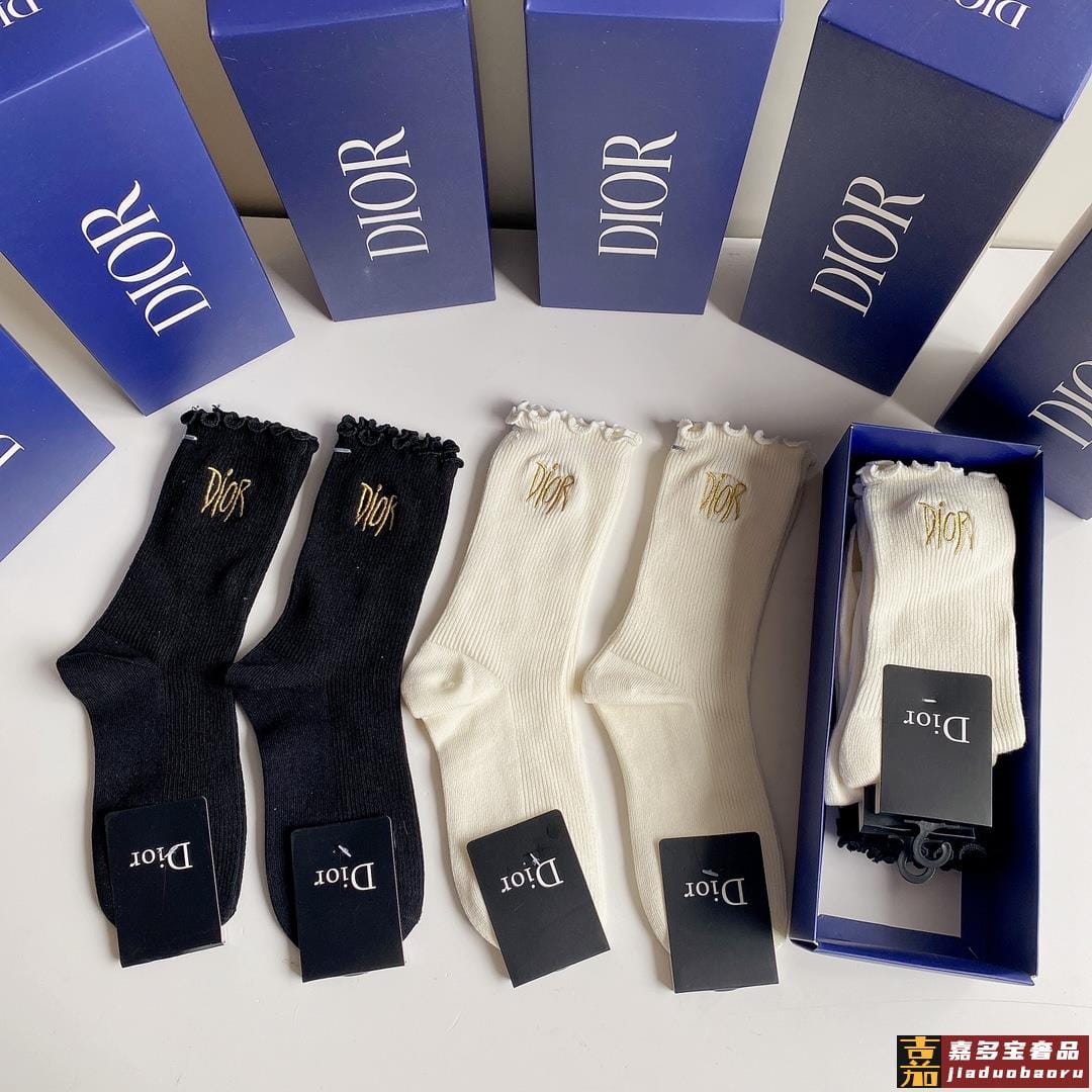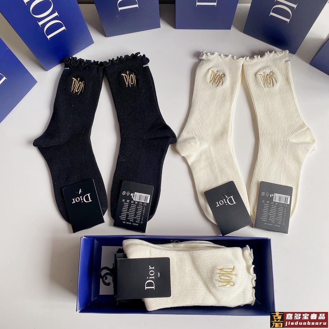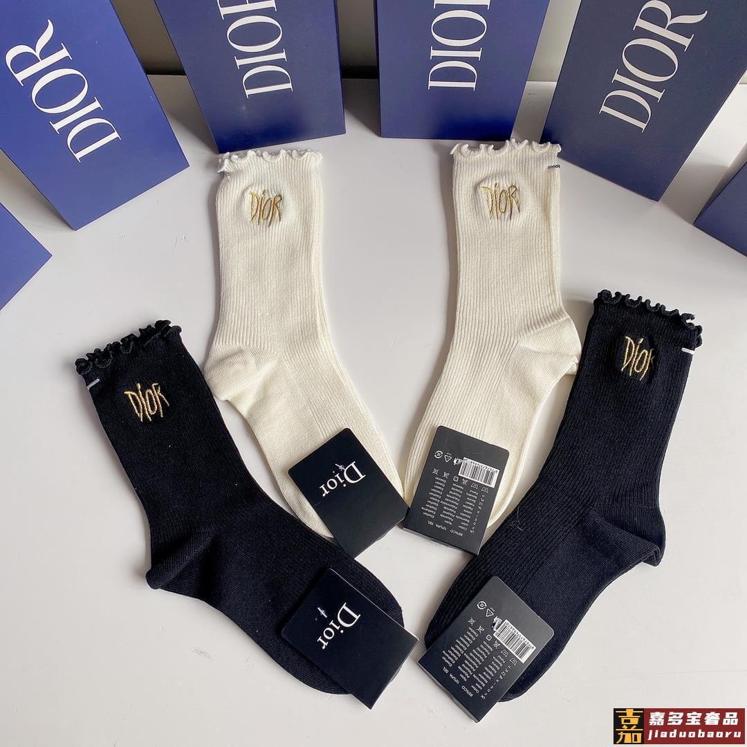 特配专柜包装迪奥新款中长款刺绣毛边堆堆袜袜子一盒四双专柜同步