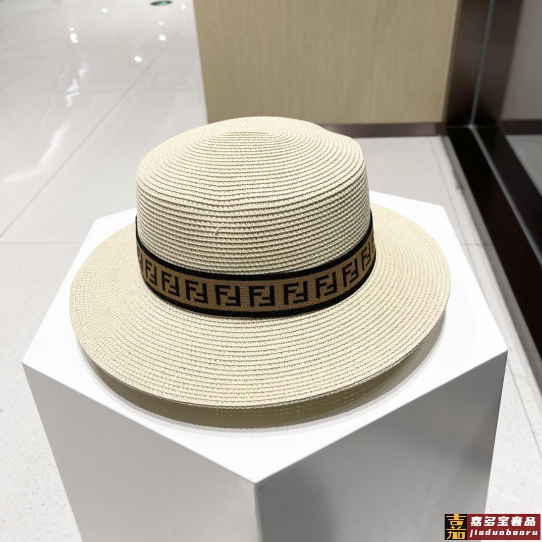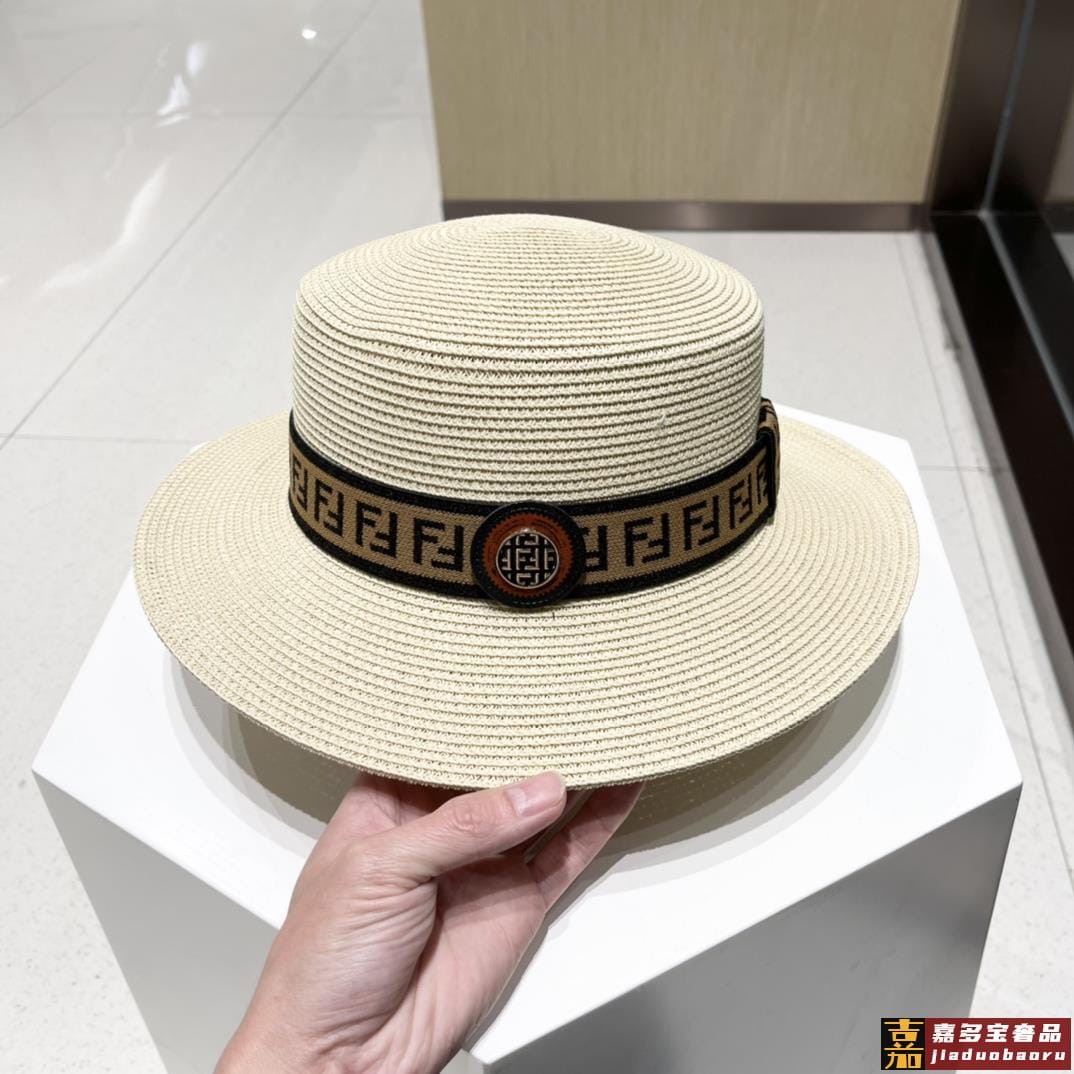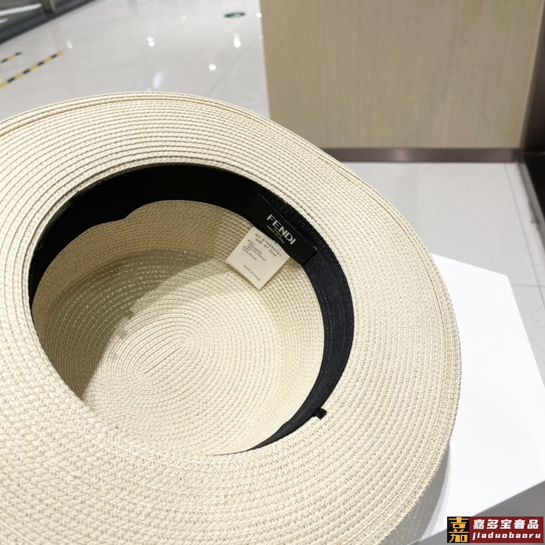 芬迪新款草帽拉菲草制作拼老花面料名媛必备头围