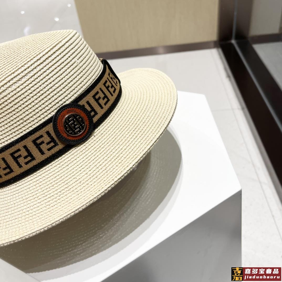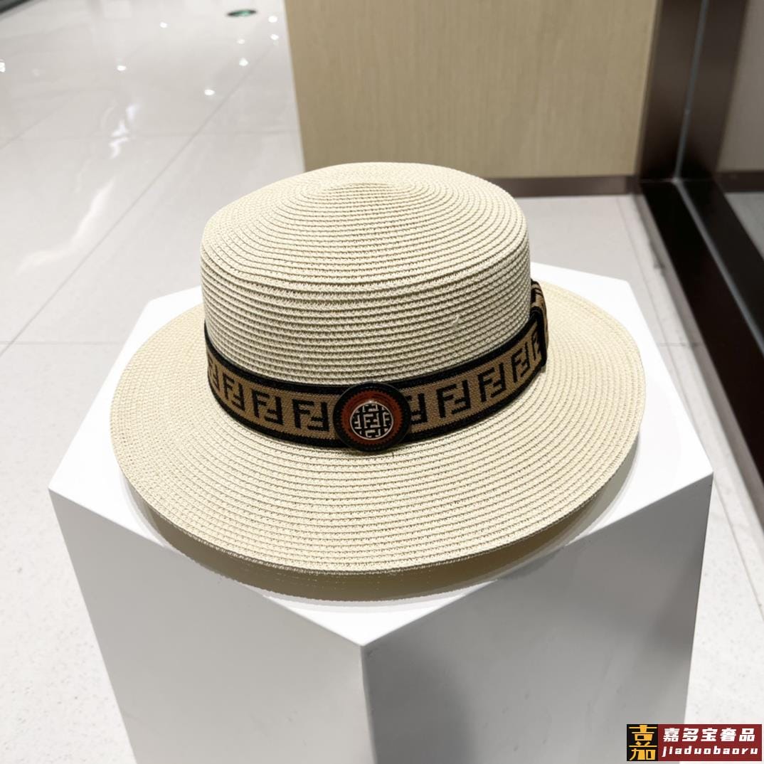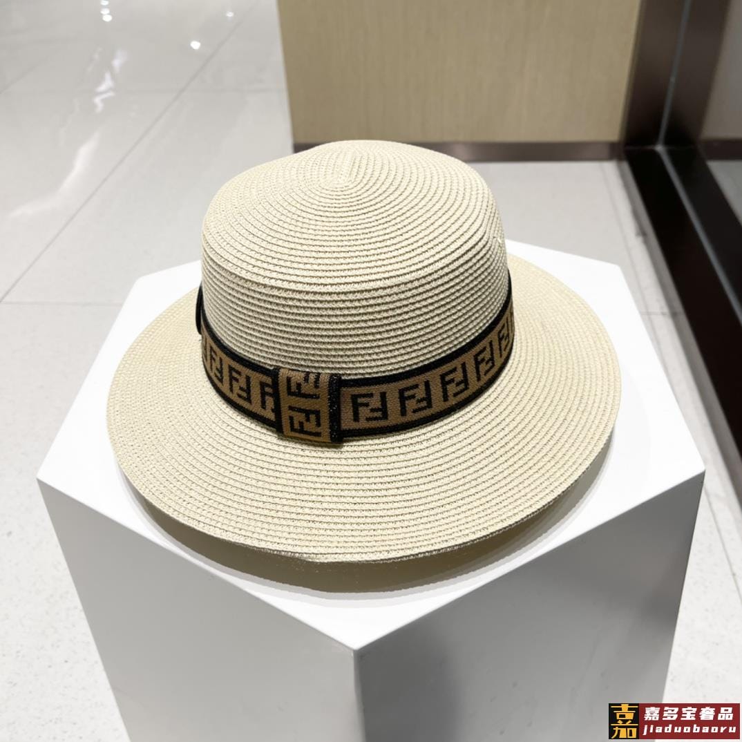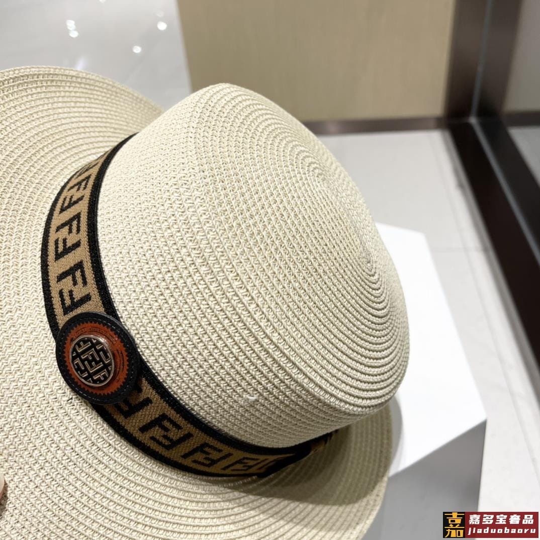 芬迪新款草帽拉菲草制作拼老花面料名媛必备头围
