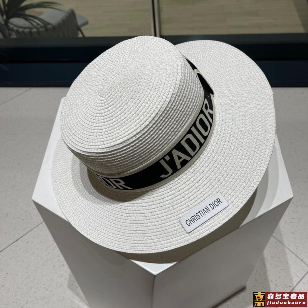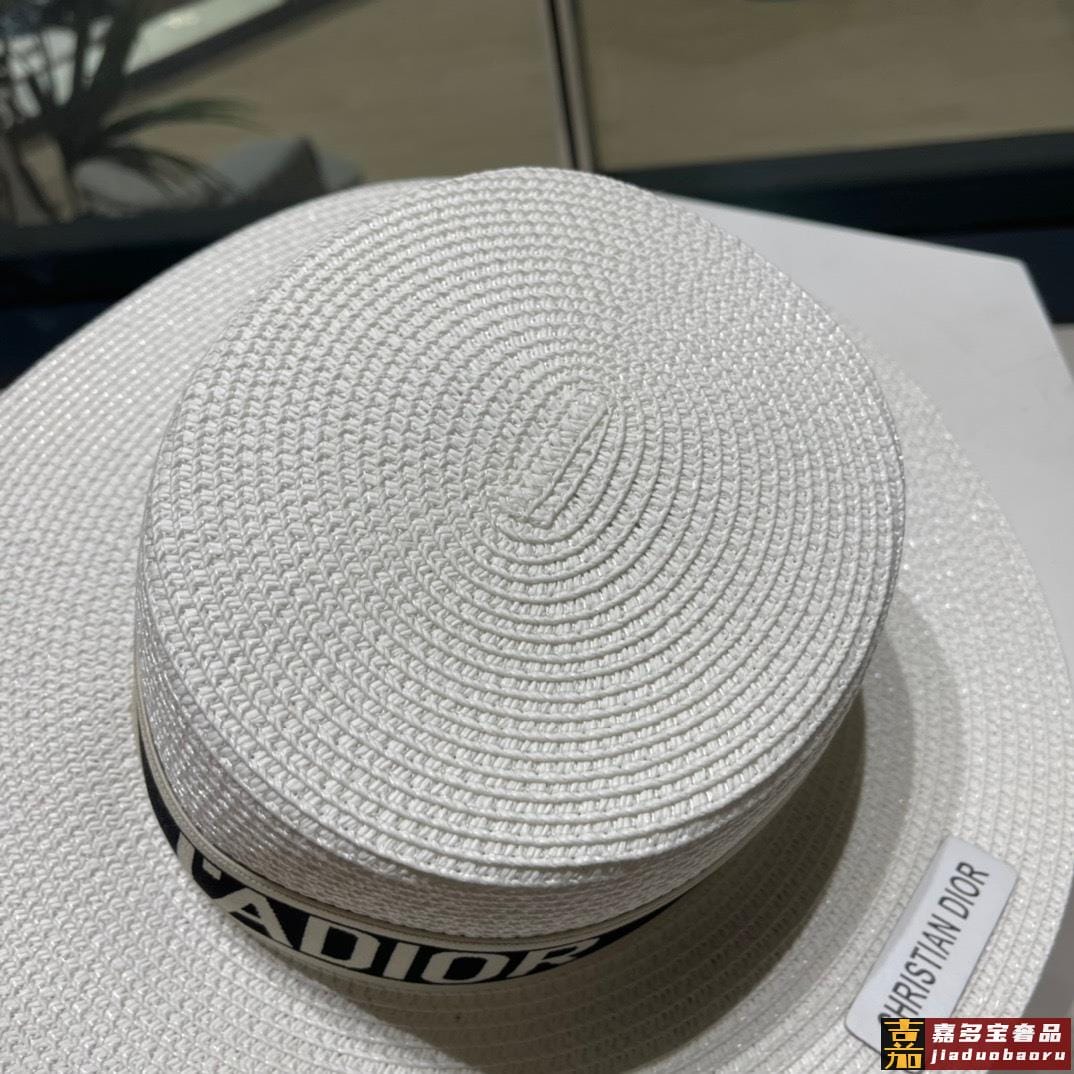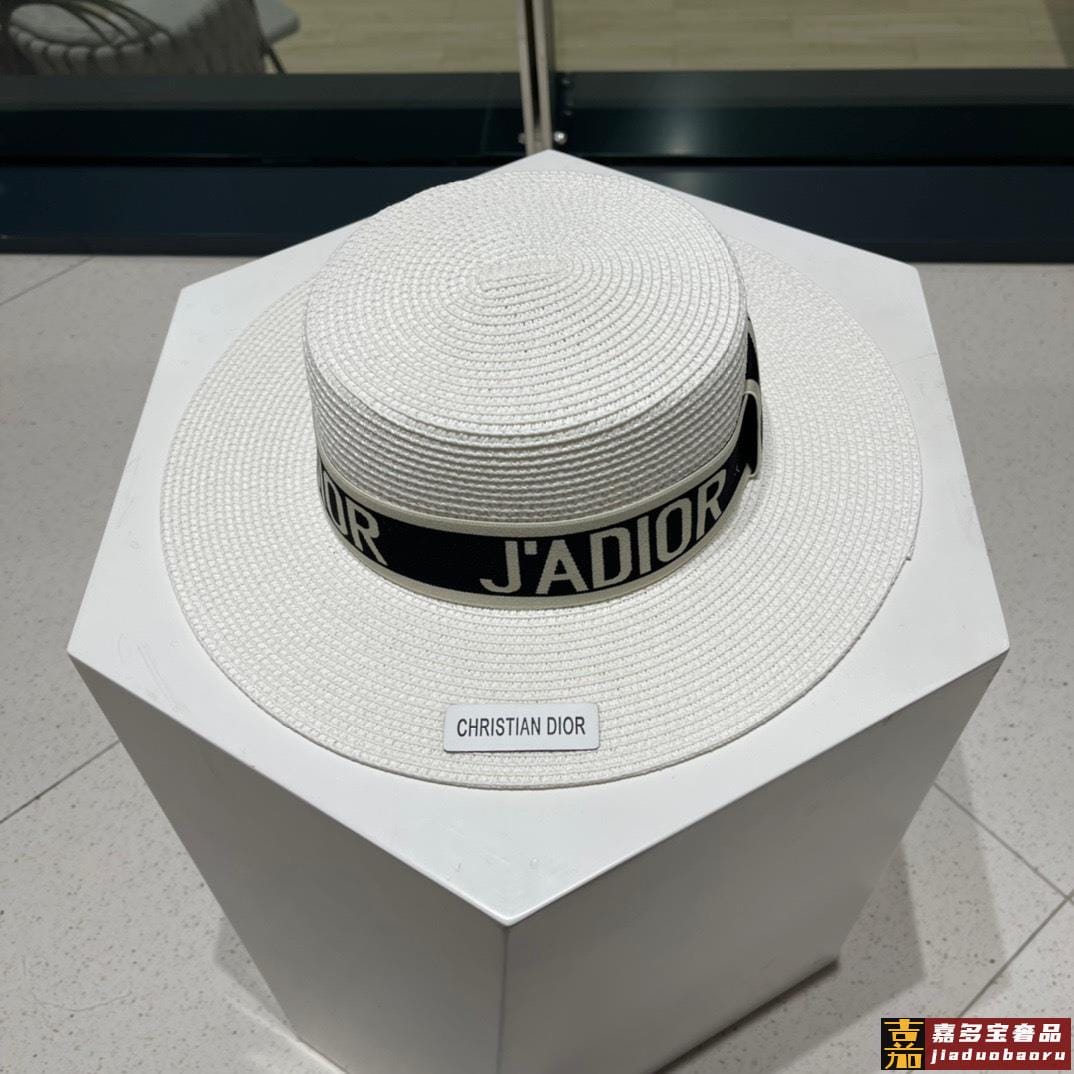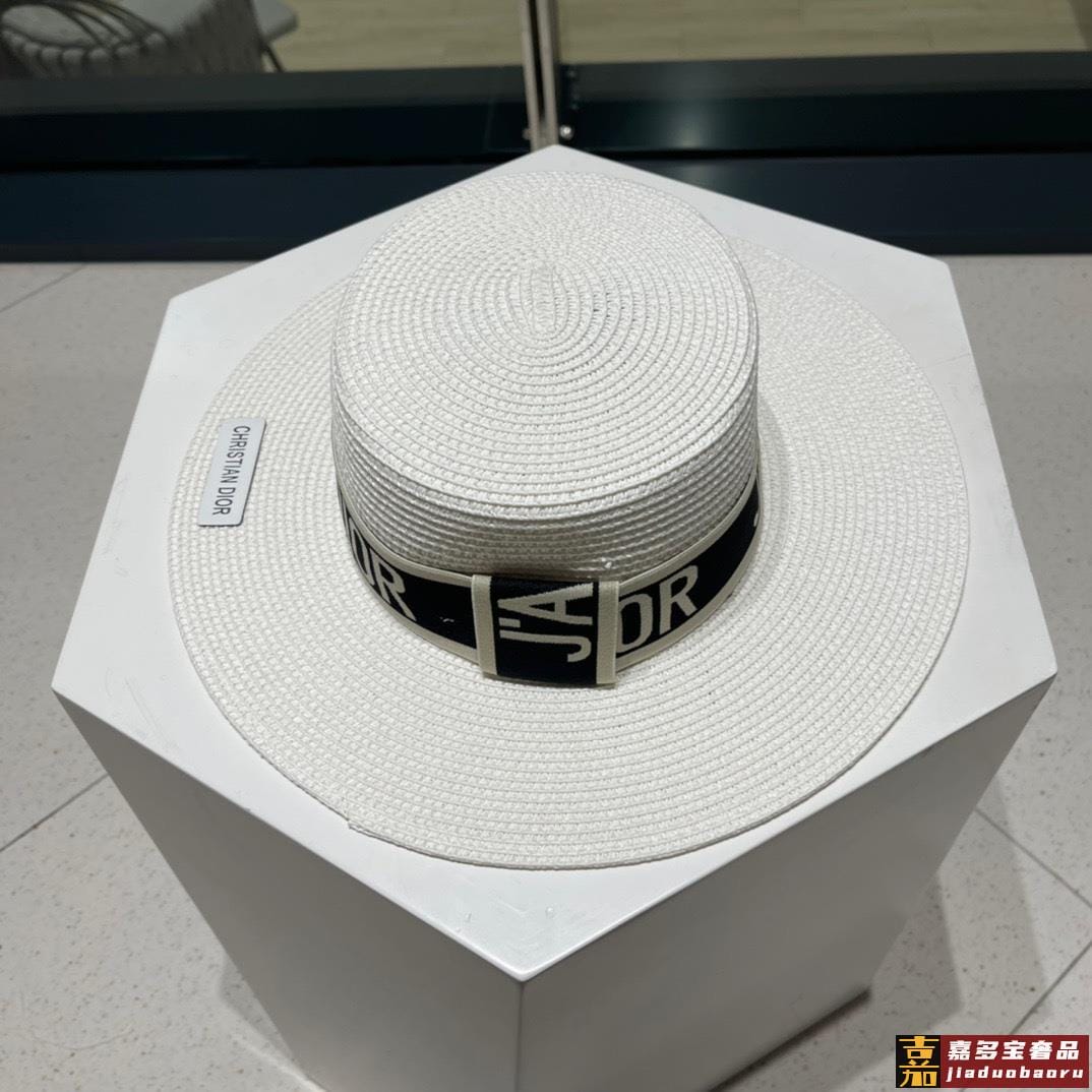 迪奥新款麦秆草礼帽新品草帽平顶礼帽出游必备头围