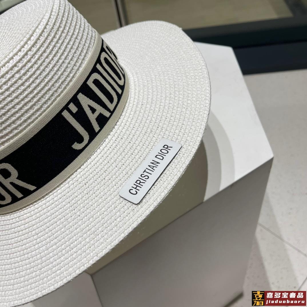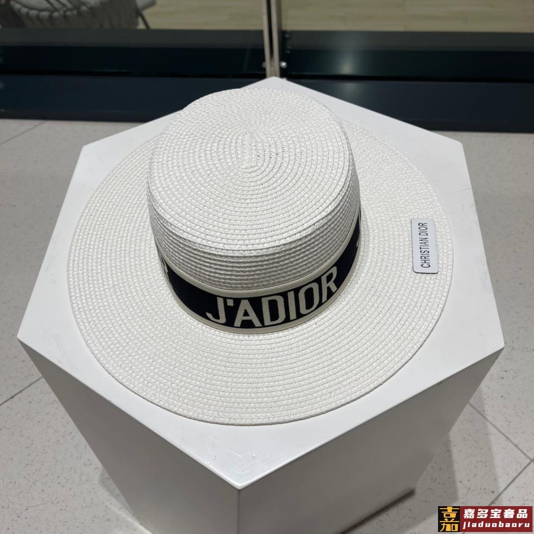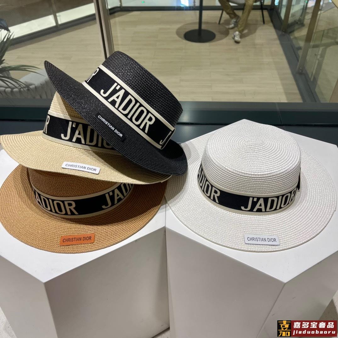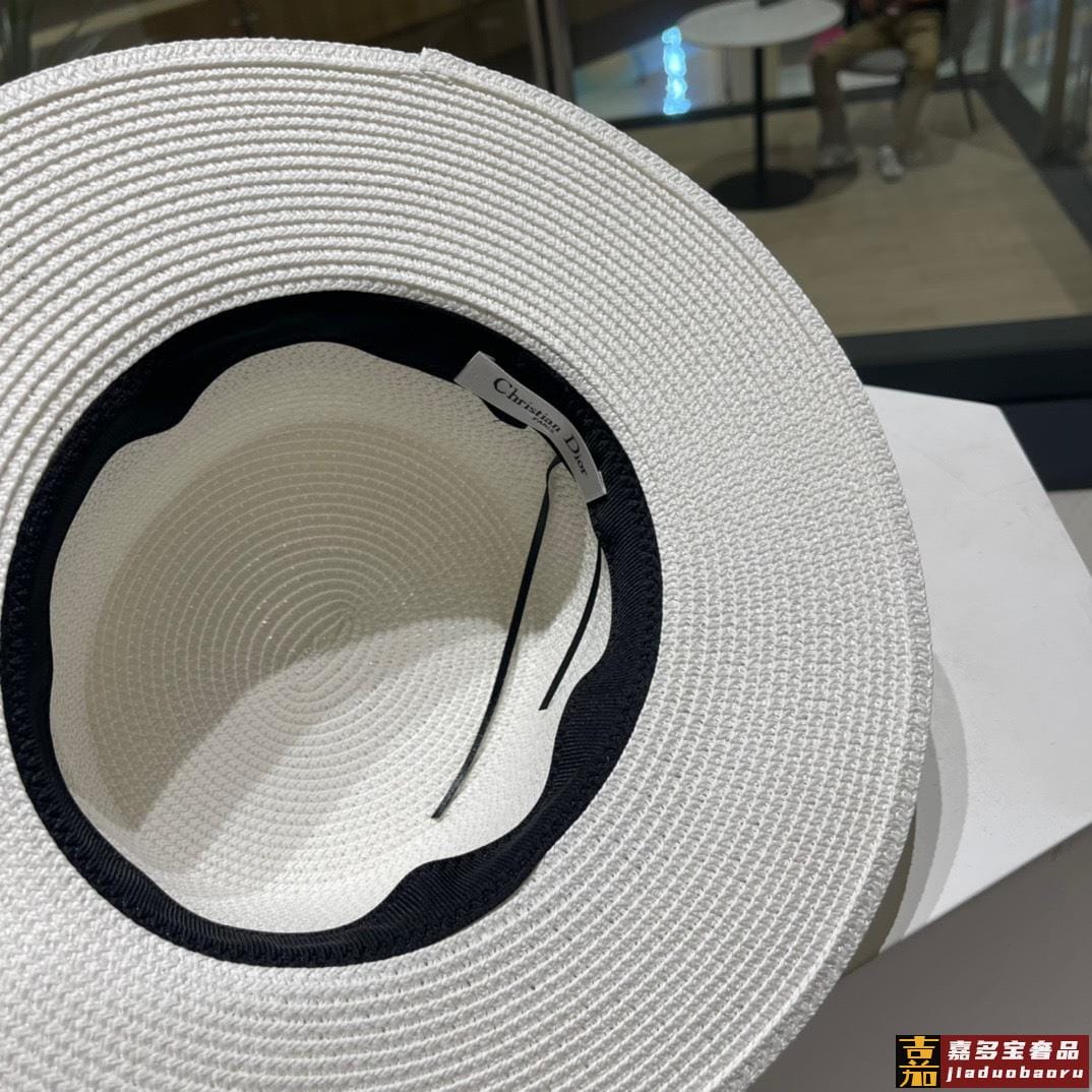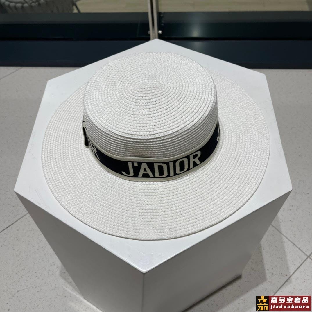 迪奥新款麦秆草礼帽新品草帽平顶礼帽出游必备头围