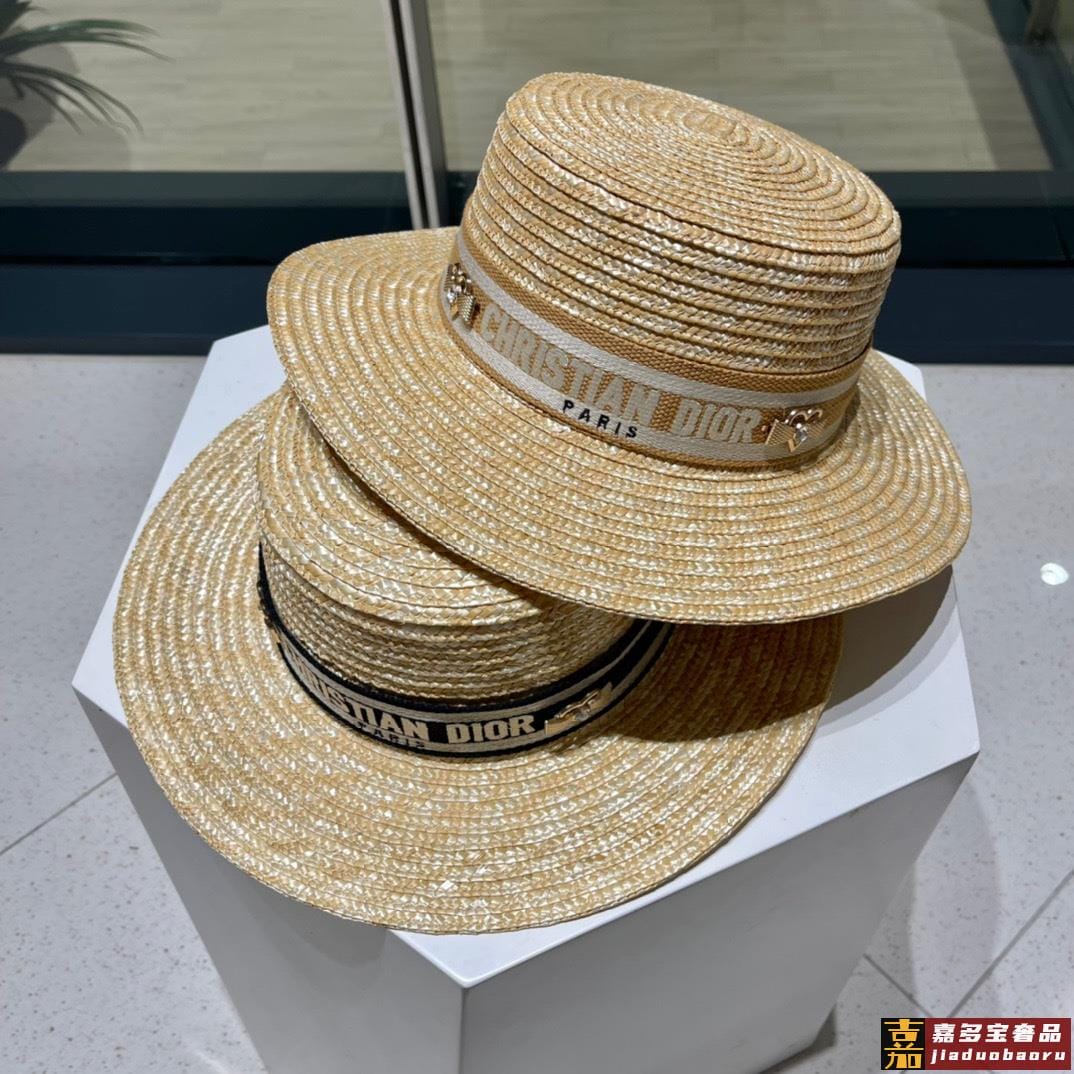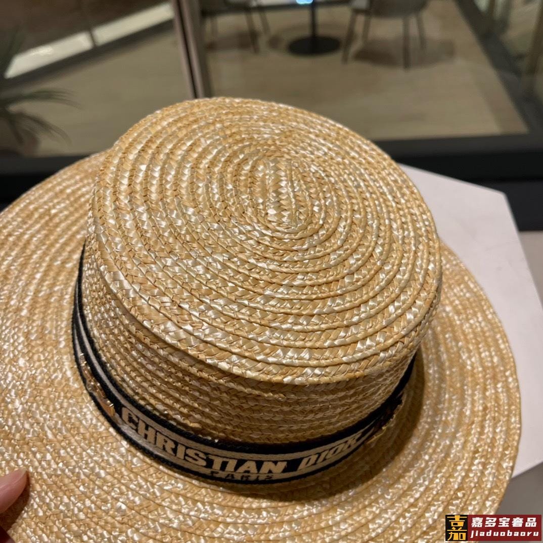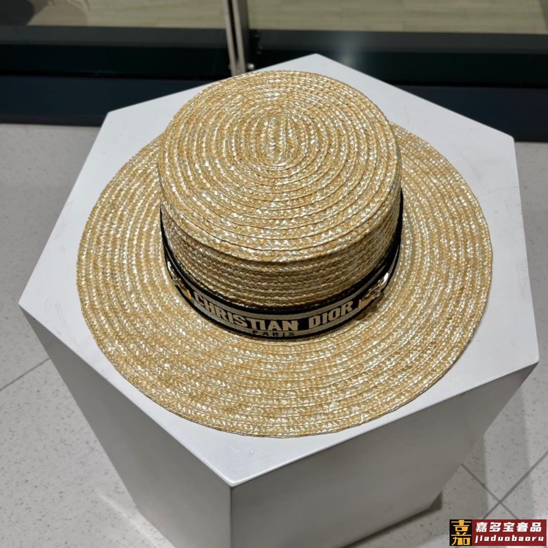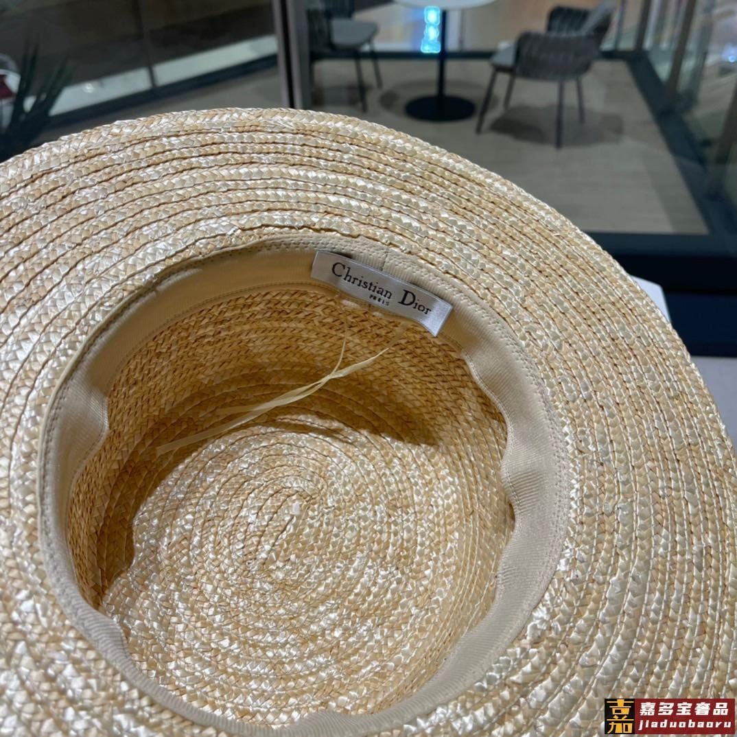 迪奥新款麦秆草礼帽新品草帽平顶礼帽出游必备头围