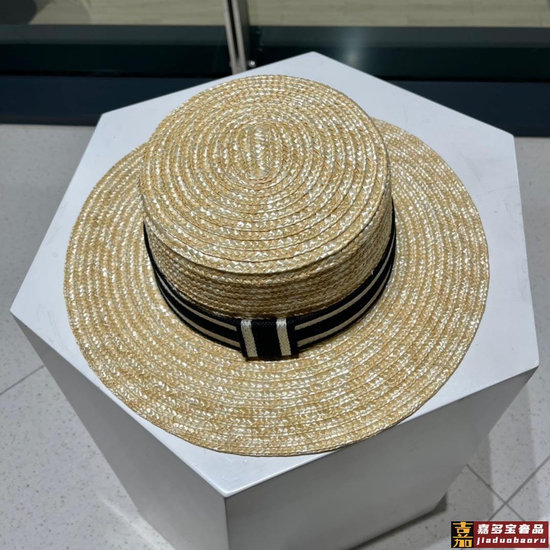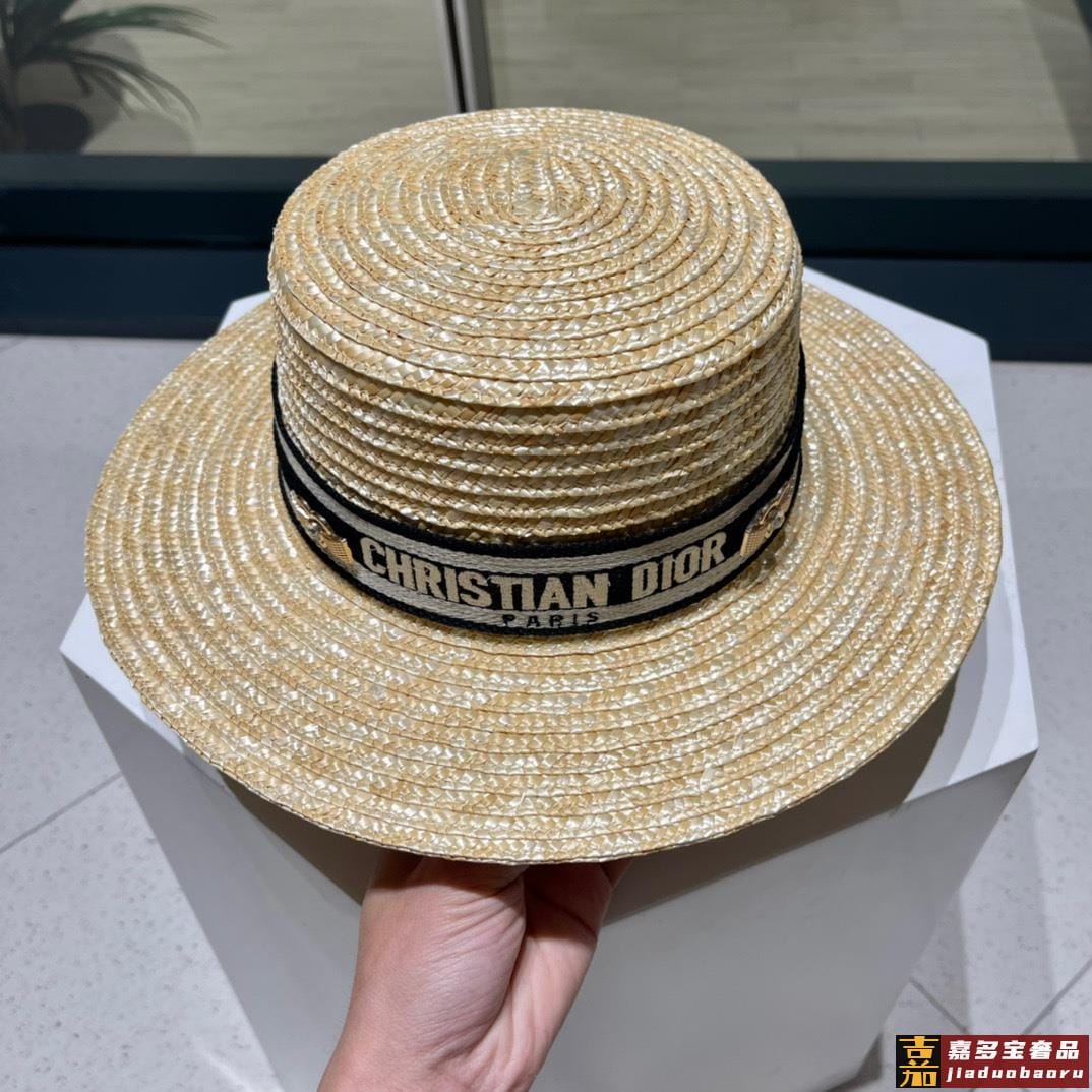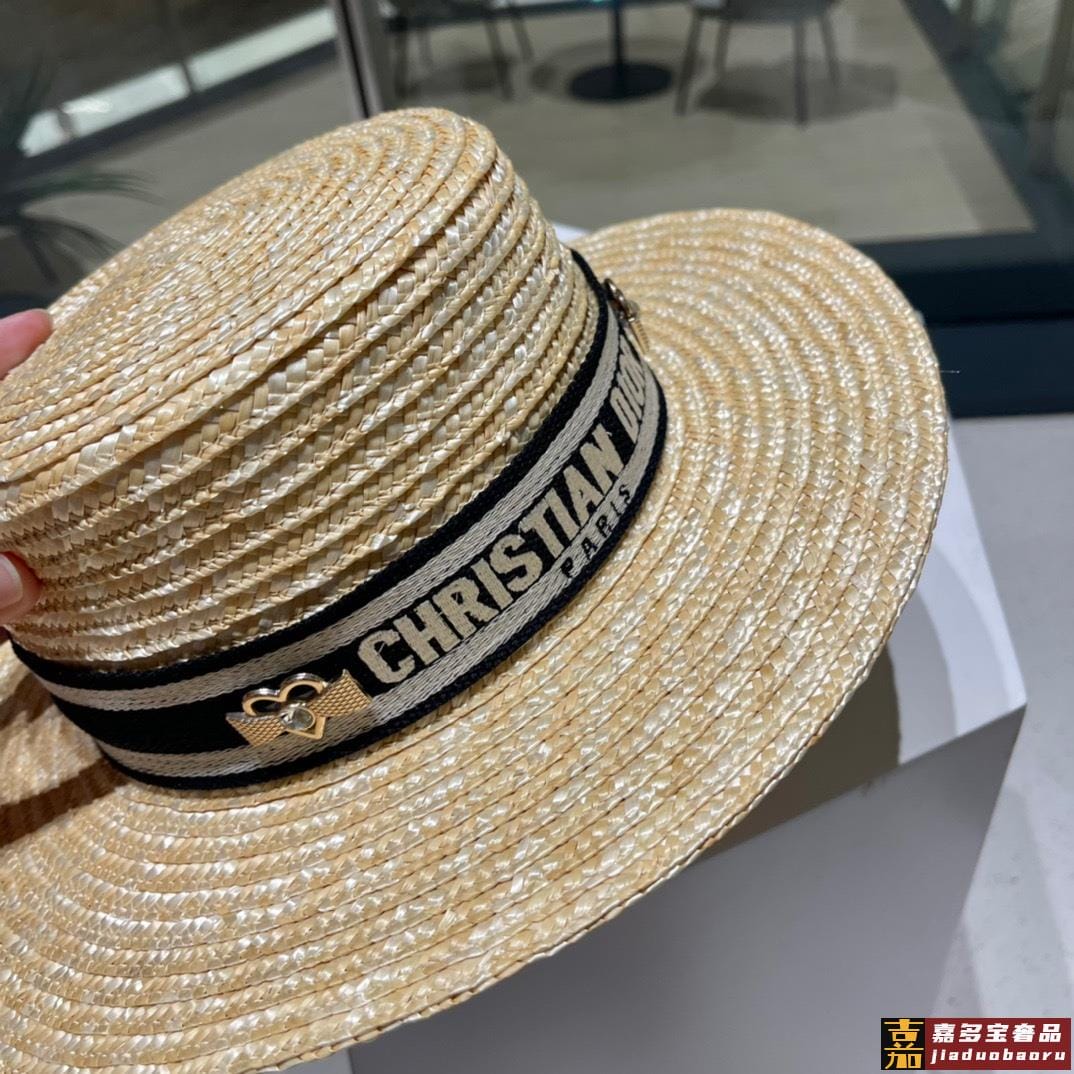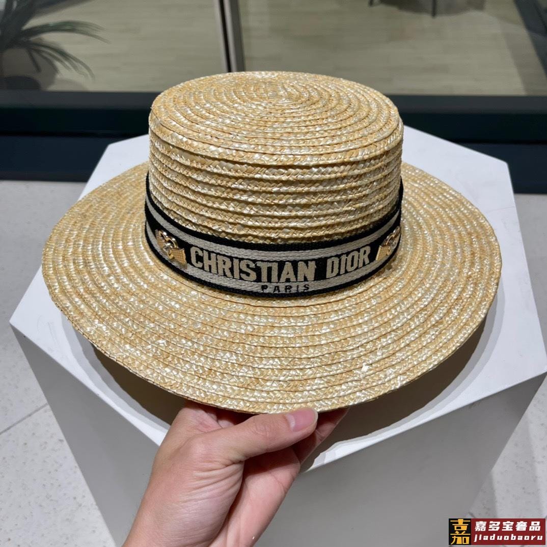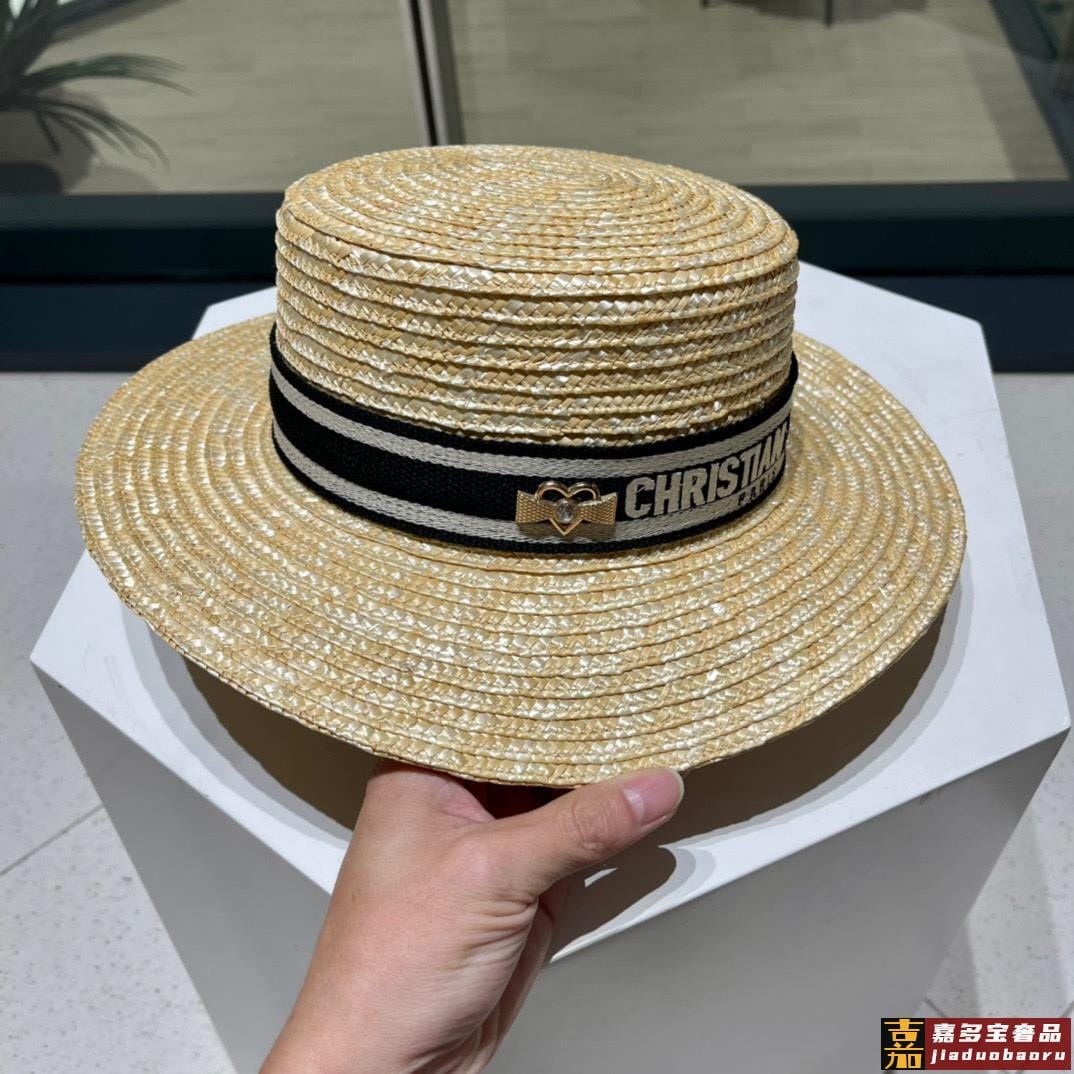 迪奥新款麦秆草礼帽新品草帽平顶礼帽出游必备头围