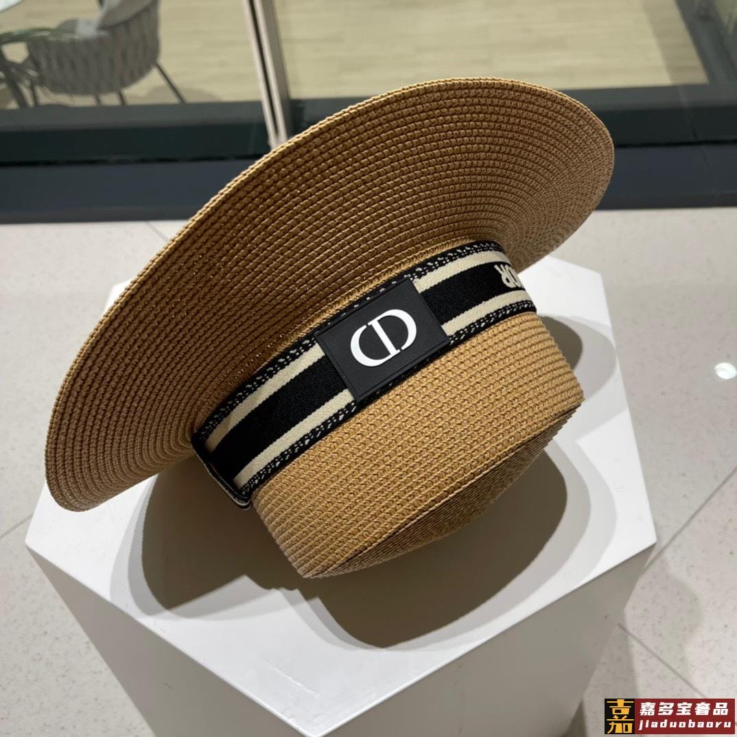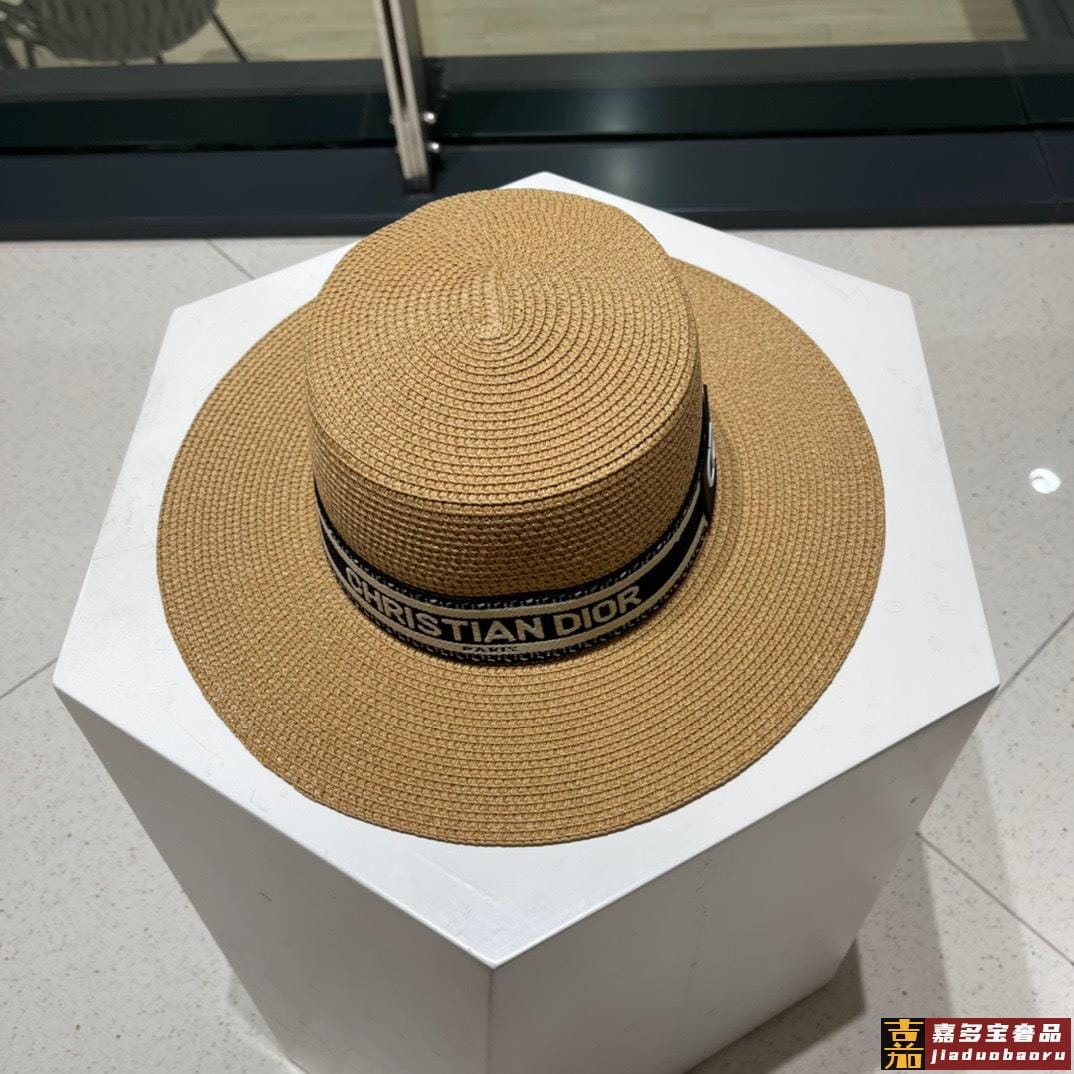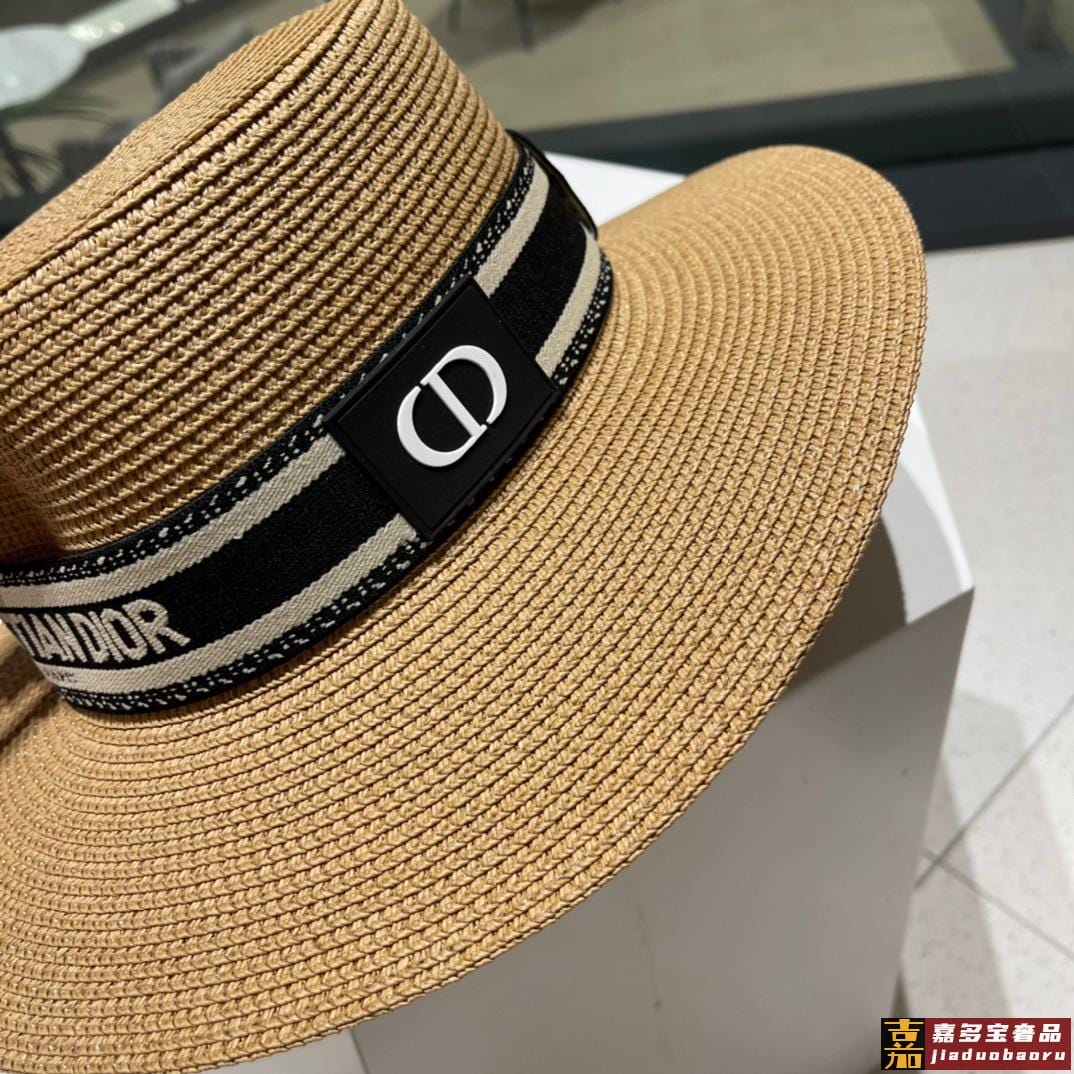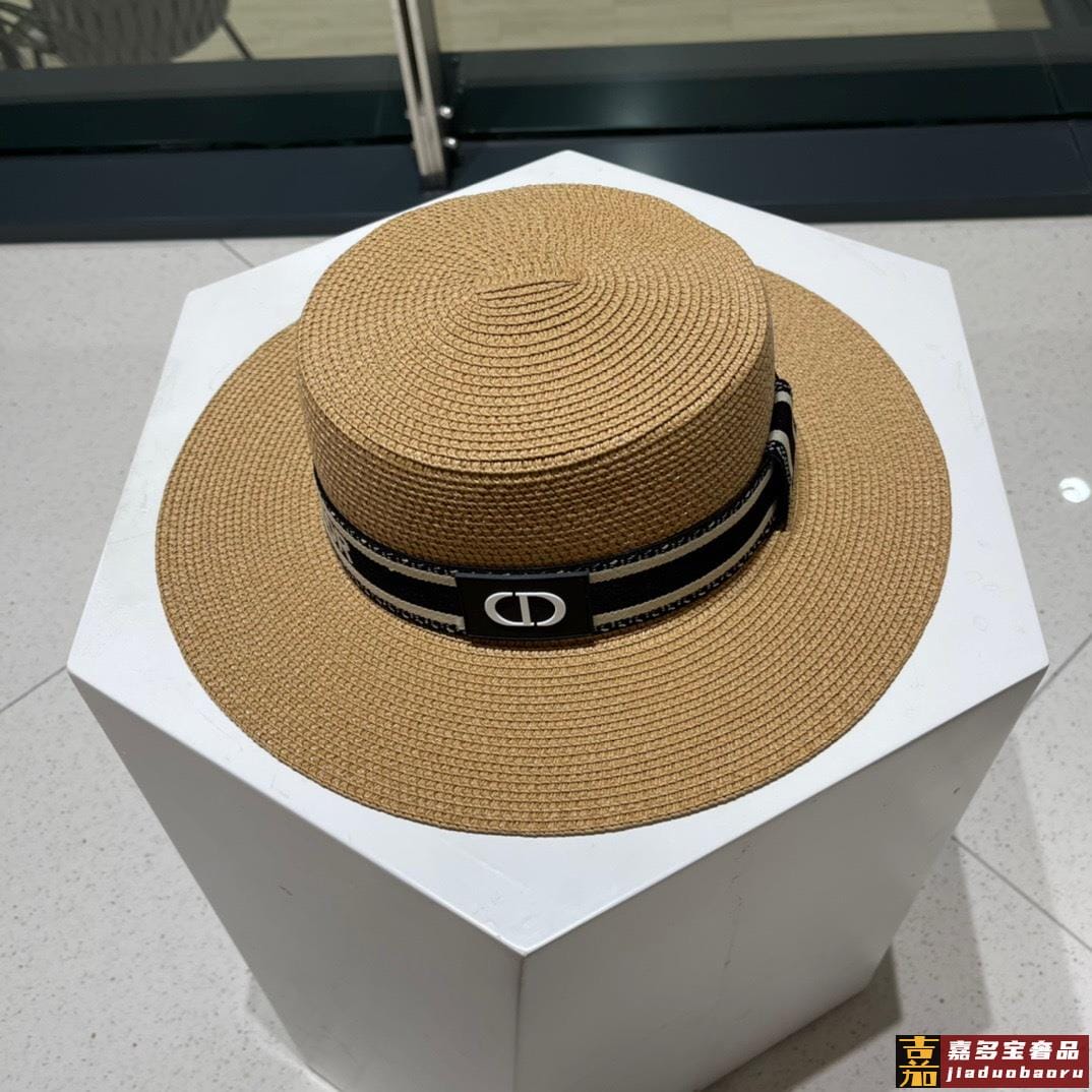迪奥新款麦秆草礼帽新品草帽平顶礼帽出游必备头围