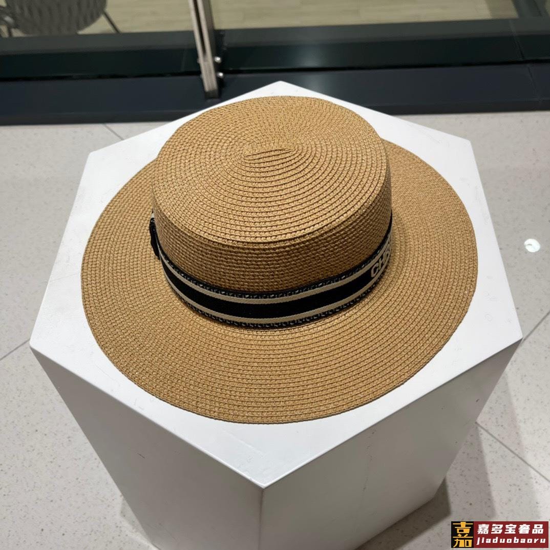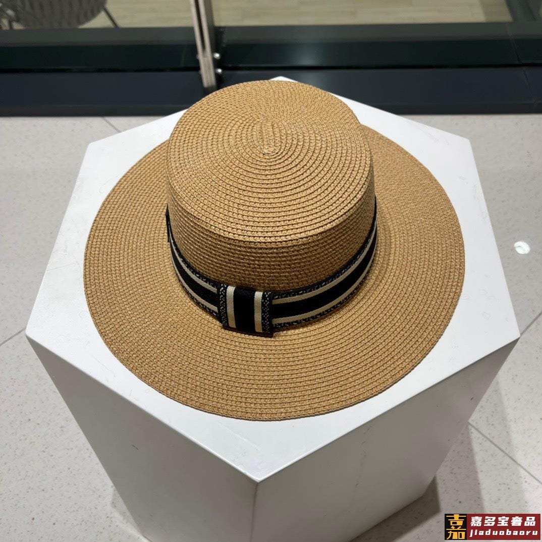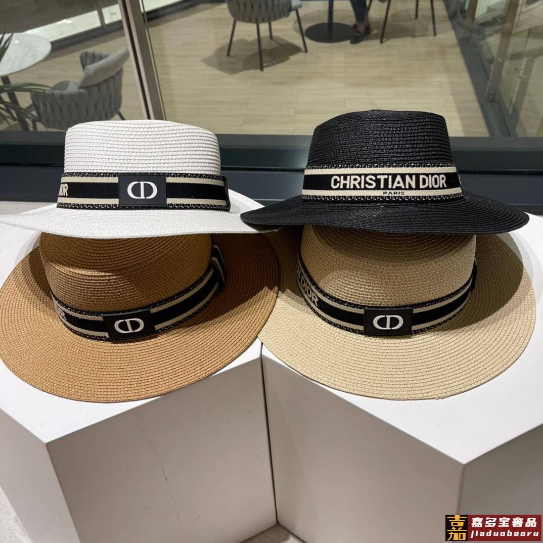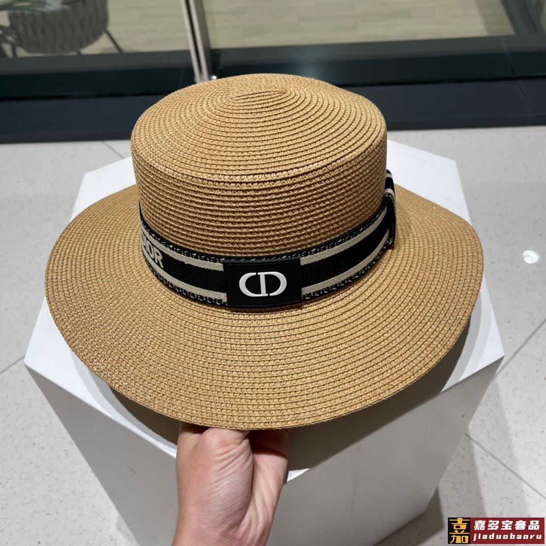 迪奥新款麦秆草礼帽新品草帽平顶礼帽出游必备头围