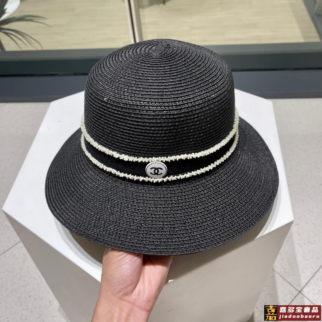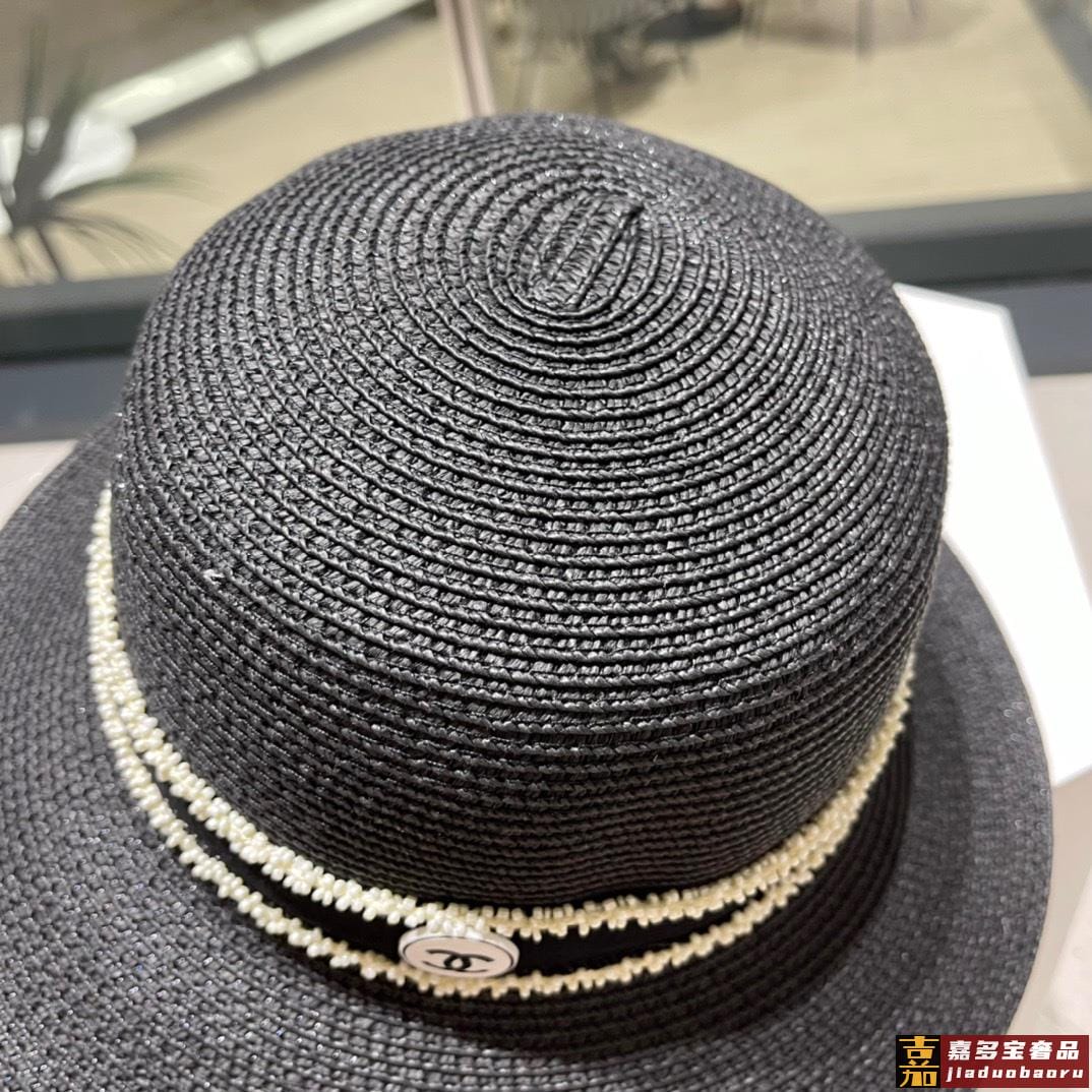 芬迪新款草帽拉菲草制作拼老花面料名媛必备头围