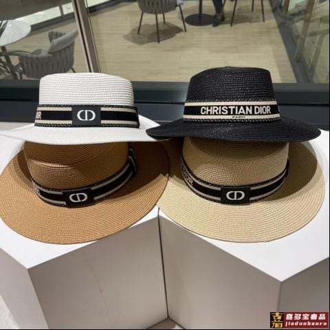 迪奥新款麦秆草礼帽新品草帽平顶礼帽出游必备头围