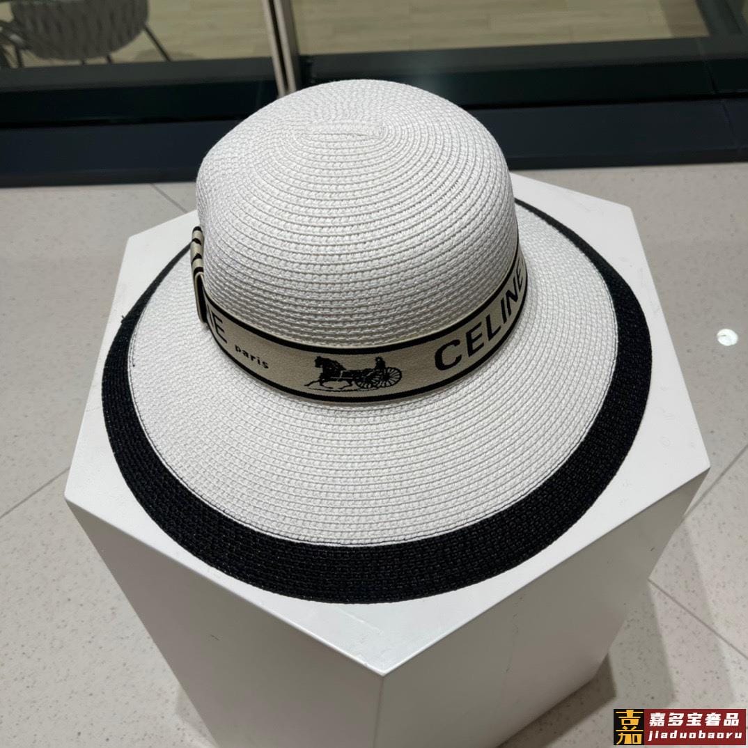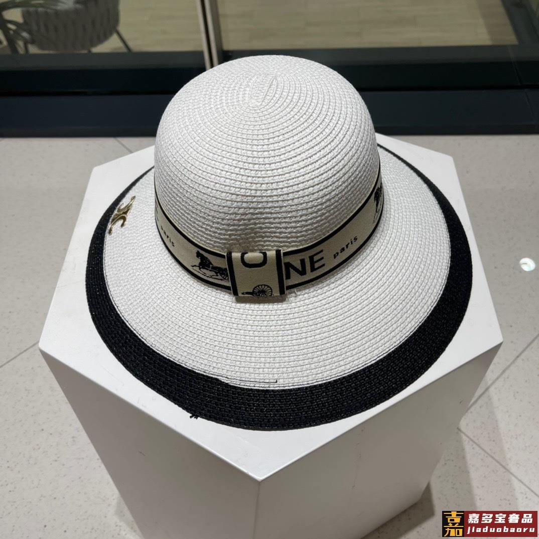 赛琳新款草编遮阳草帽盆帽沙滩风简约大方百搭单品出街首选新款帽