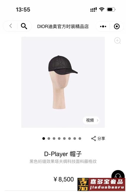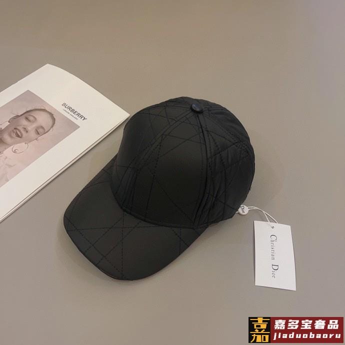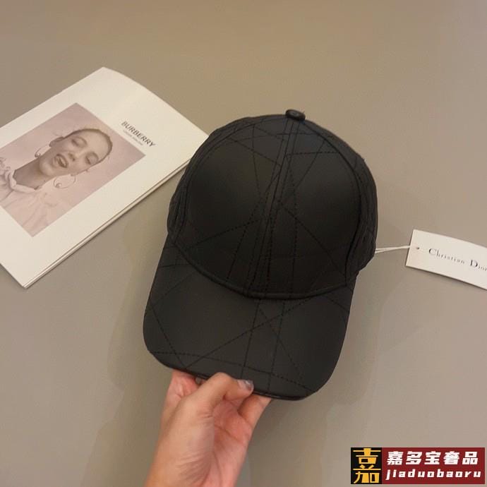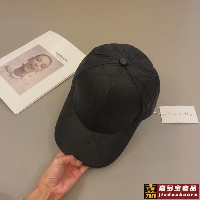 迪奥高奢款帽子黑色绗缝效果塔夫绸科技面料藤格纹欧洲直邮棒球帽