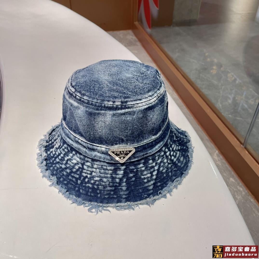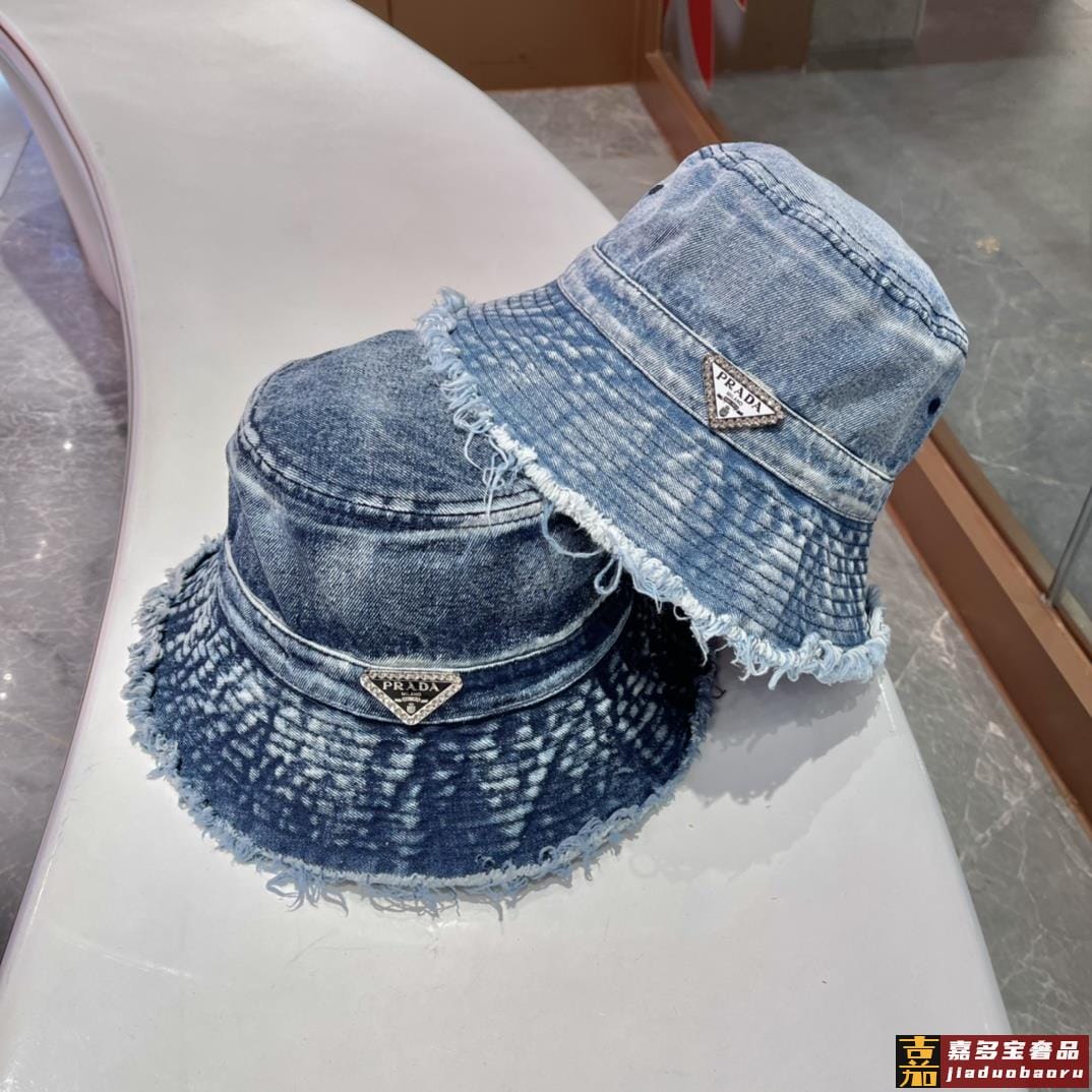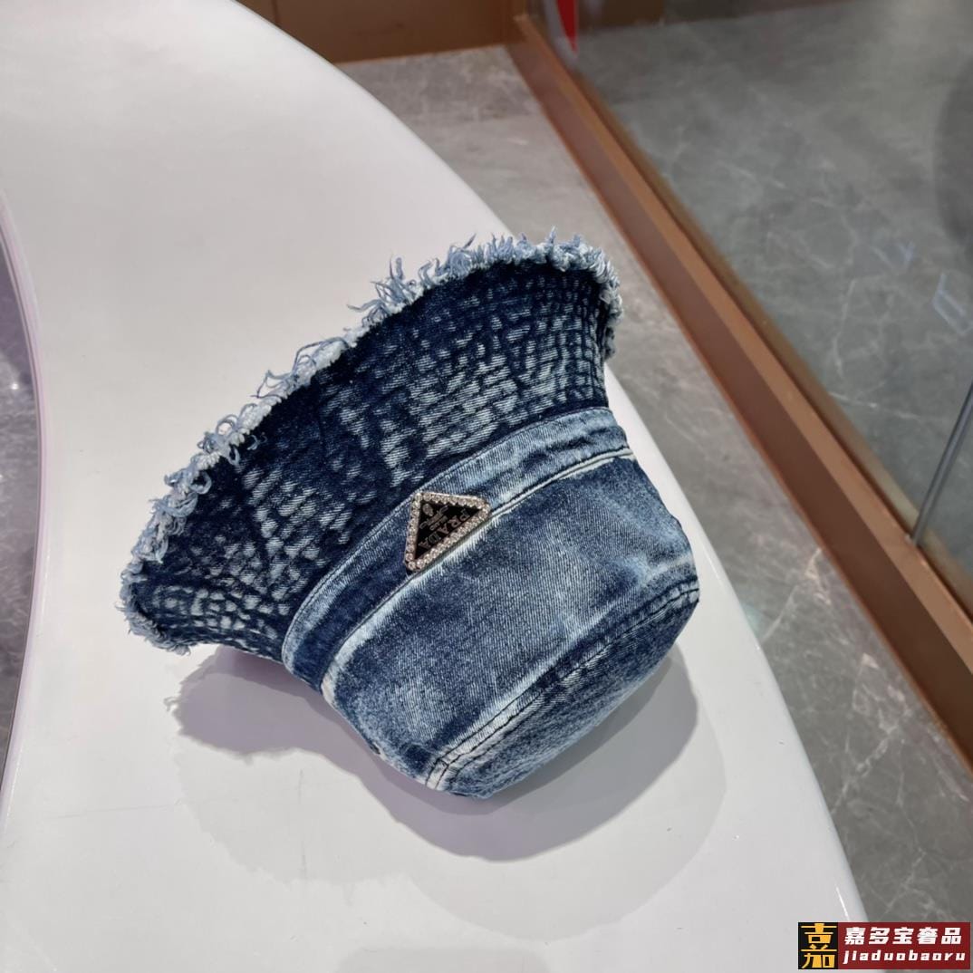 普拉达日韩潮牌情侣帽子韩版牛仔磨毛边渔夫帽遮阳防晒帽百搭显脸