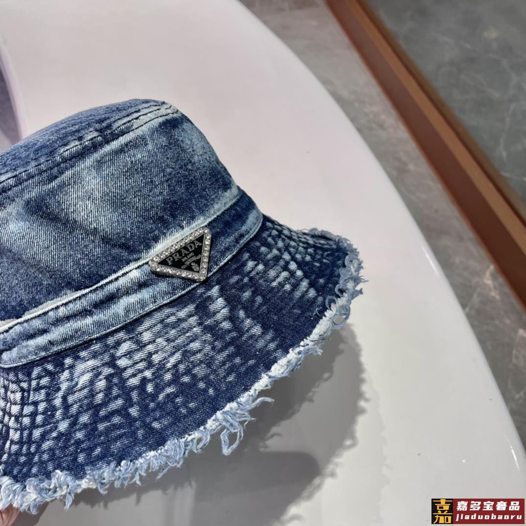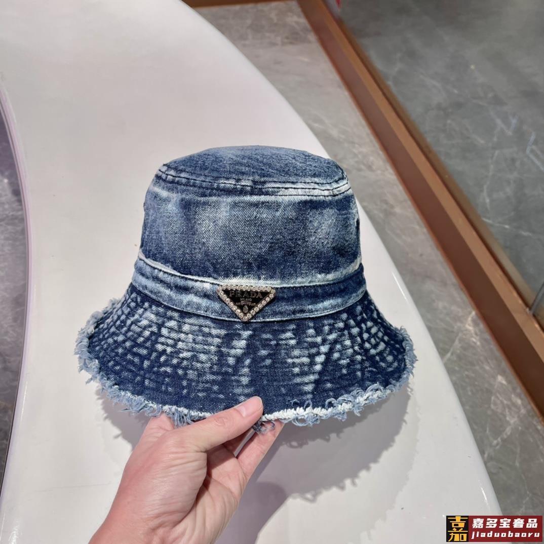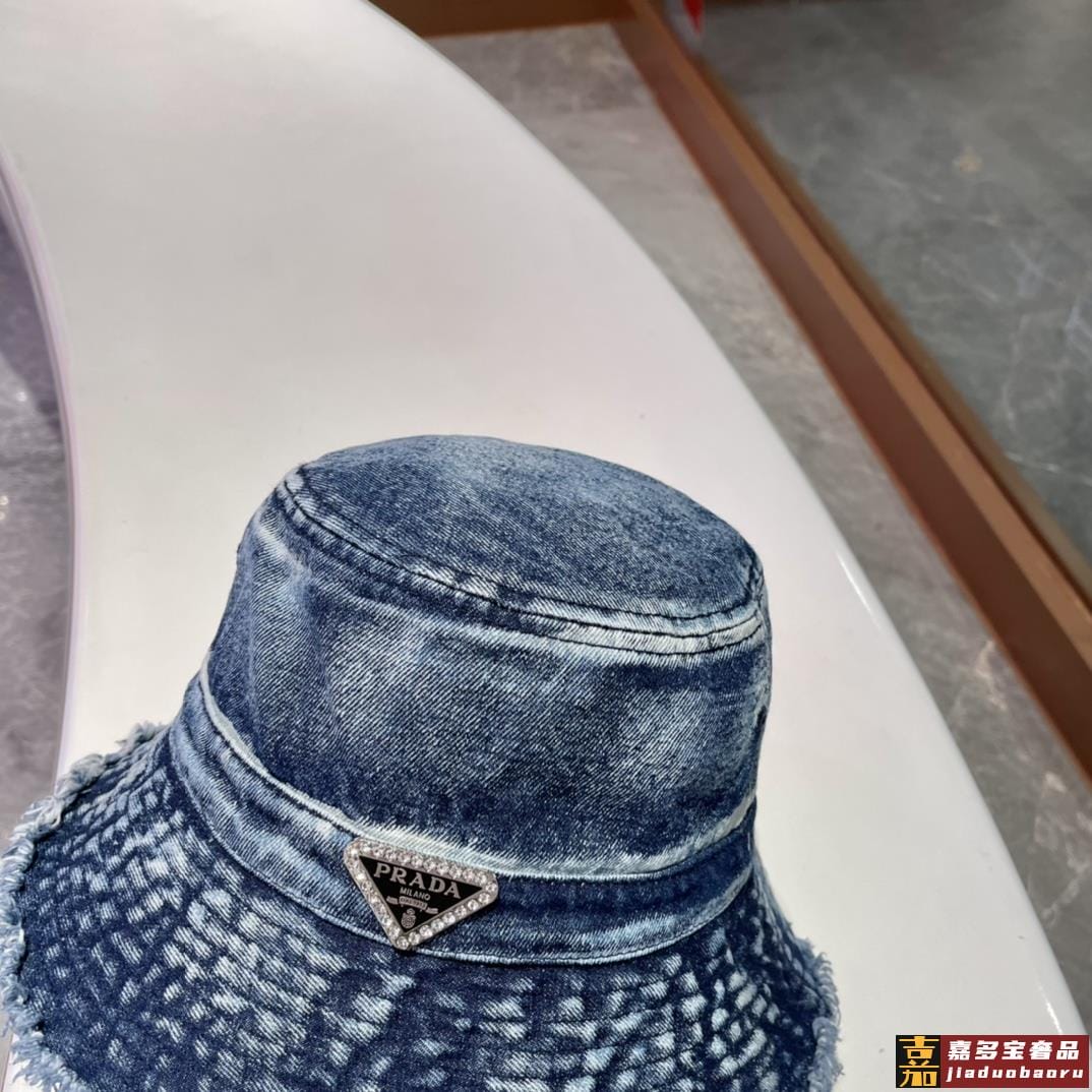普拉达日韩潮牌情侣帽子韩版牛仔磨毛边渔夫帽遮阳防晒帽百搭显脸