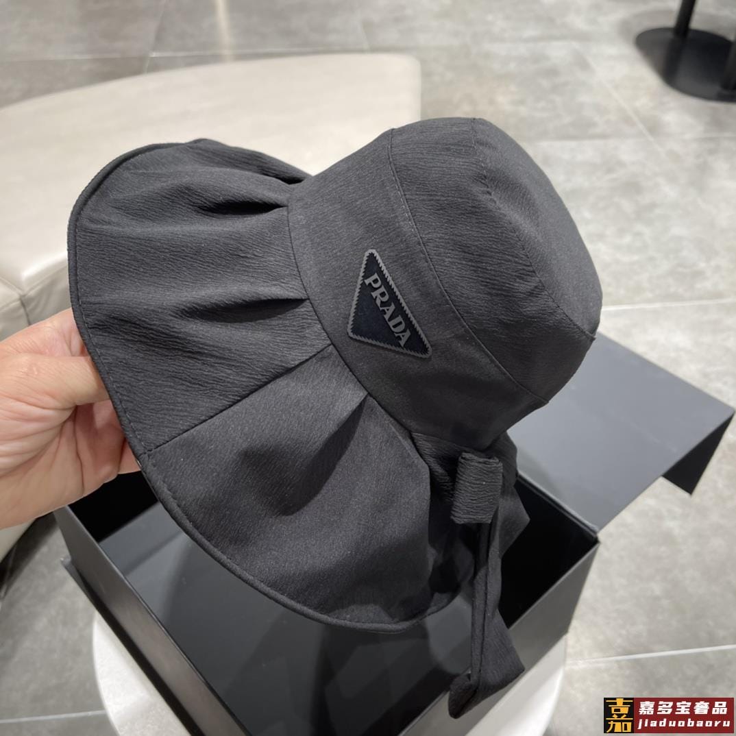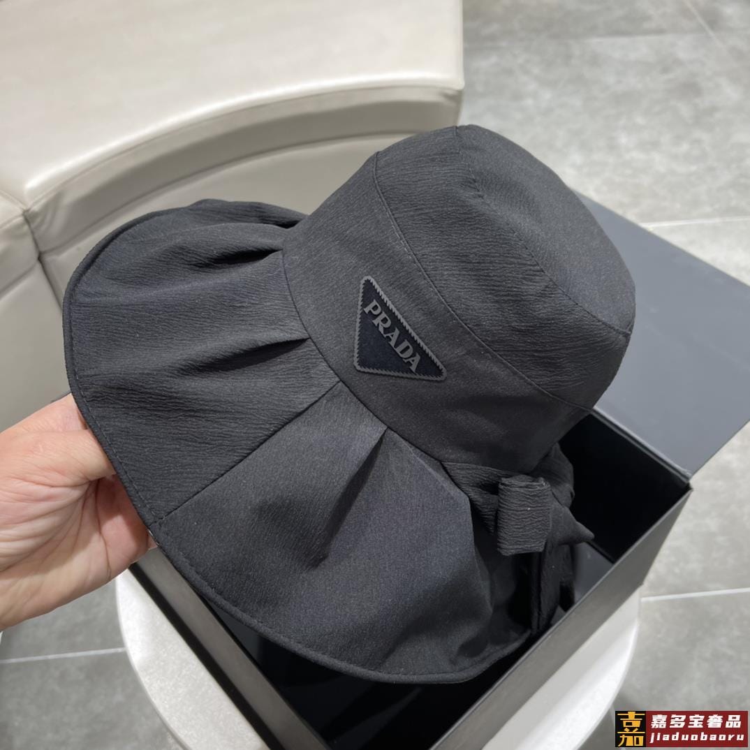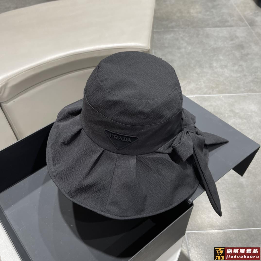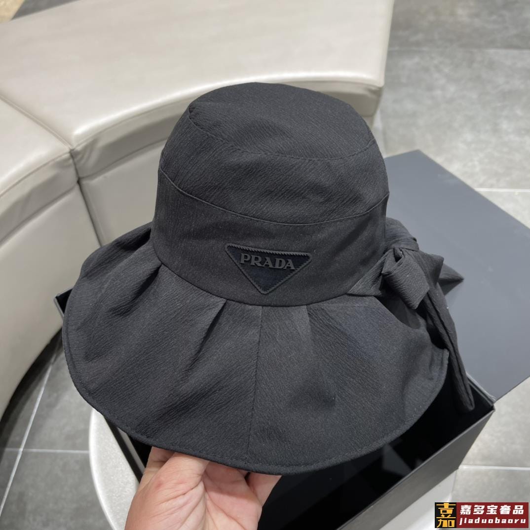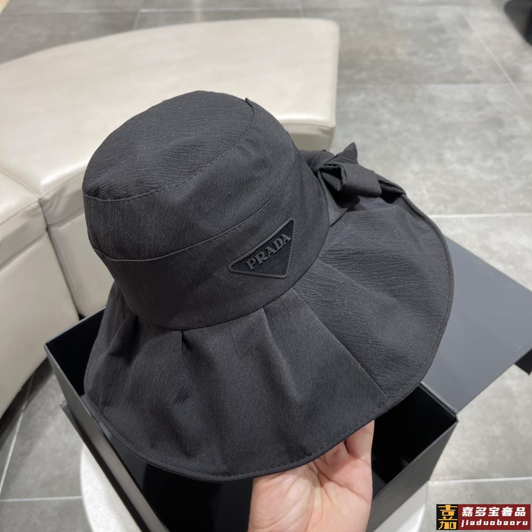普拉达早春新款韩版蝴蝶结防紫外线大帽檐渔夫帽全新立体精致无暇