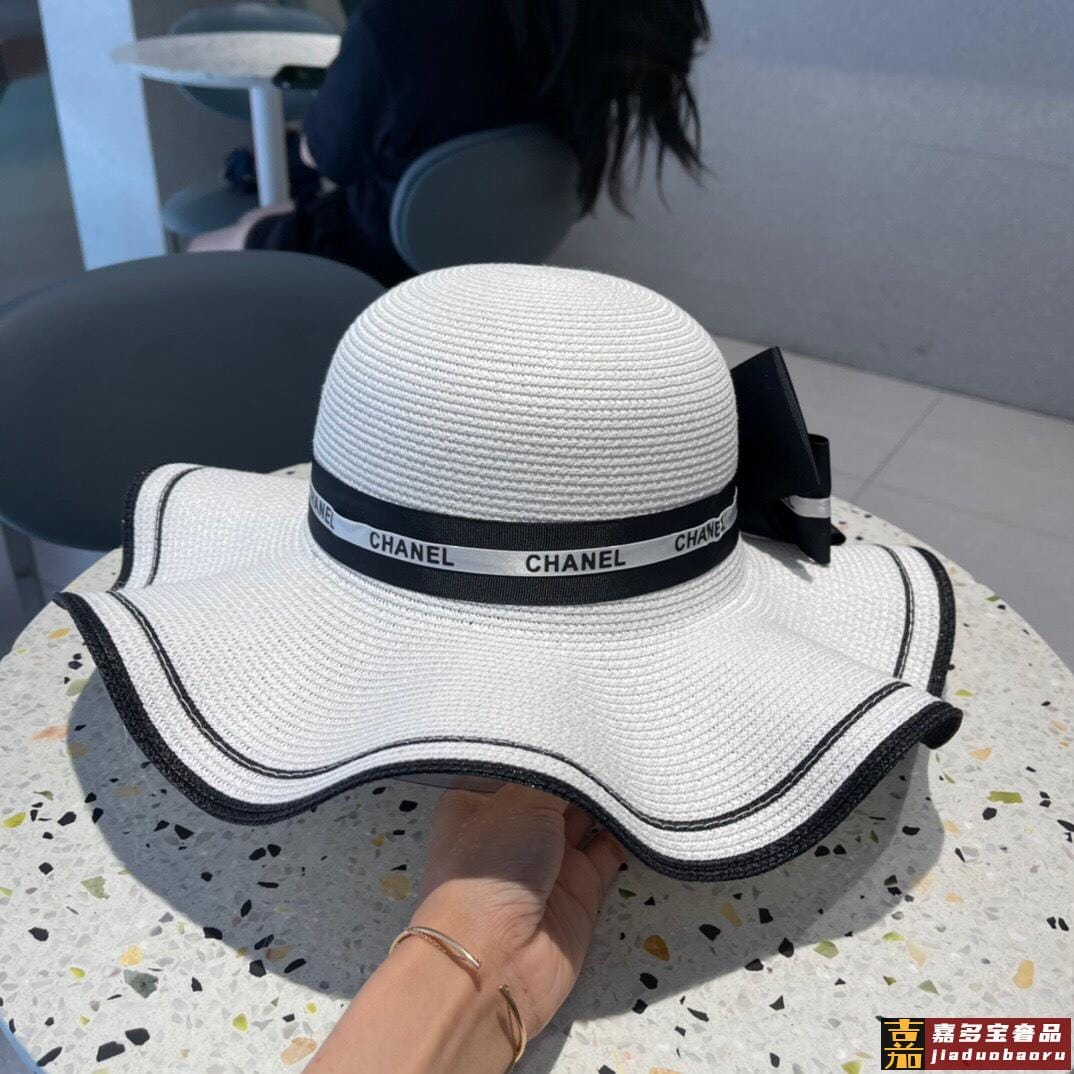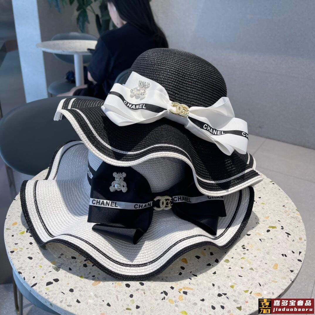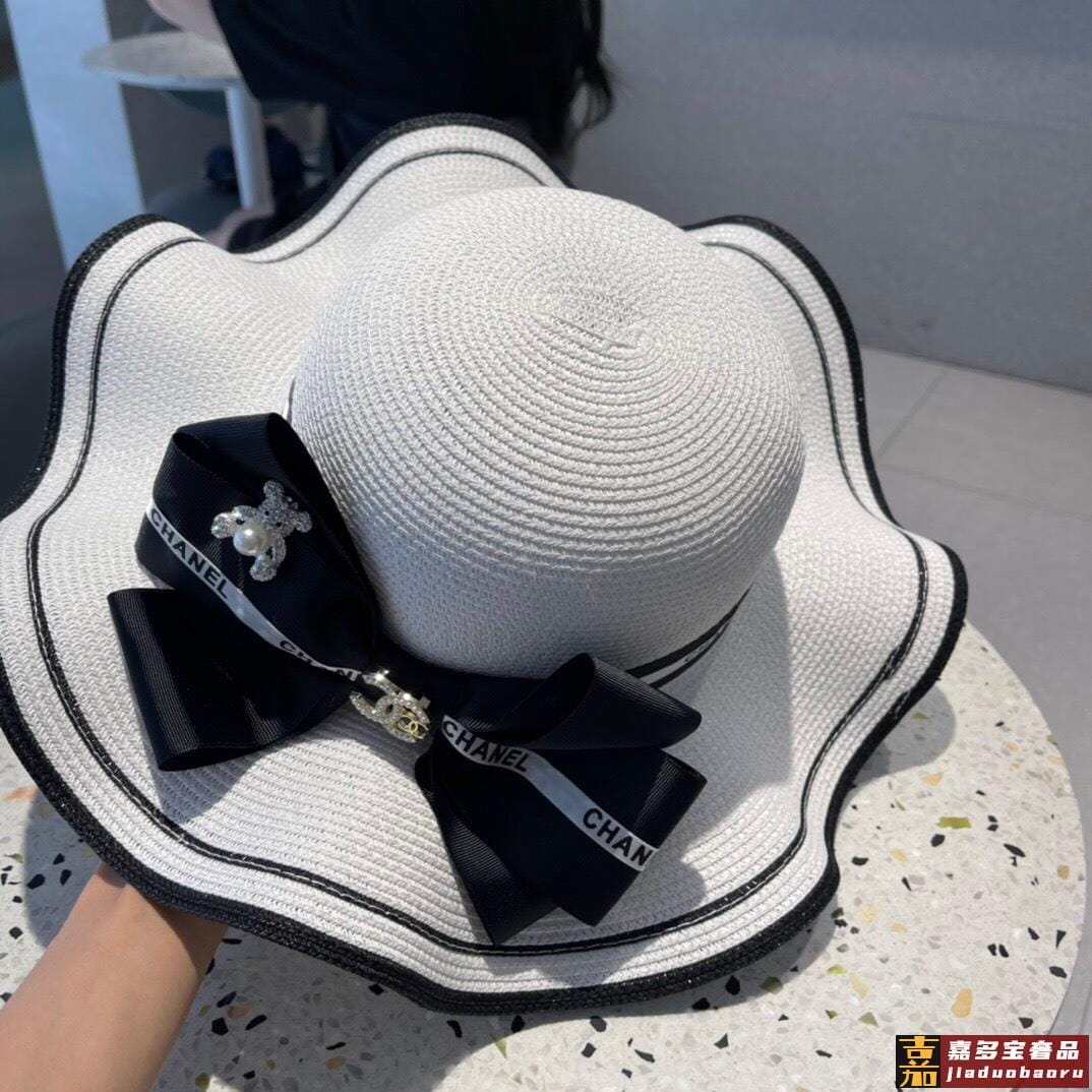 香奈儿小香风荷叶边草帽新款大帽檐草帽波浪大帽沿出游必备
