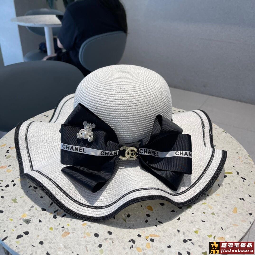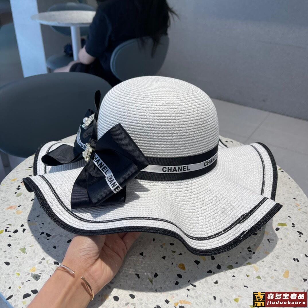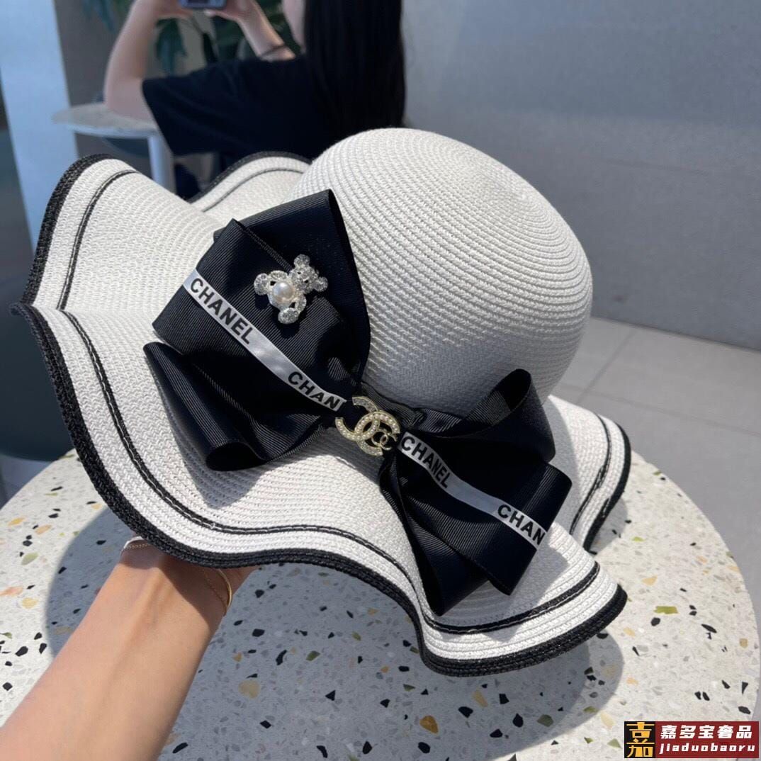 香奈儿小香风荷叶边草帽新款大帽檐草帽波浪大帽沿出游必备