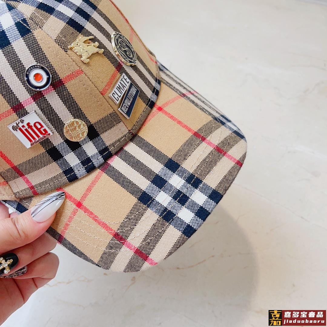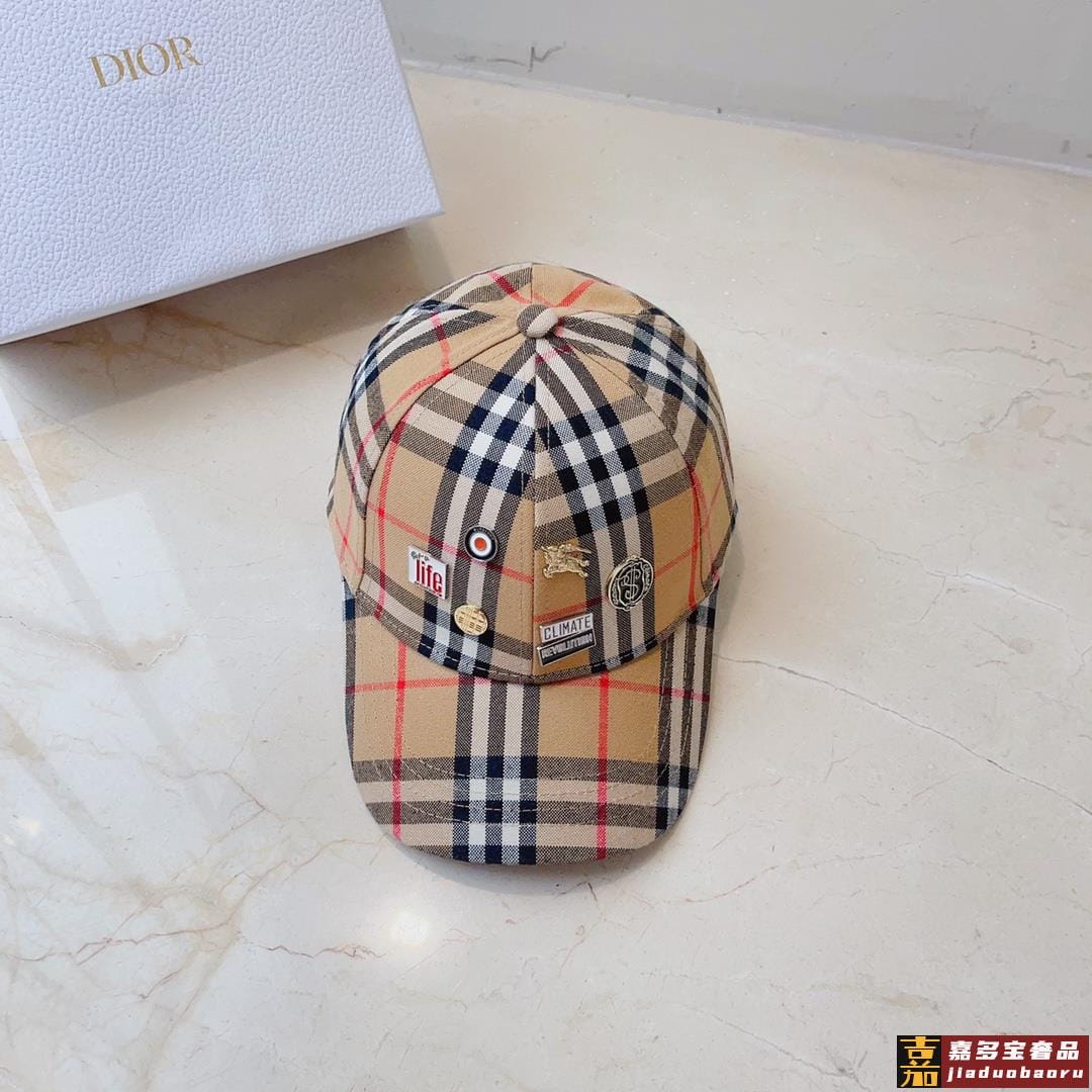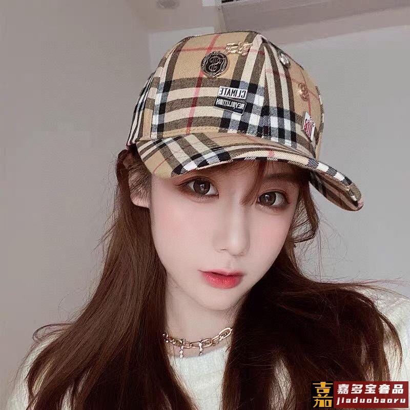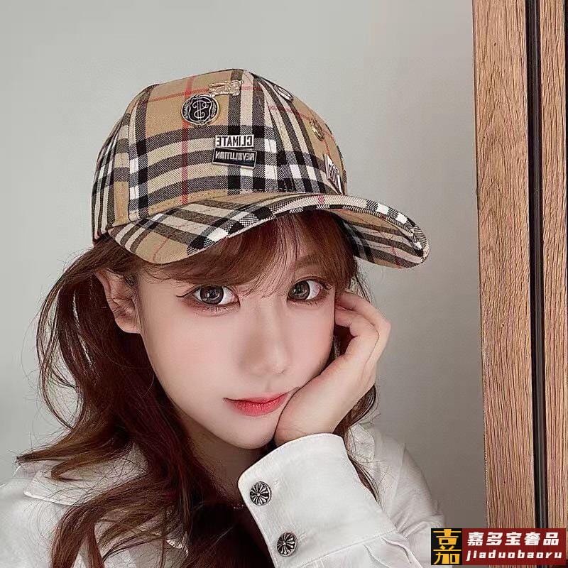 巴莉春夏新款格子纯棉棒球帽时尚尖货个性标志徽章男女佩戴都时尚