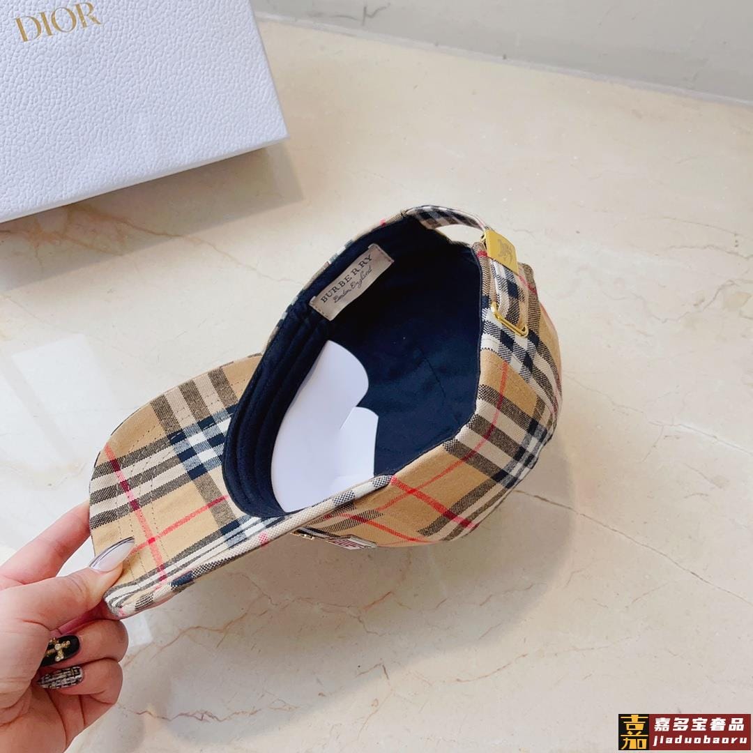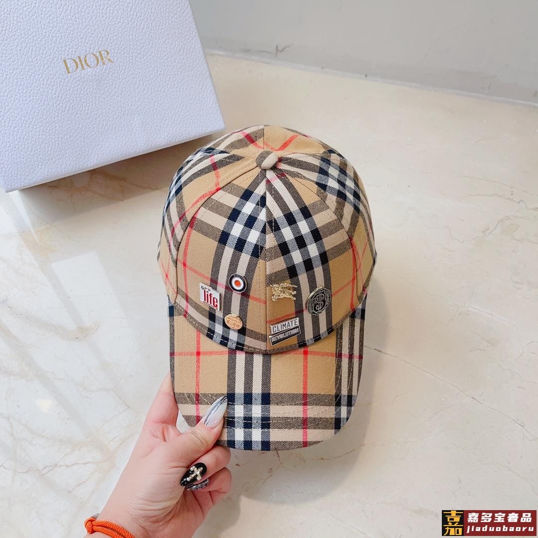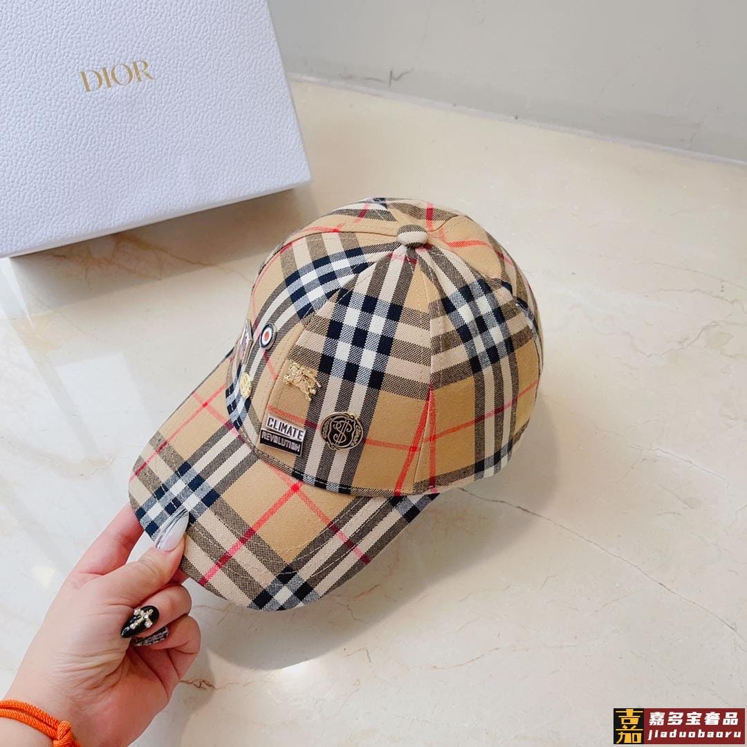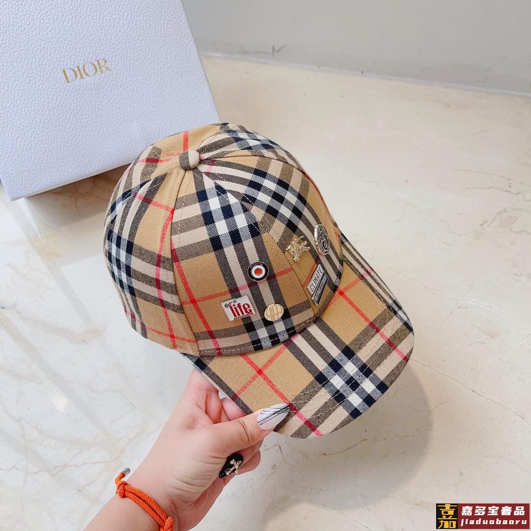 巴莉春夏新款格子纯棉棒球帽时尚尖货个性标志徽章男女佩戴都时尚