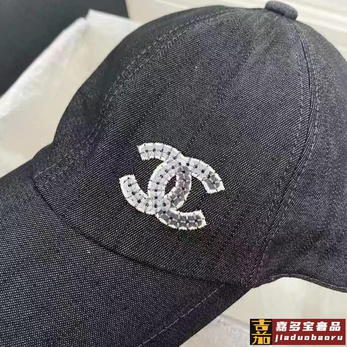 特批黑色香奈儿新款珠片刺绣牛仔布棒球帽今年专柜最新最火的一款立体百搭的帽型任何头型都能驾驭的了巨显脸小原版定做面料材质都是定制回来的黑色是牛仔深灰黑织布白色是纯棉斜纹磨毛布洗水麦手工车订原版开模五金扣子里面和外包装全部同步码数均码头围