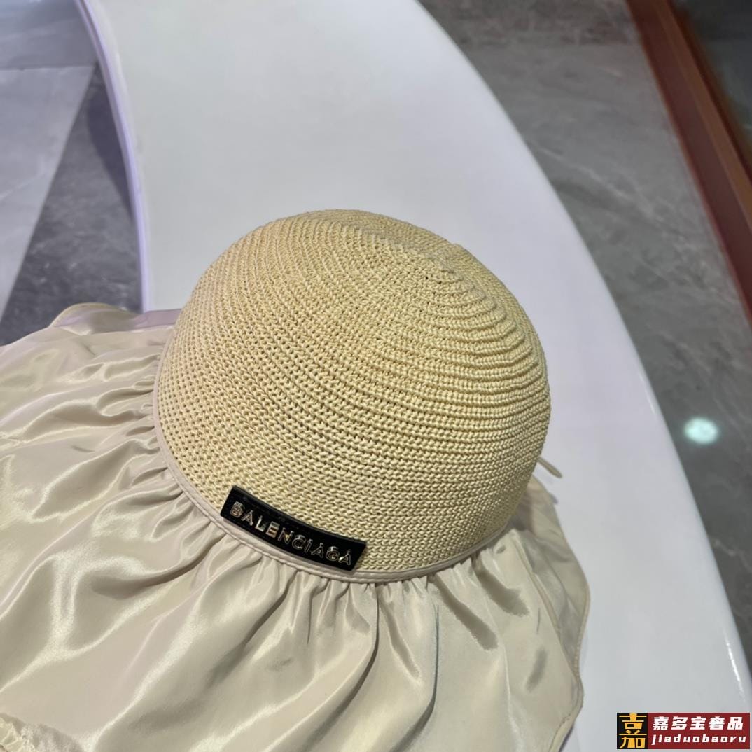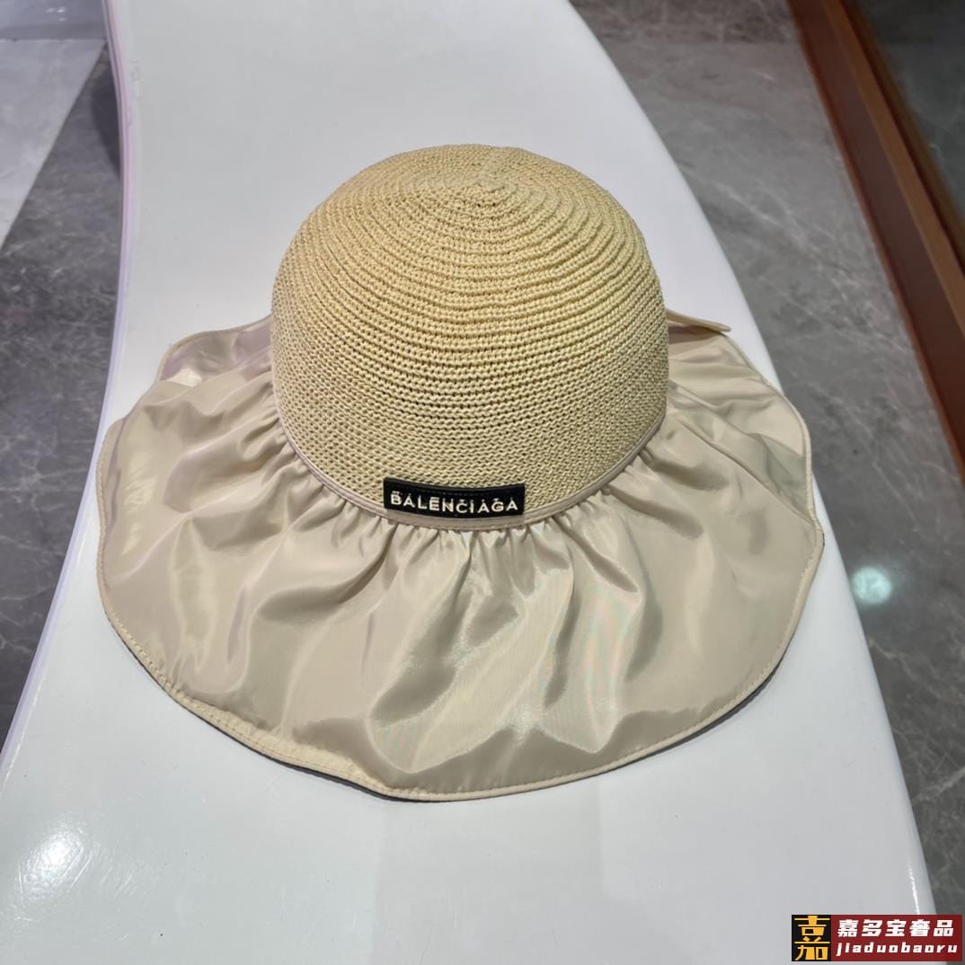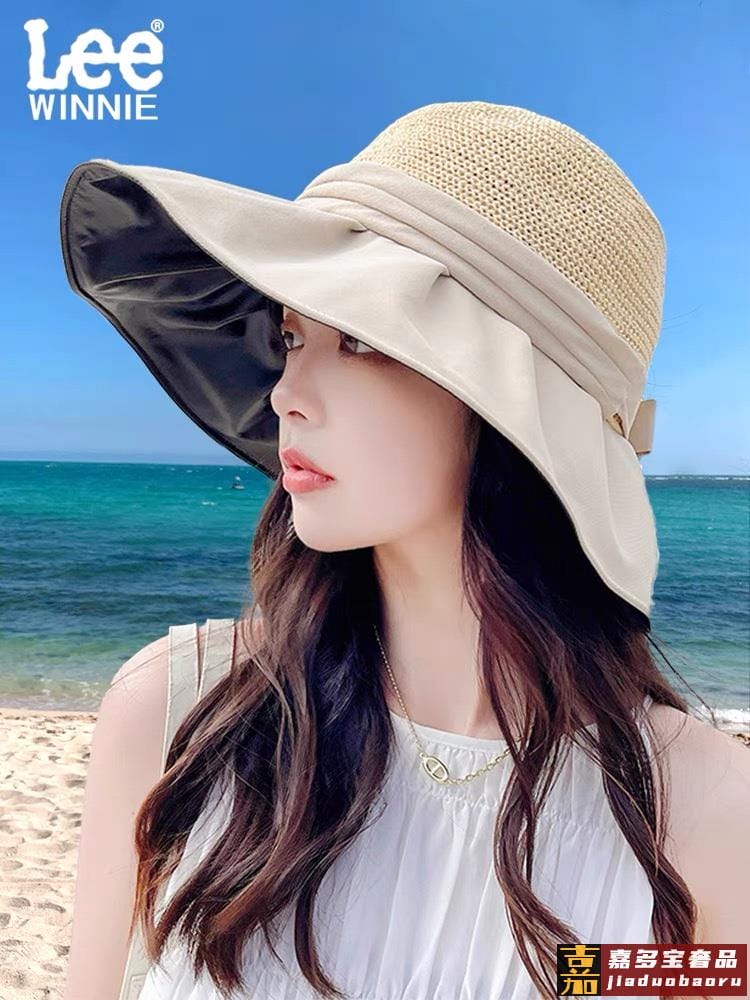 巴黎世家黑胶沙滩帽遮阳帽女夏季镂空草帽蝴蝶结大檐遮脸防晒太阳