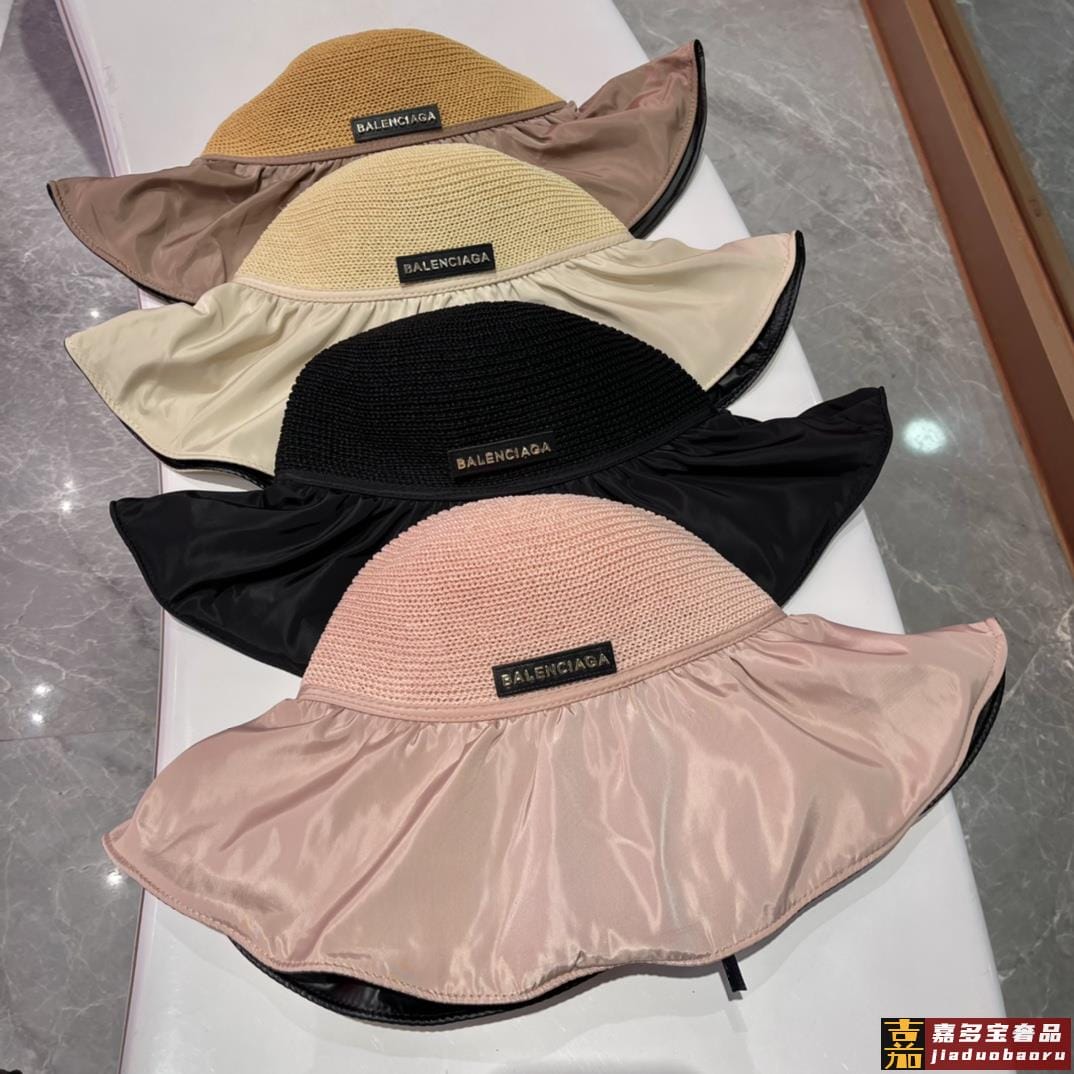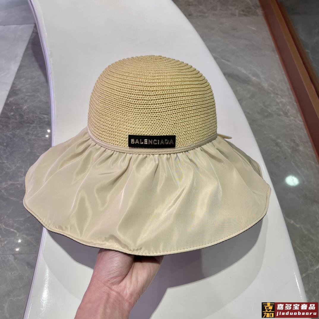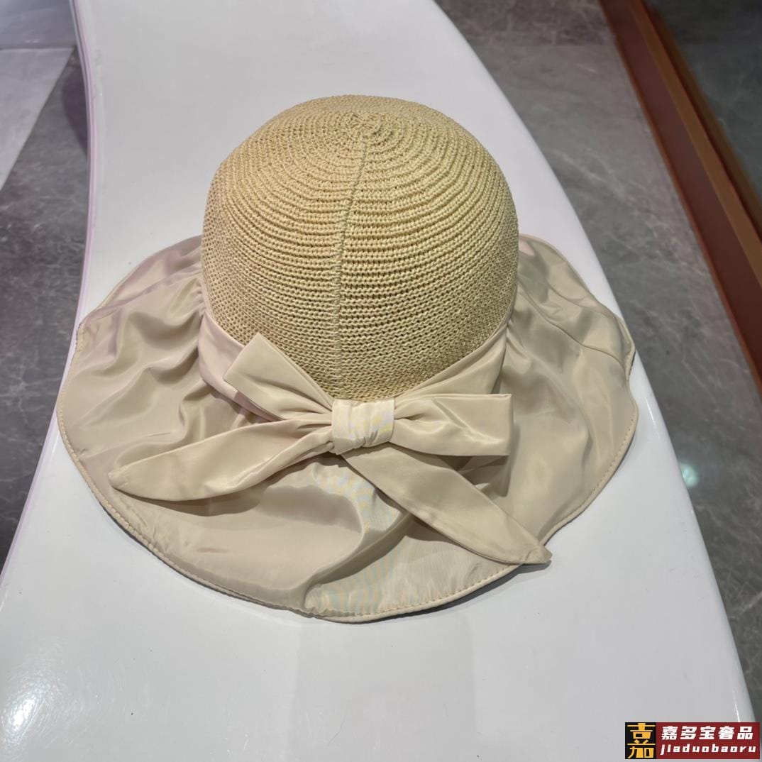 巴黎世家黑胶沙滩帽遮阳帽女夏季镂空草帽蝴蝶结大檐遮脸防晒太阳