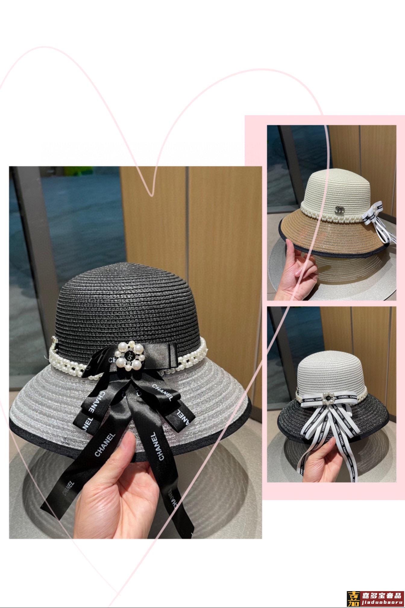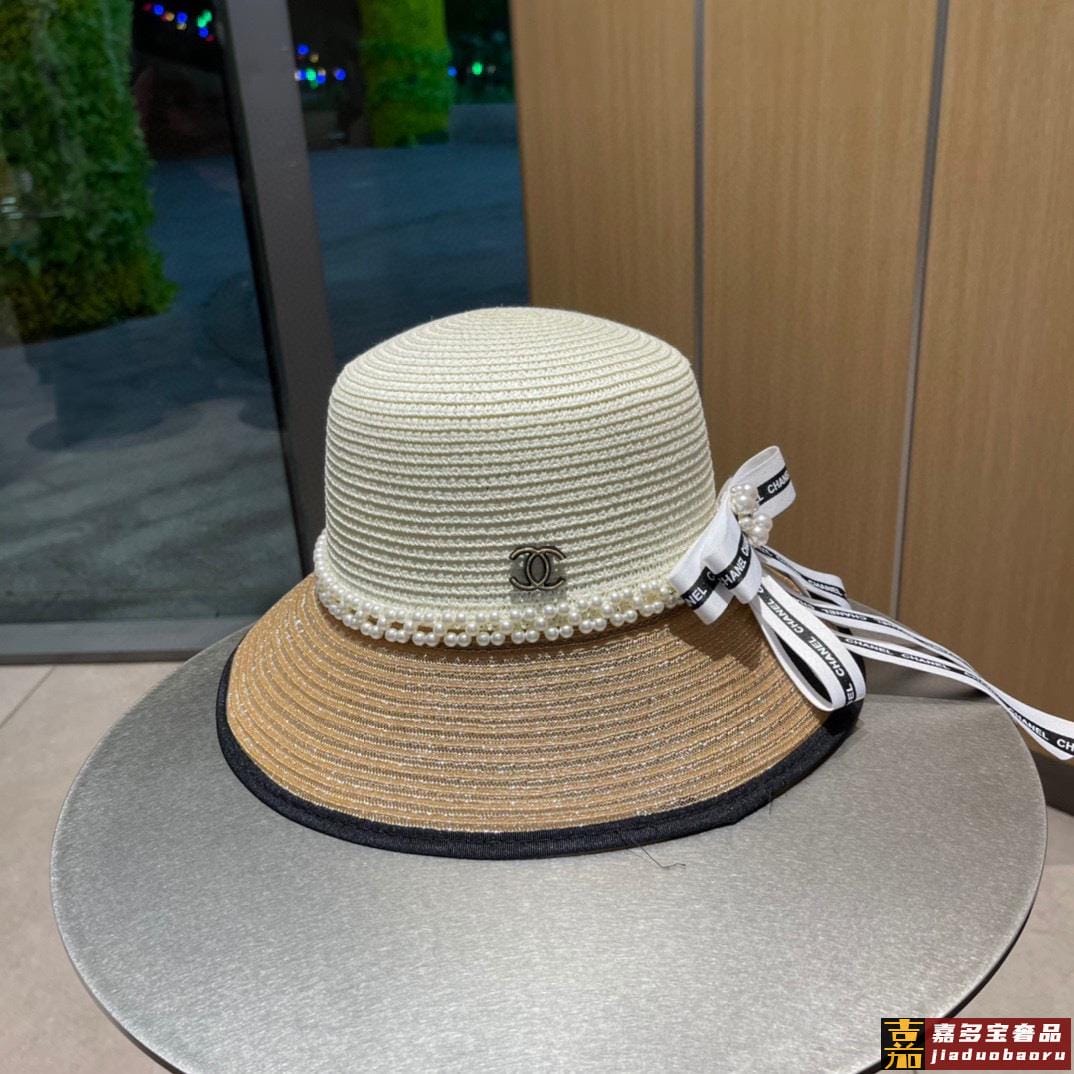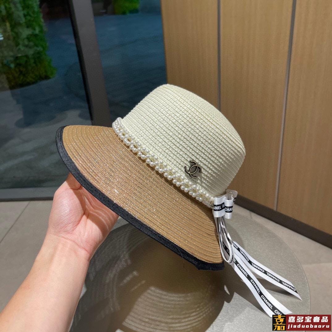 香奈儿早春新品蝴蝶结气质休闲草编草帽配珍珠夏日遮阳独家百搭风