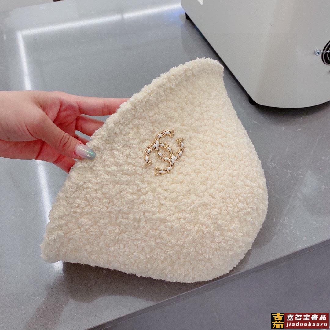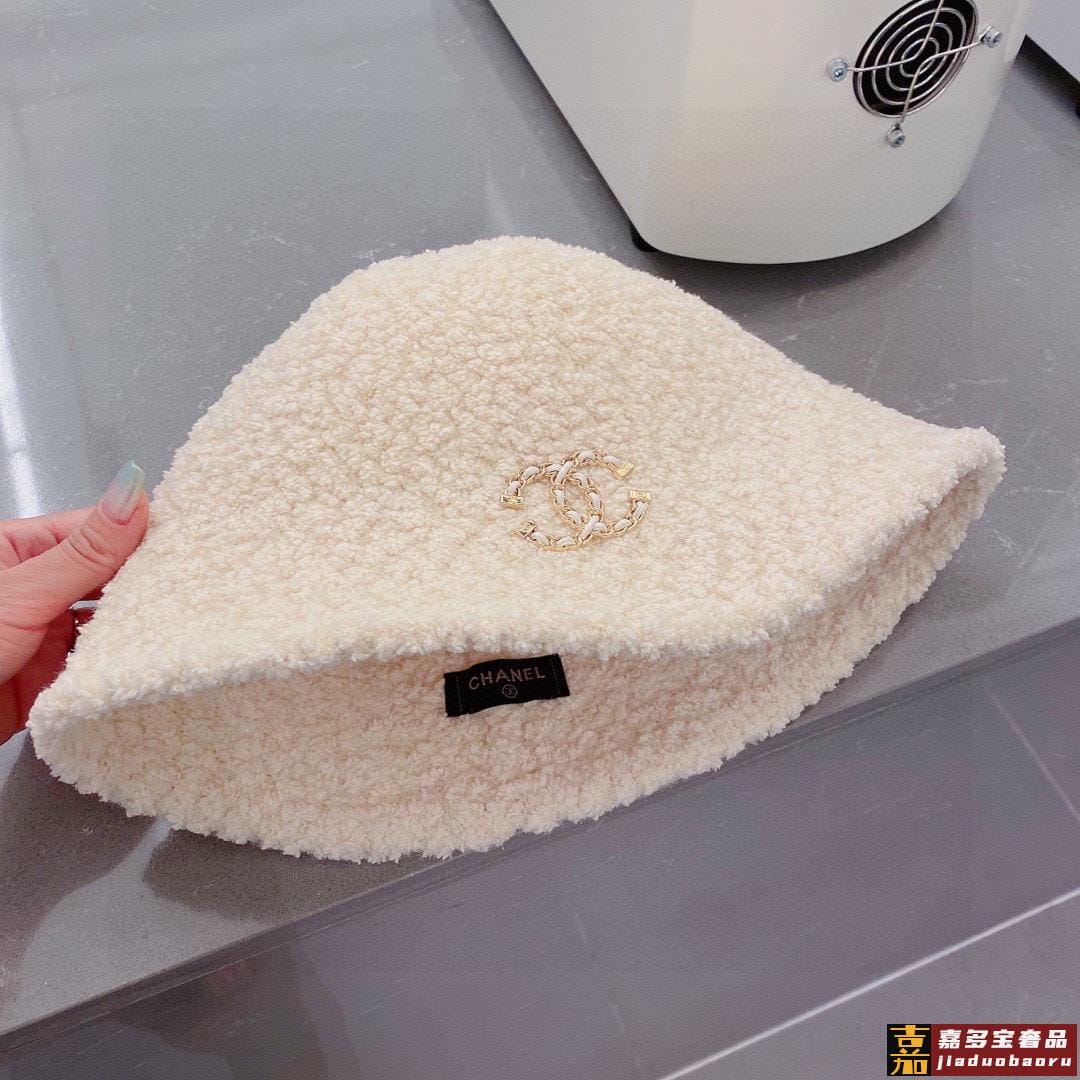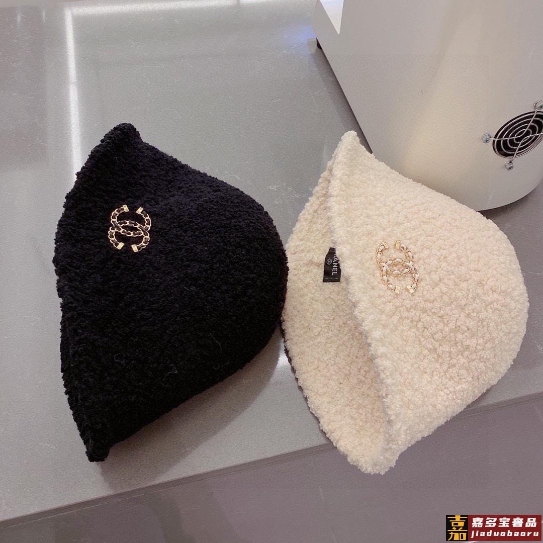 香奈儿羊羔毛渔夫帽手抓小礼帽秋冬百搭款黑米两色