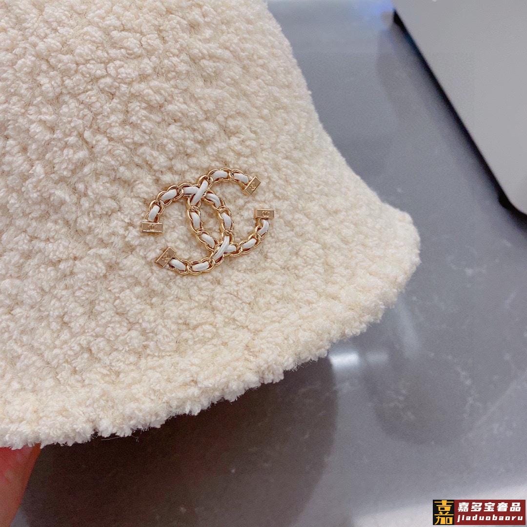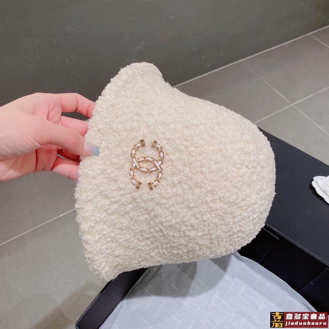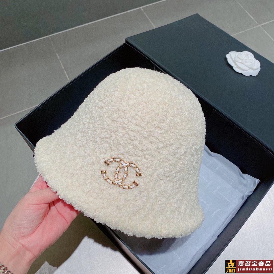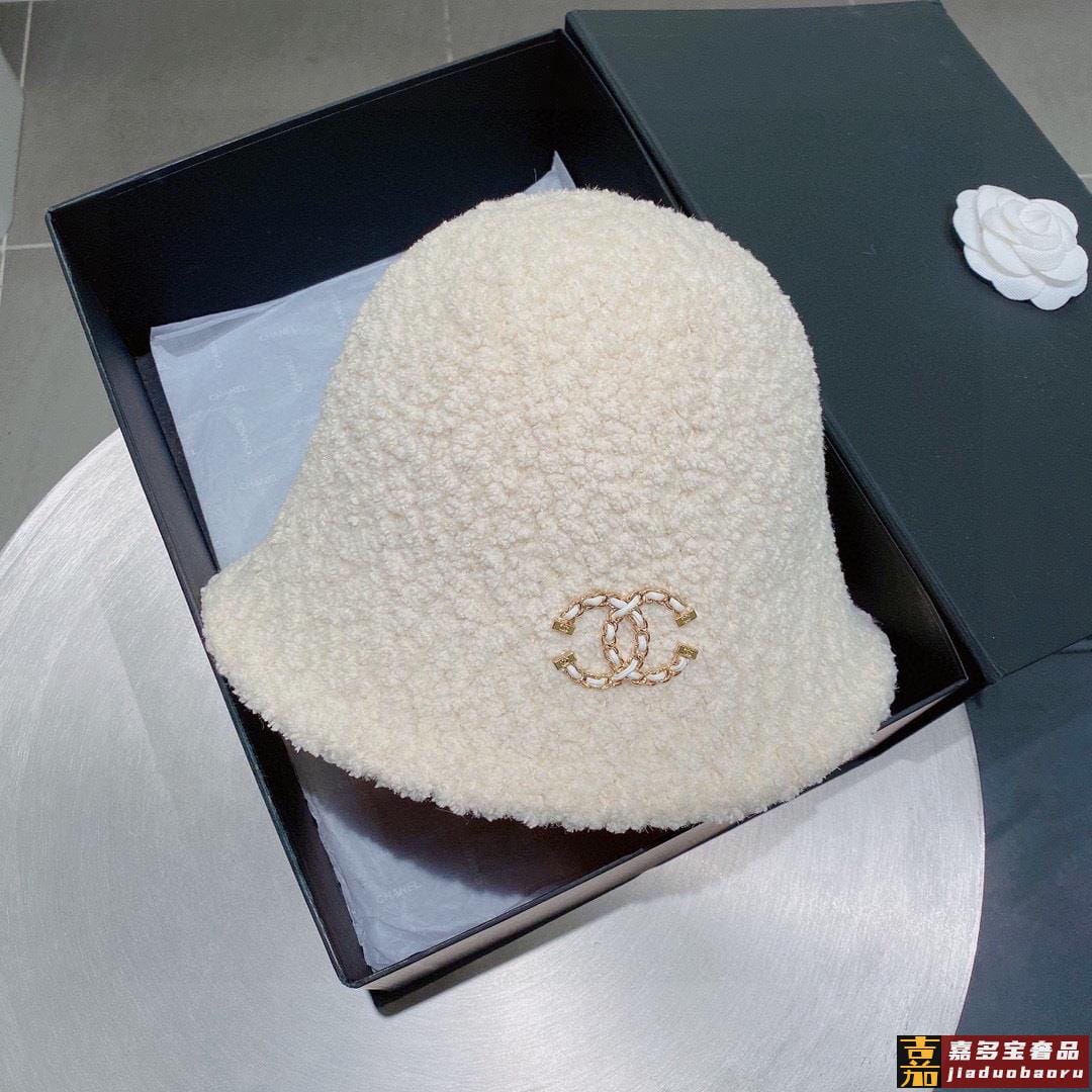 香奈儿羊羔毛渔夫帽手抓小礼帽秋冬百搭款黑米两色
