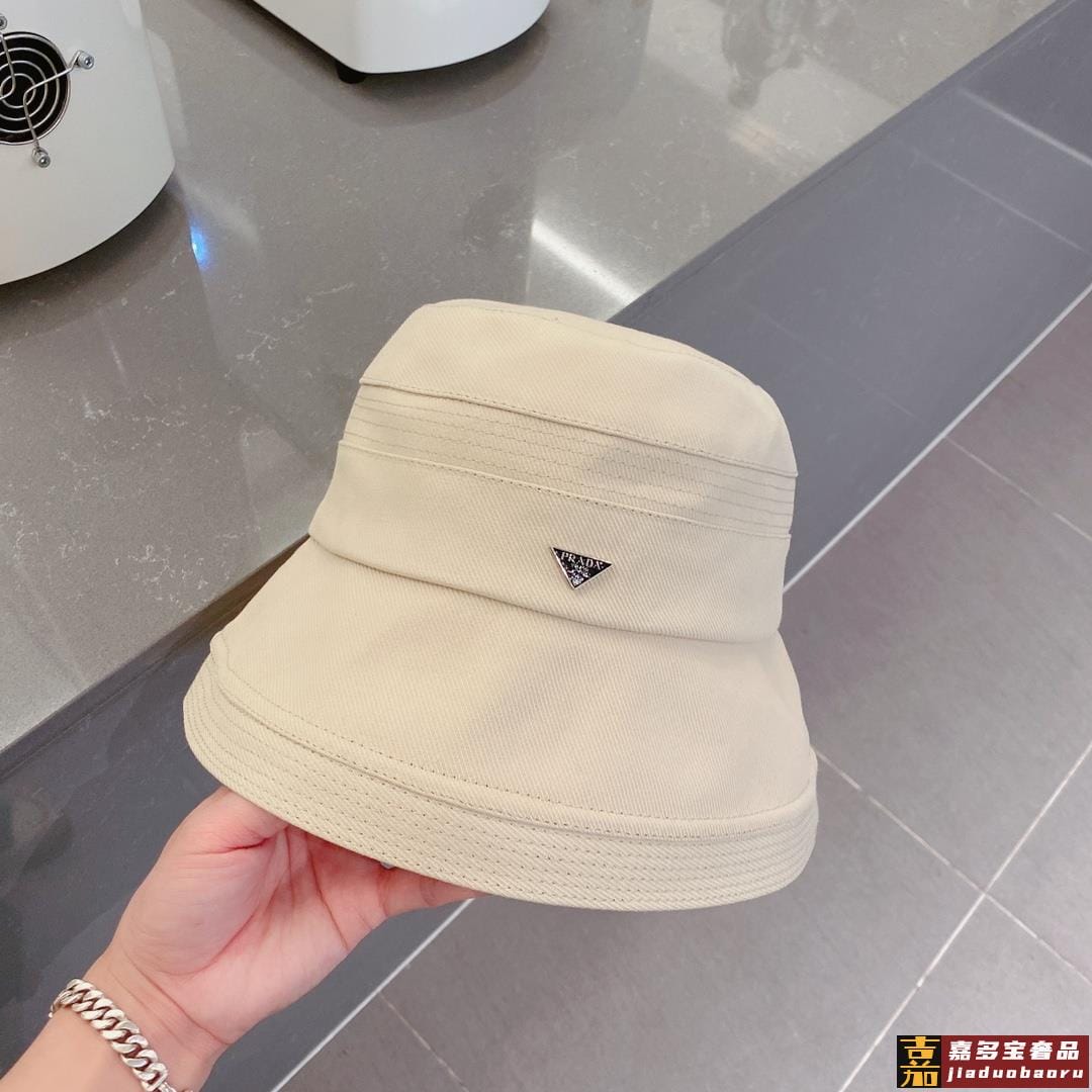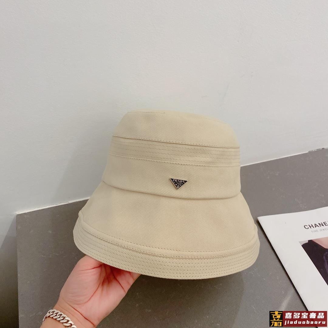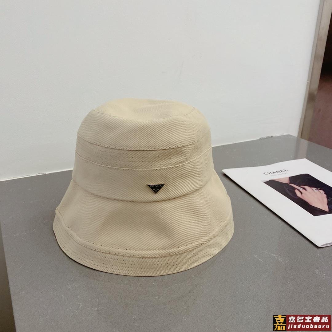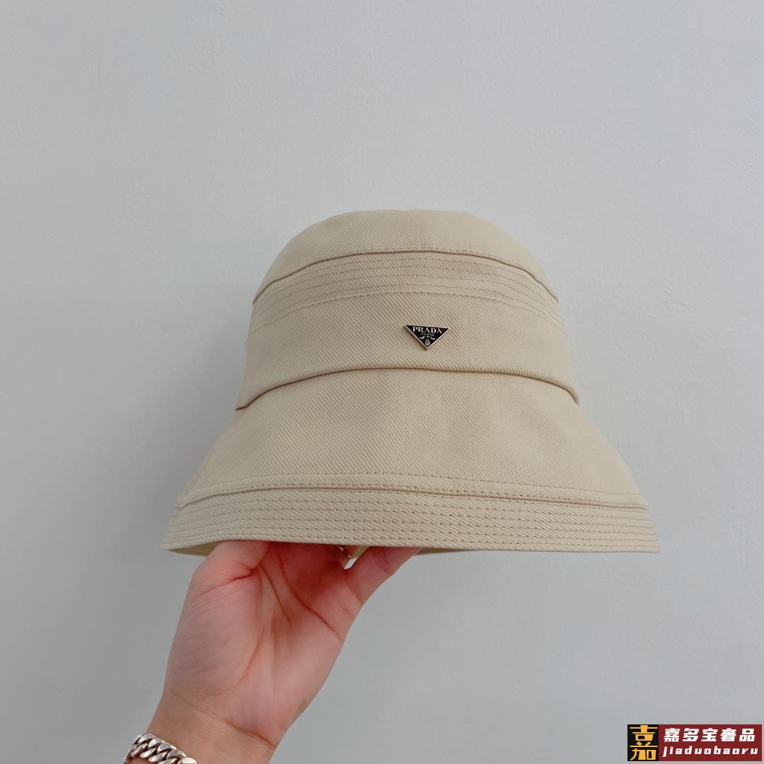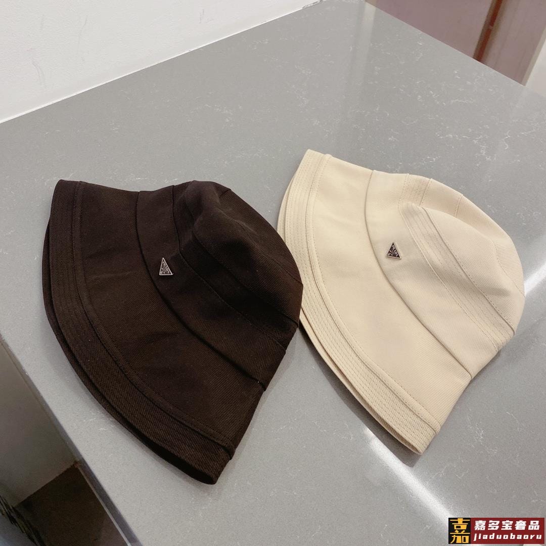 跑量普拉达帆布渔夫帽手抓帽遮阳帽黑米两色头围