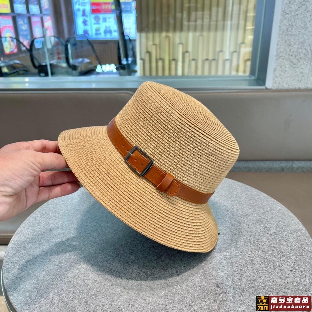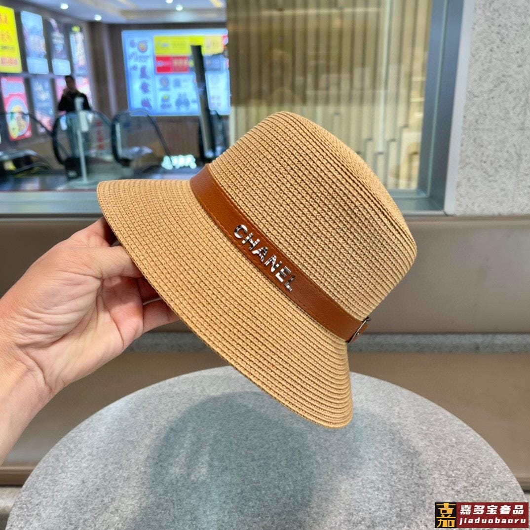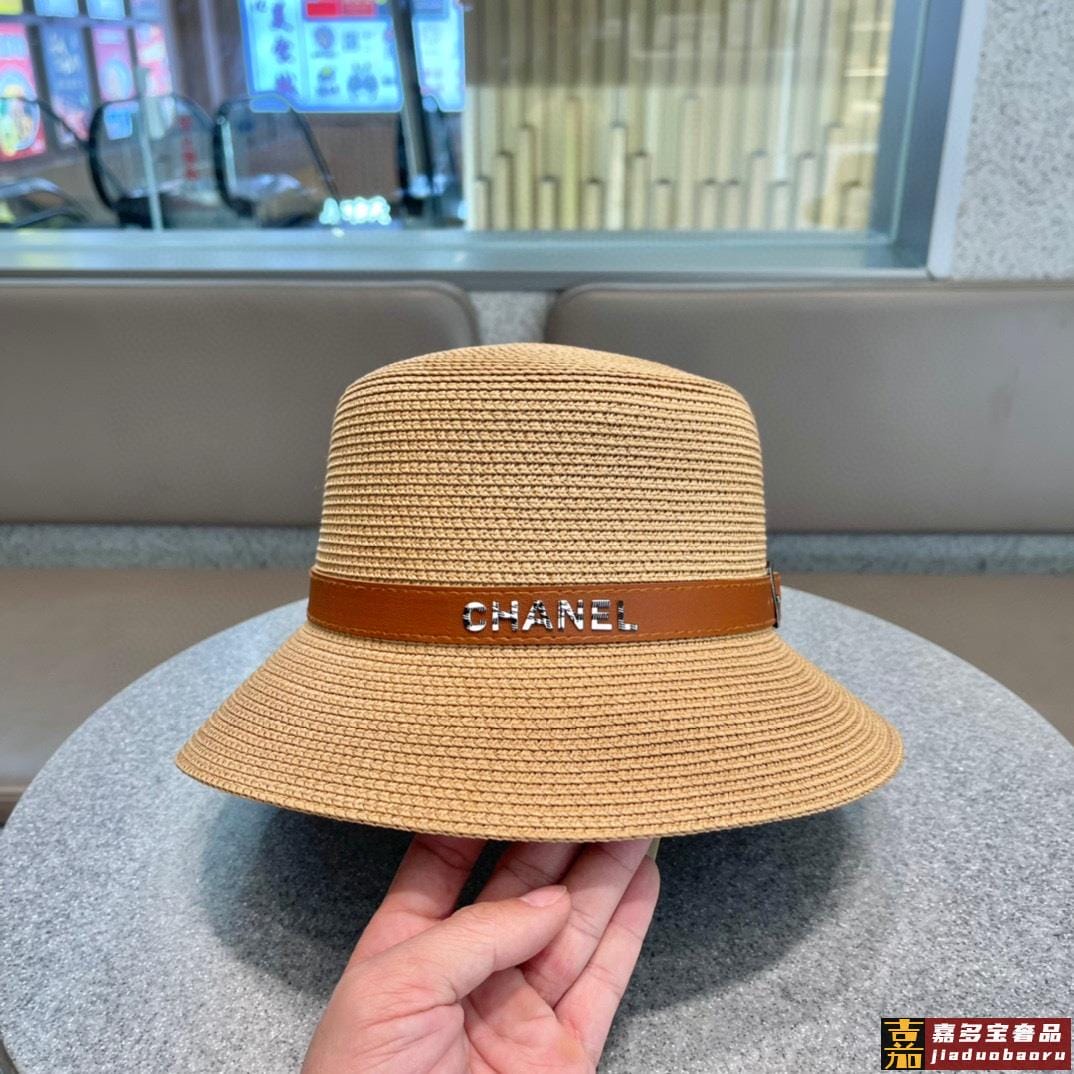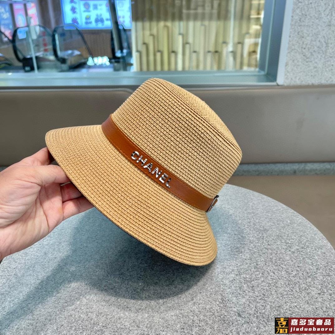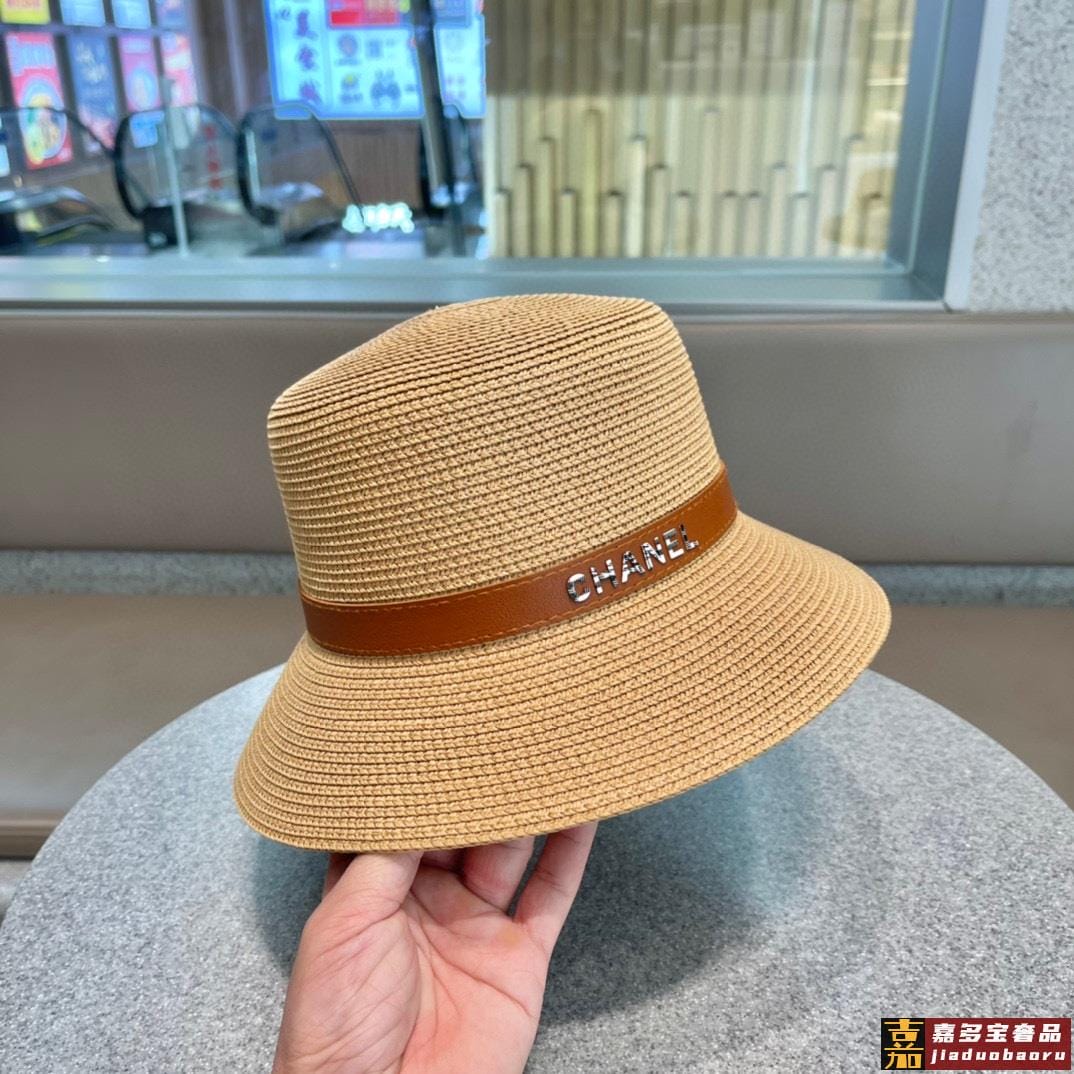 香奈儿早春新款草编皮带草帽盆帽沙滩风简约大方百搭单品出街首选