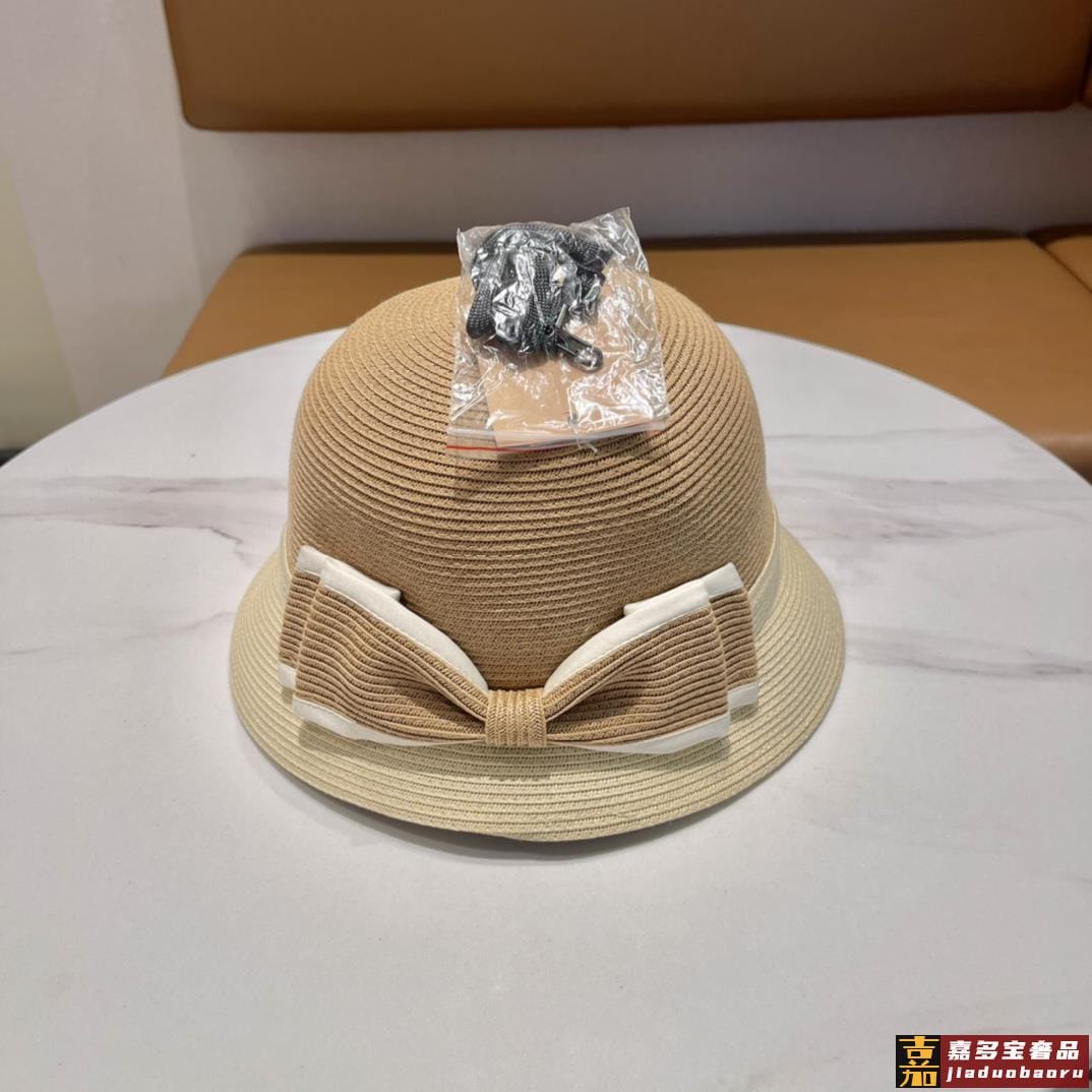 迪奥细草日系蝴蝶结撞色渔夫帽夏季出游防晒遮阳帽韩版时尚文雅淑女