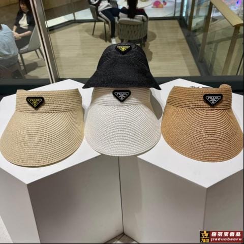 普拉达春夏新款遮阳草帽帽空顶遮阳帽防嗮遮阳帽可折叠头围
