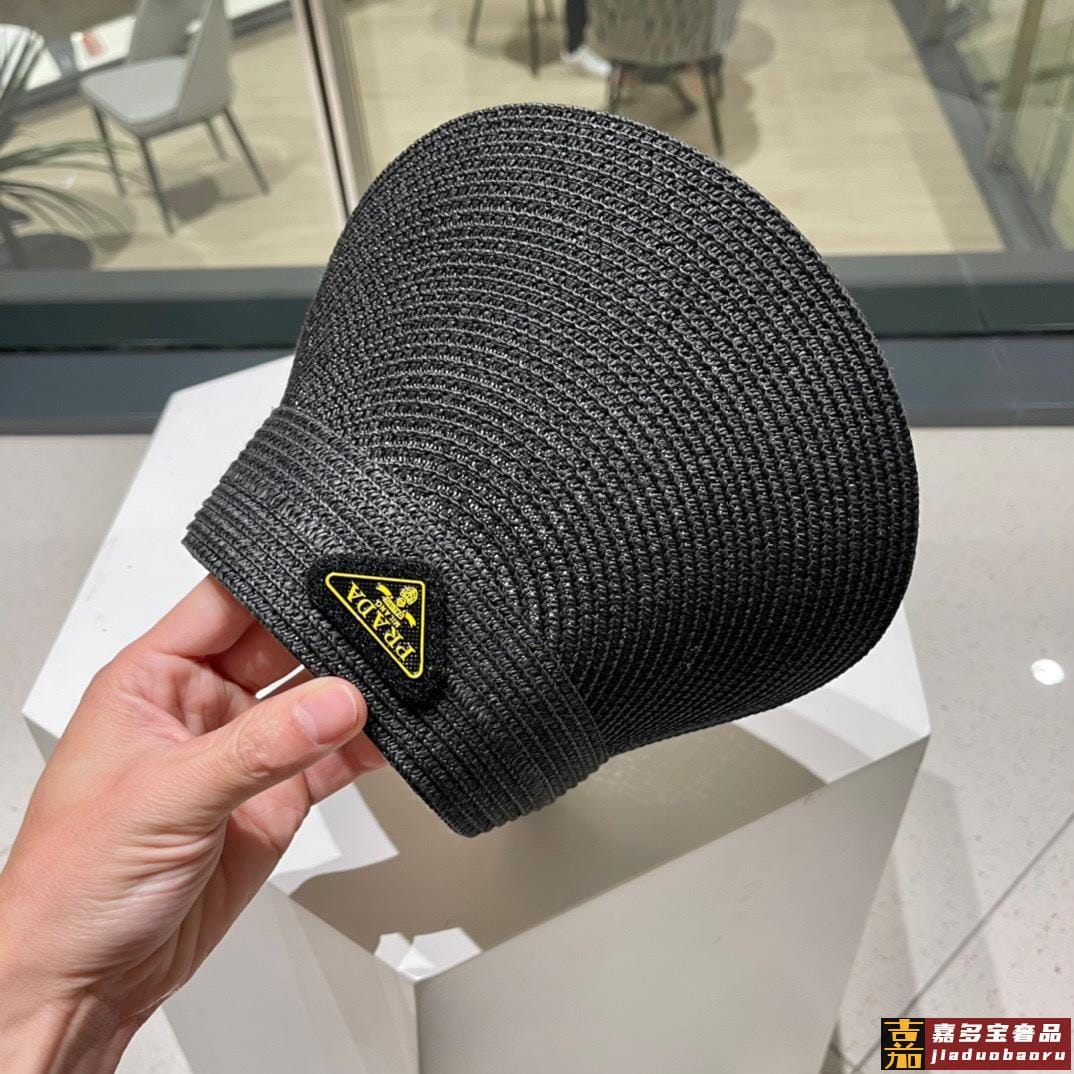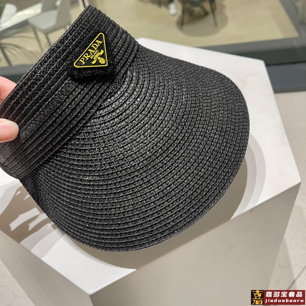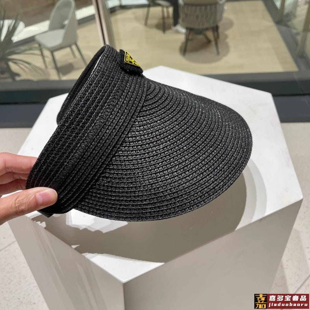 普拉达春夏新款遮阳草帽帽空顶遮阳帽防嗮遮阳帽可折叠头围