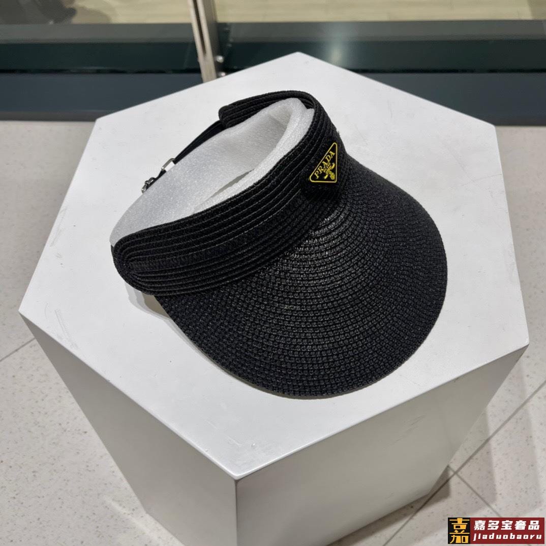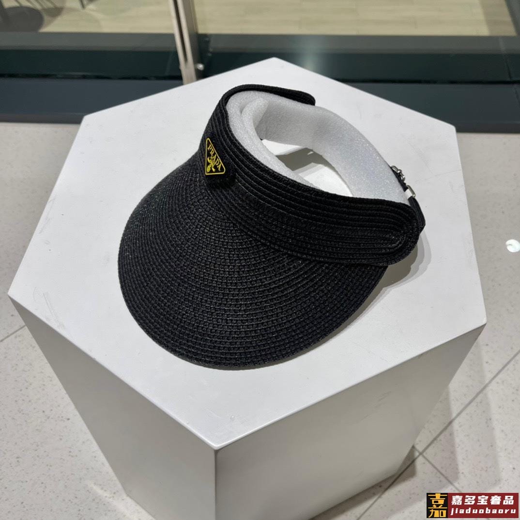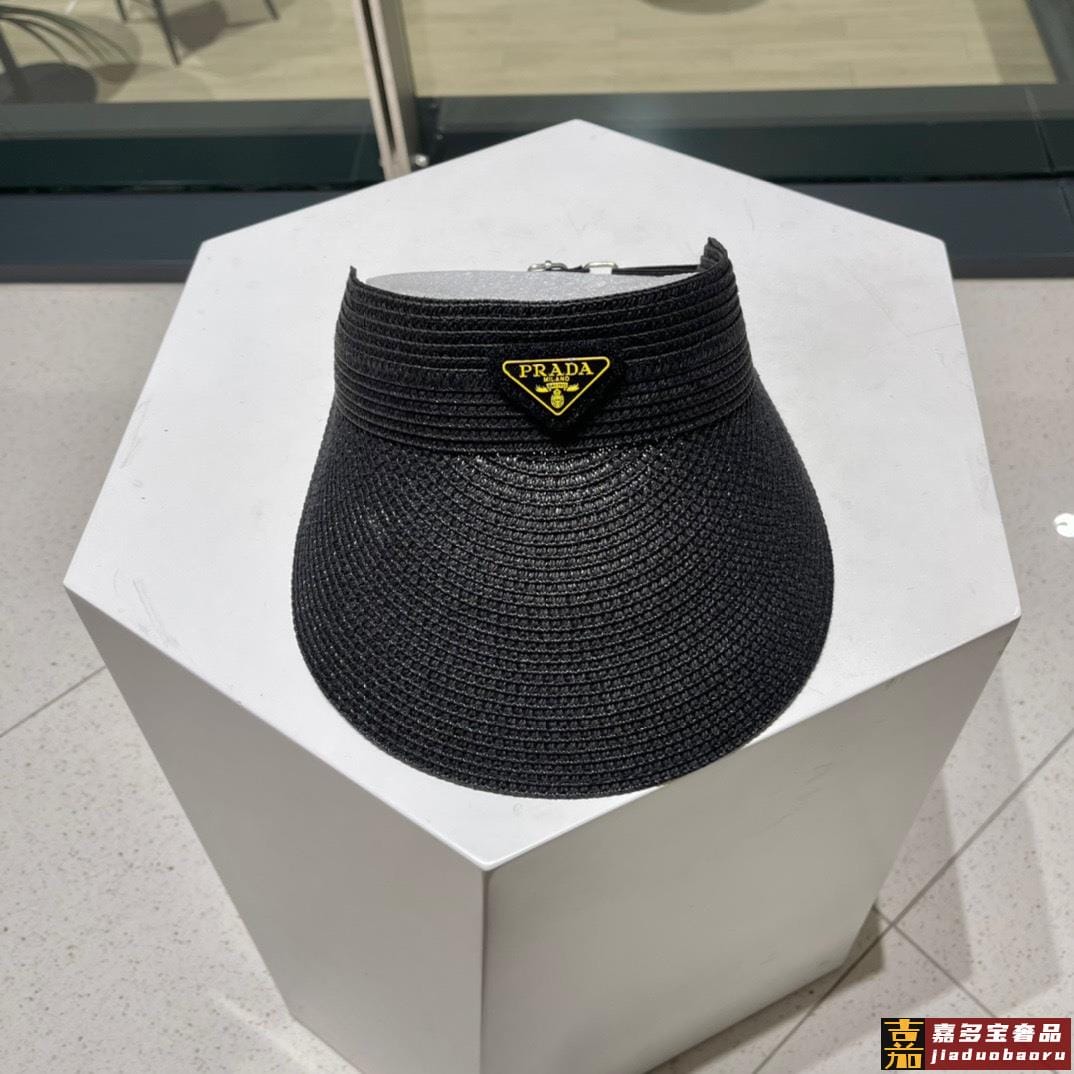普拉达春夏新款遮阳草帽帽空顶遮阳帽防嗮遮阳帽可折叠头围