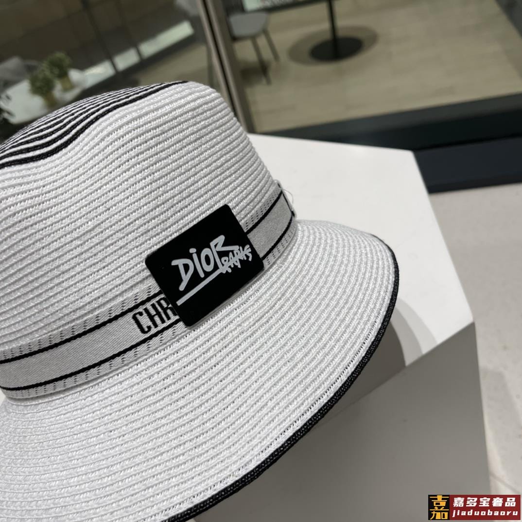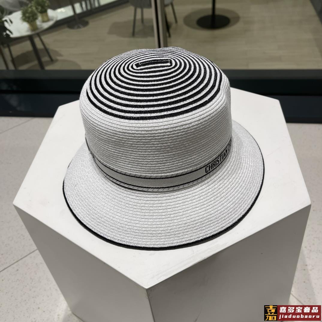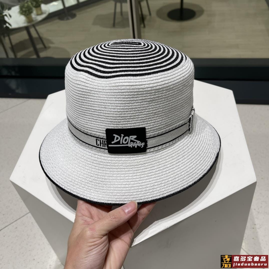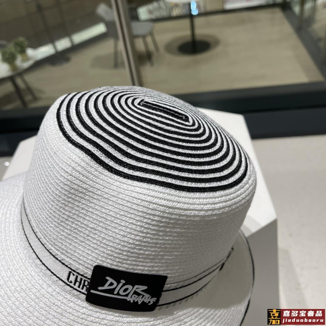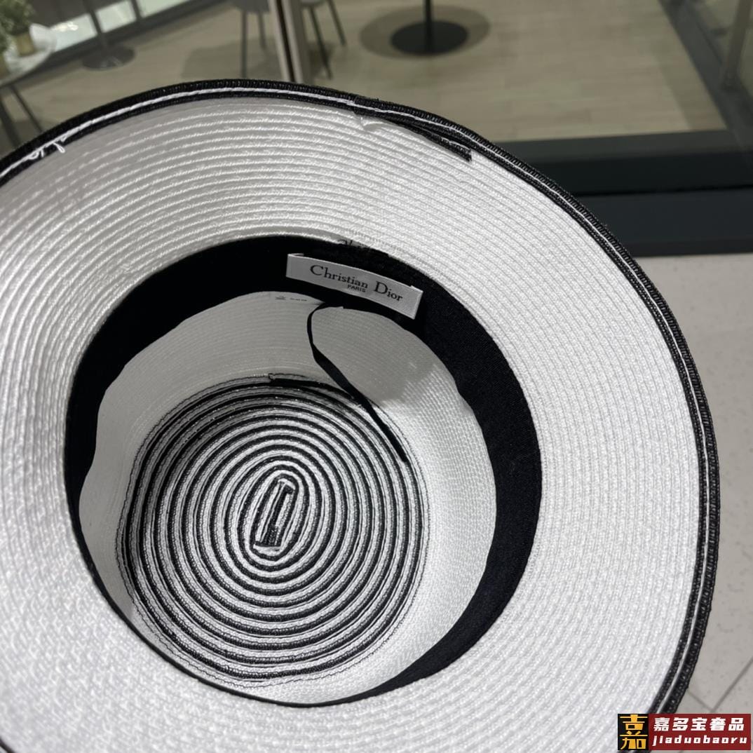 迪奥夏季新款草帽太阳帽细草制作可折叠头围