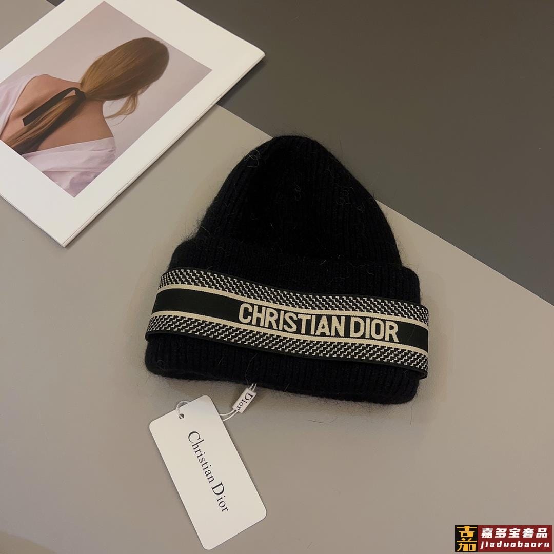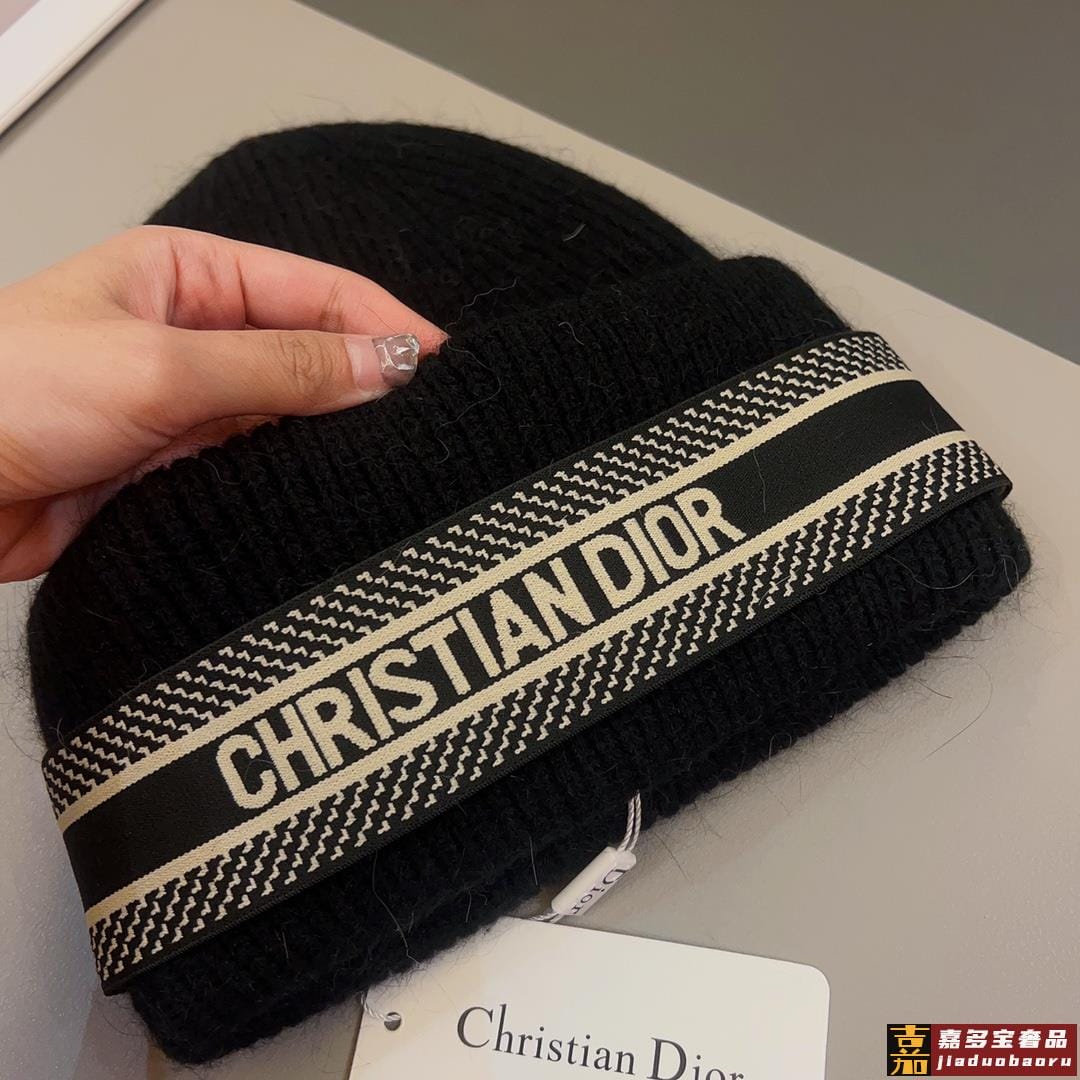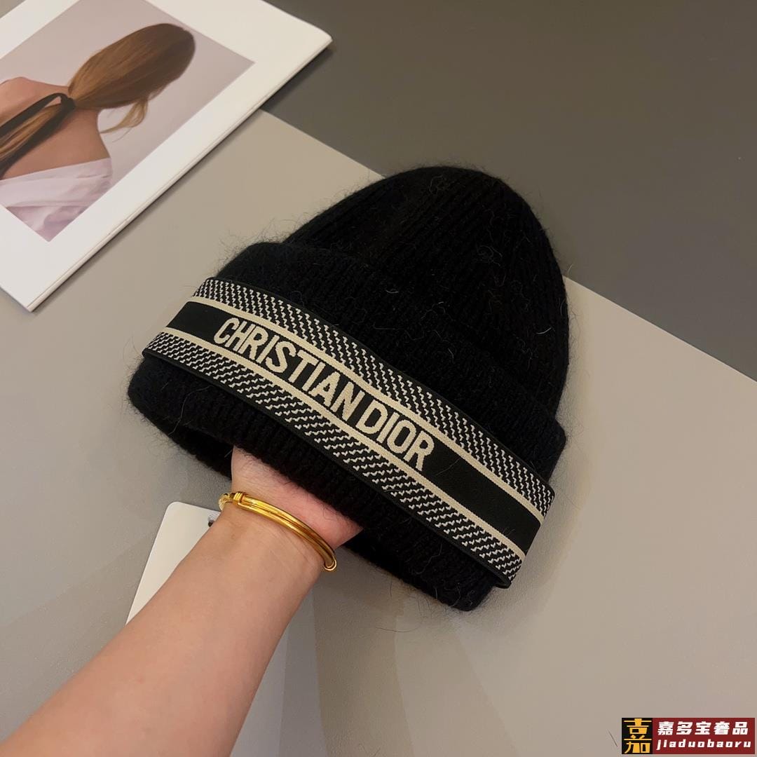 迪奥兔毛毛线帽女秋冬韩版百搭日系保暖针织帽潮牌加厚护耳冷帽子