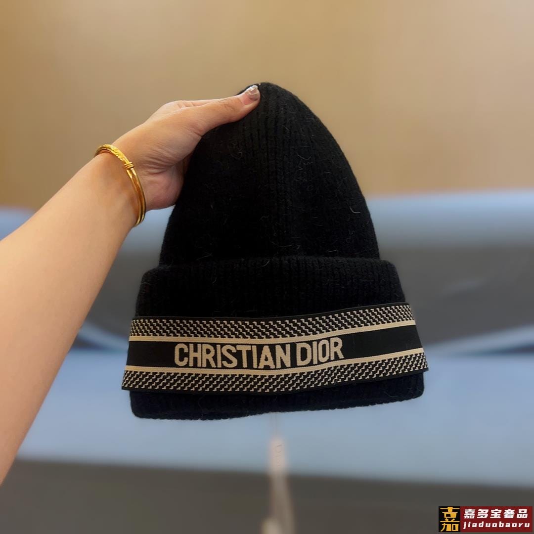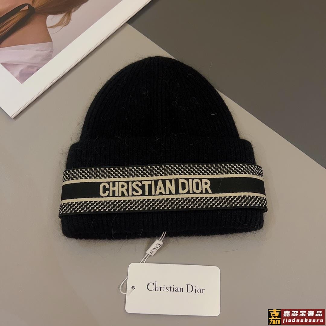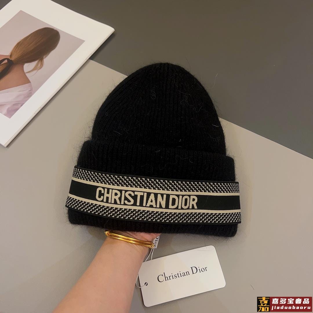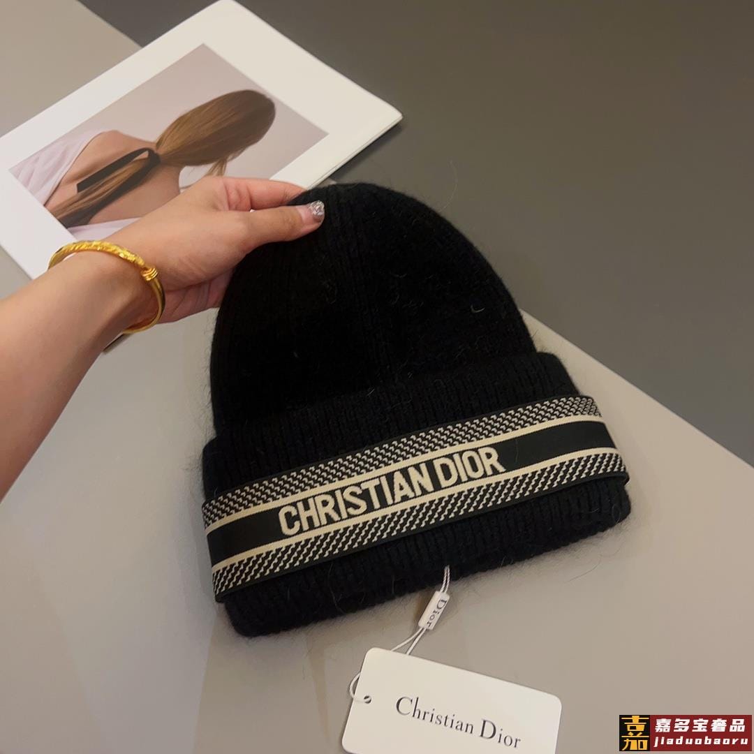 迪奥兔毛毛线帽女秋冬韩版百搭日系保暖针织帽潮牌加厚护耳冷帽子