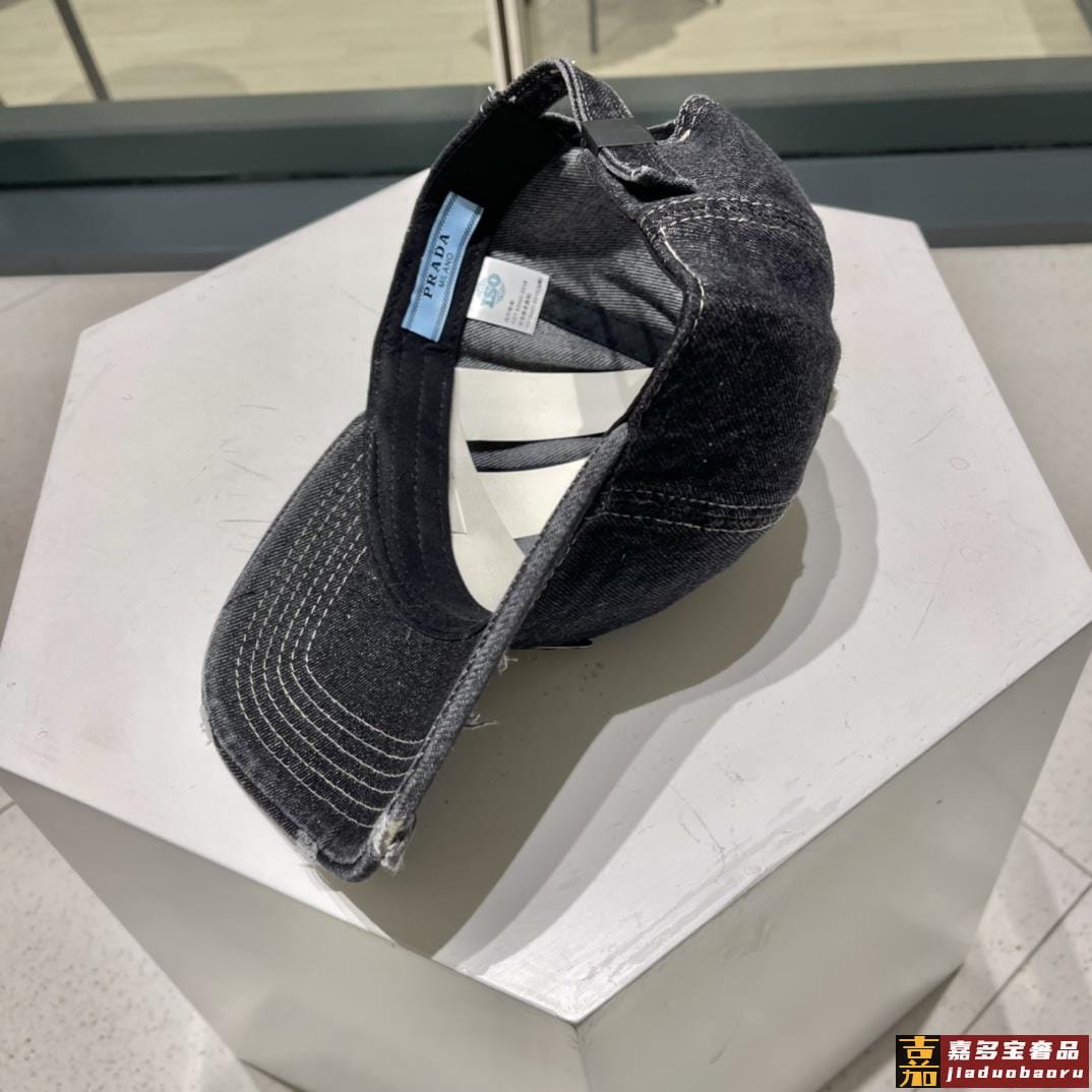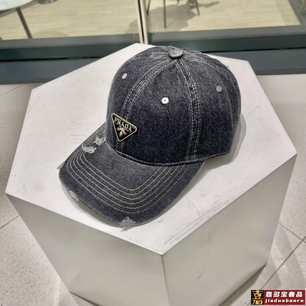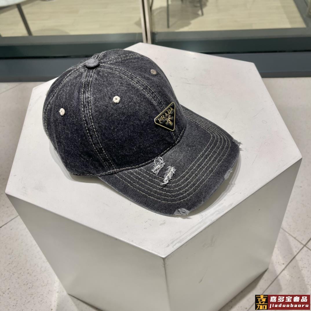 普拉达新款牛仔破洞棒球帽现货秒发简约时尚超级无敌好看的帽子情