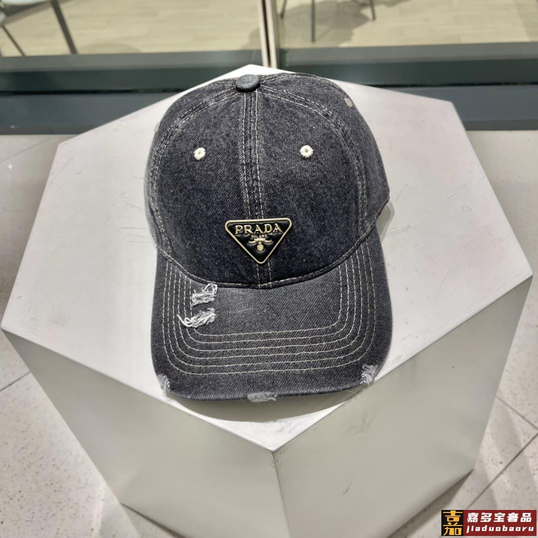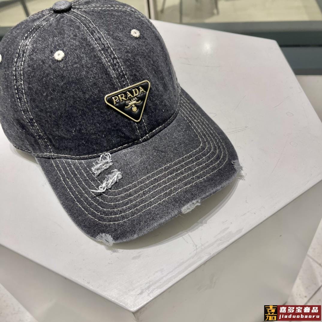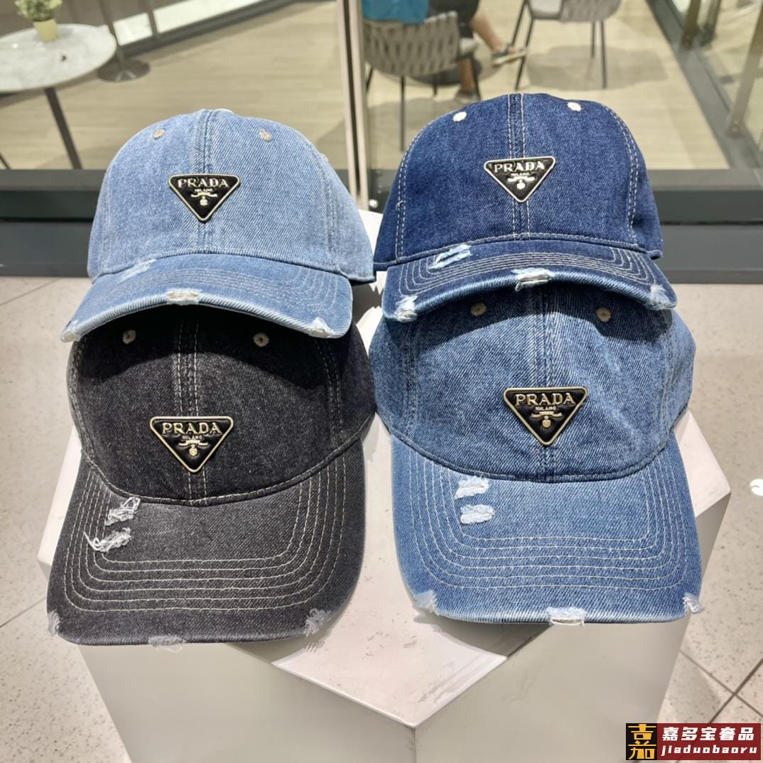 普拉达新款牛仔破洞棒球帽现货秒发简约时尚超级无敌好看的帽子情