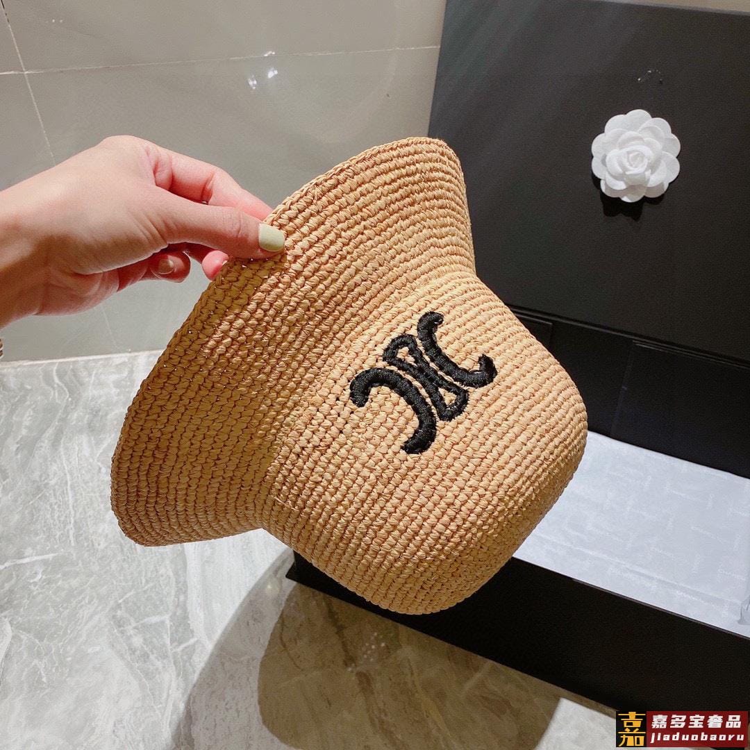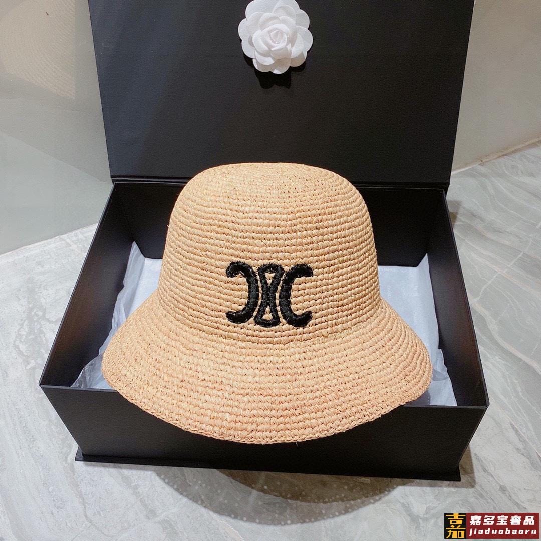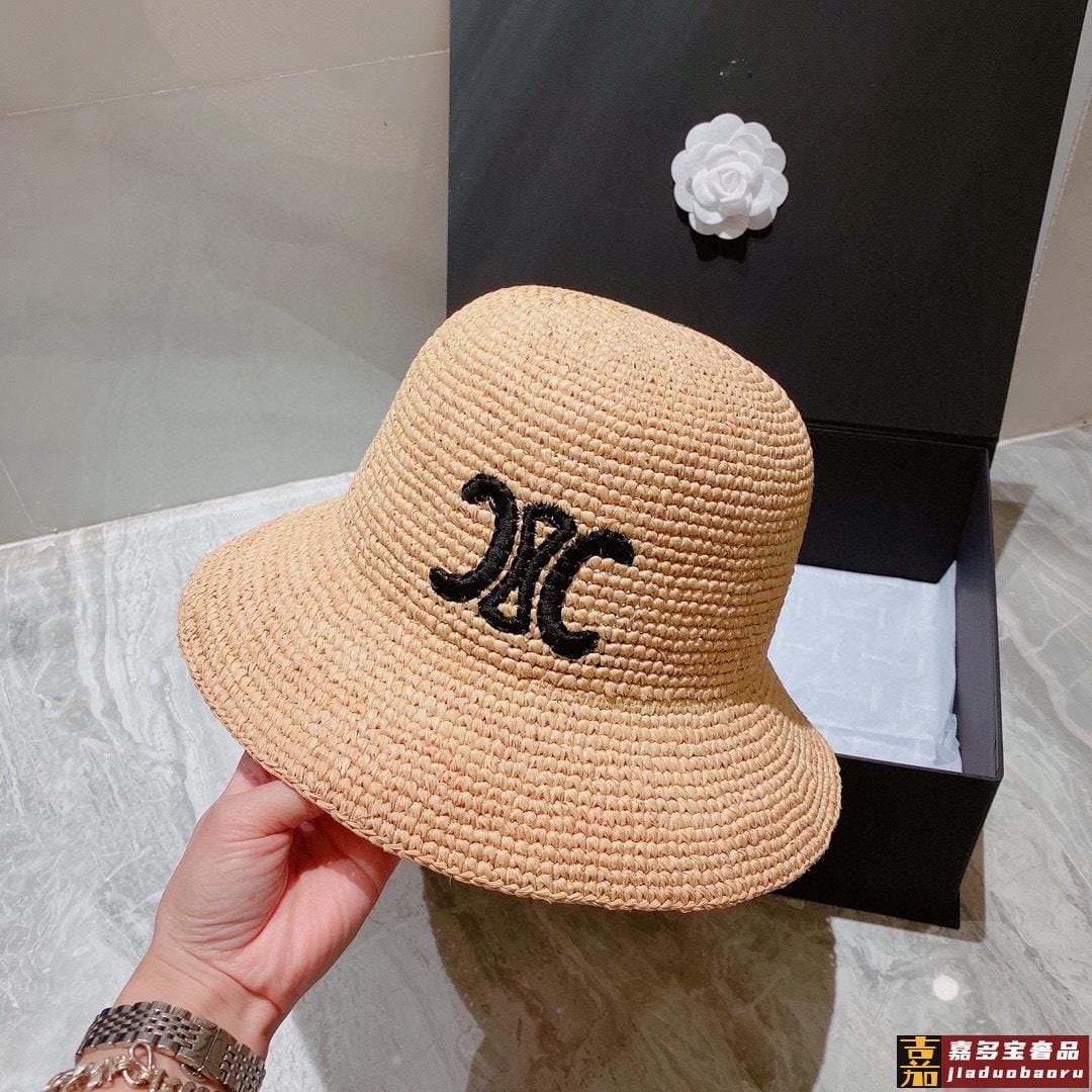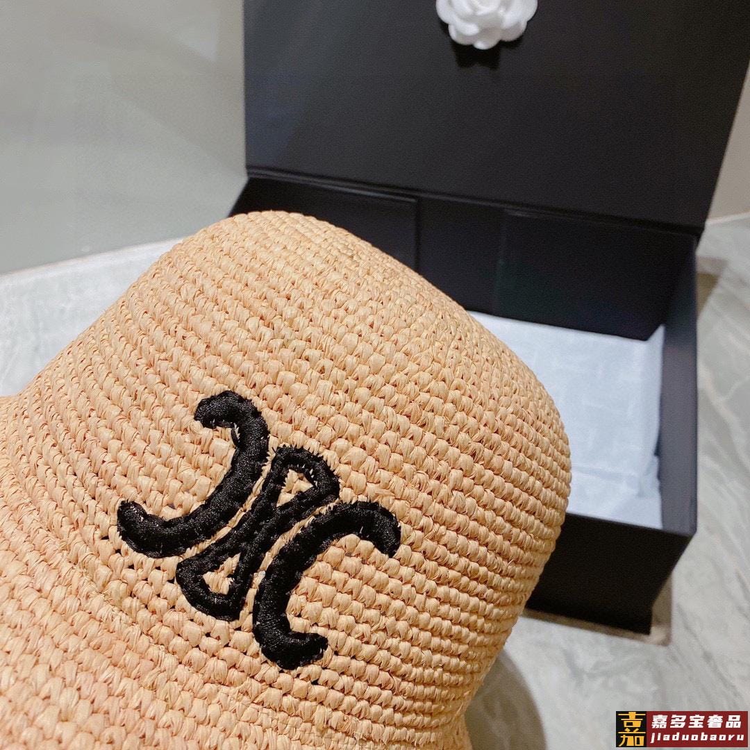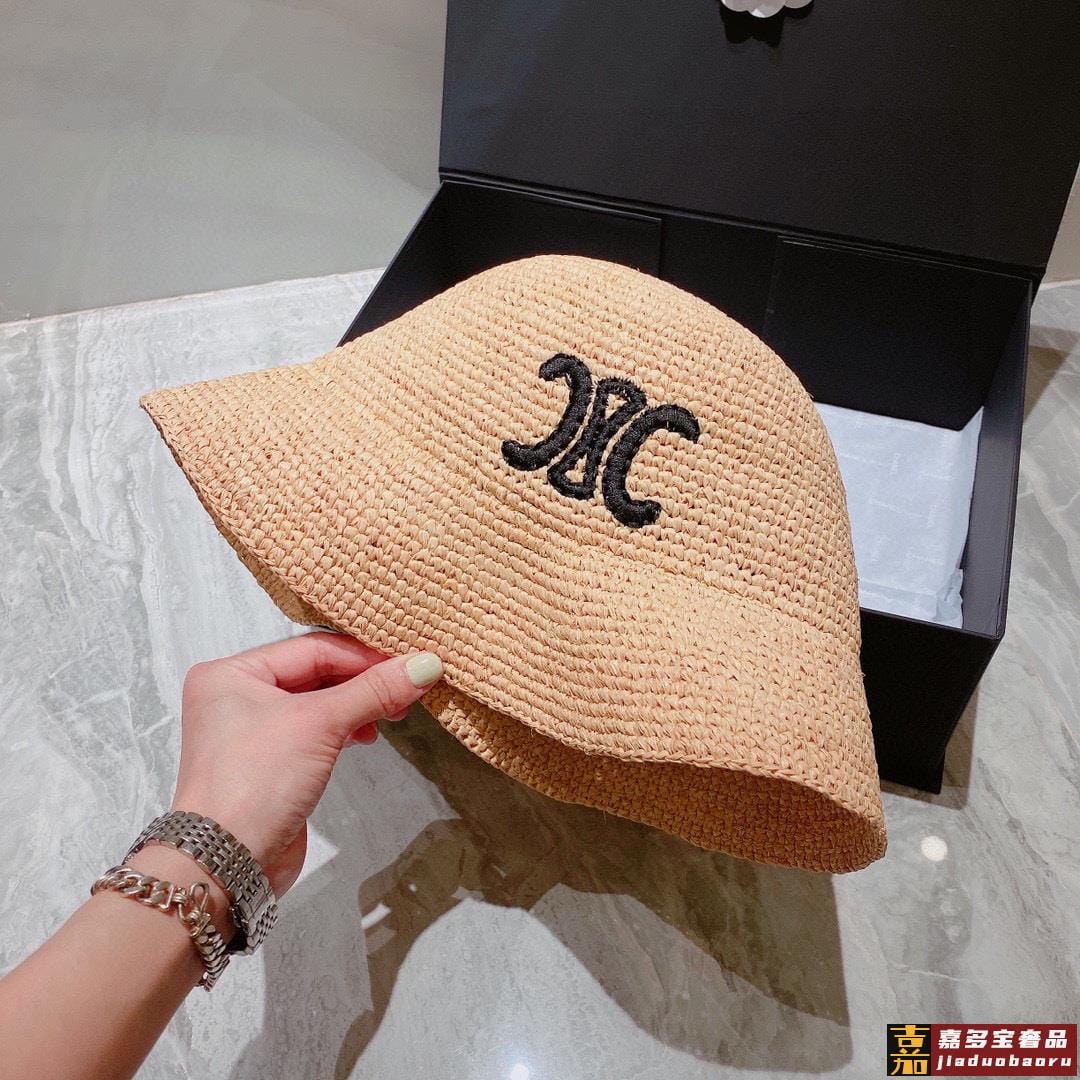 赛琳专柜新款草帽渔夫帽沙滩太阳帽重工刺绣纯手工钩织制作头围