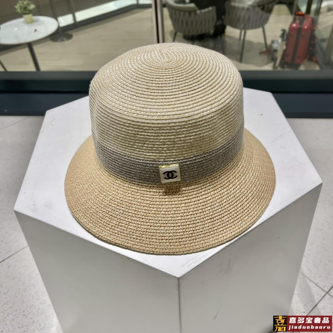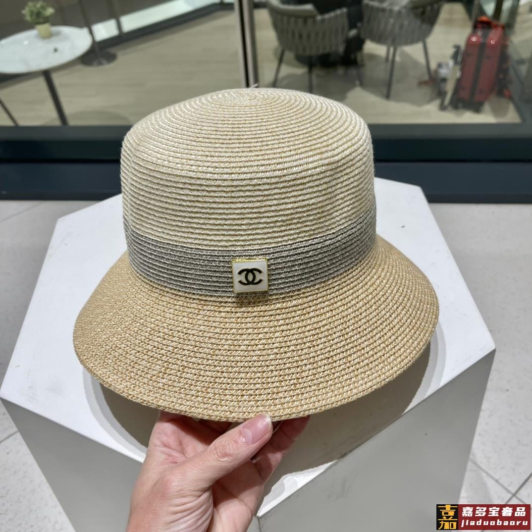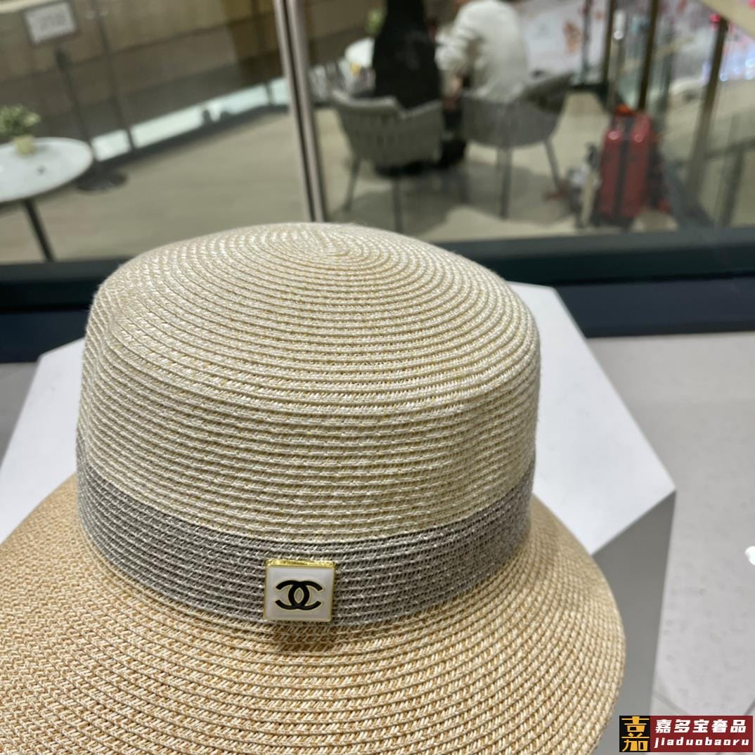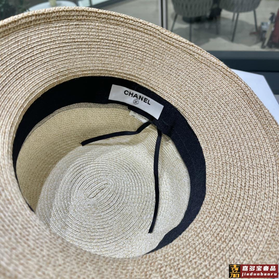 香奈儿新款草编细草平顶遮阳草帽盆帽沙滩风简约大方百搭单品出街