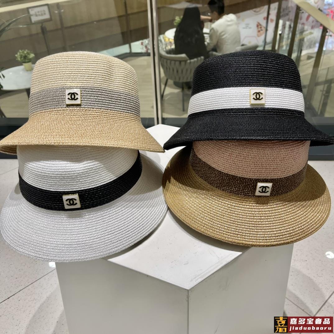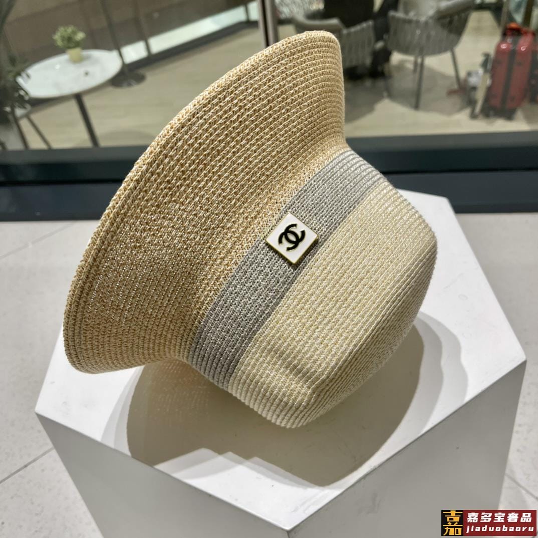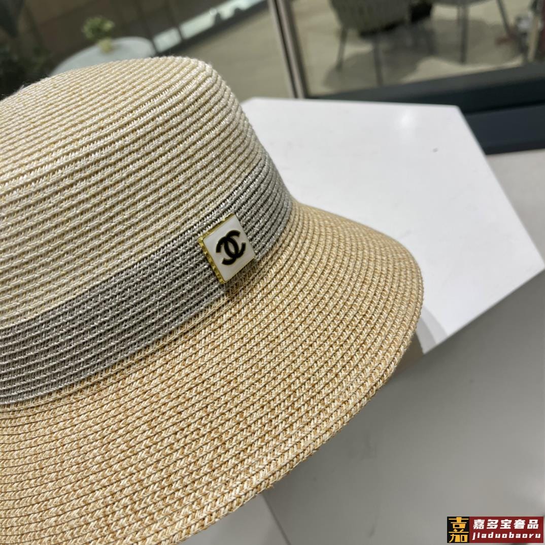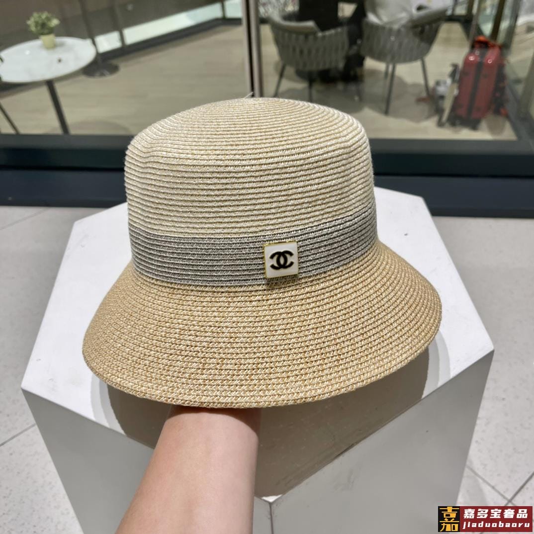 香奈儿新款草编细草平顶遮阳草帽盆帽沙滩风简约大方百搭单品出街